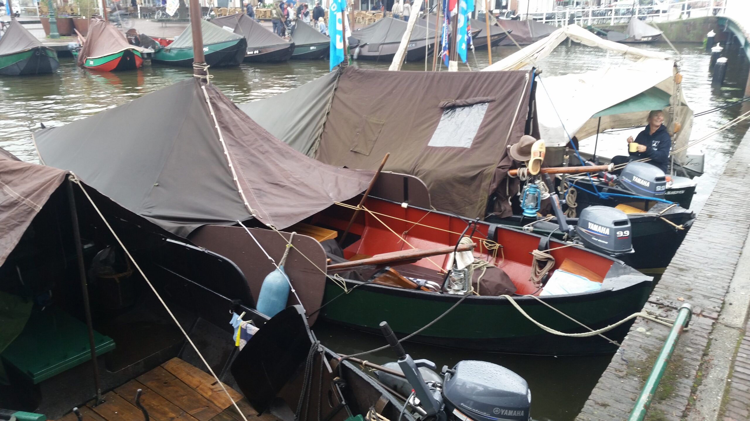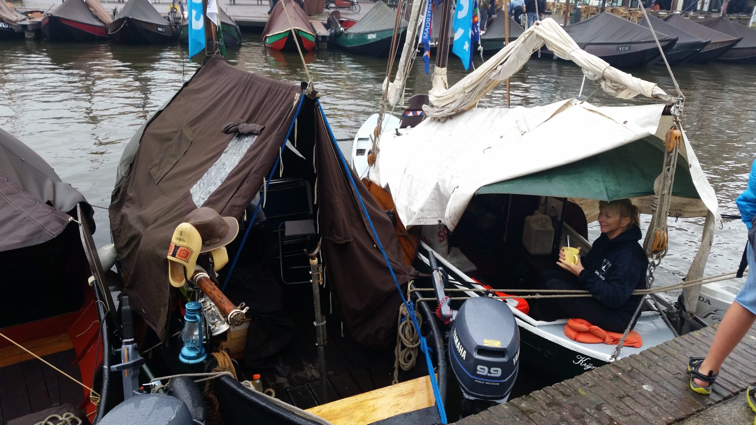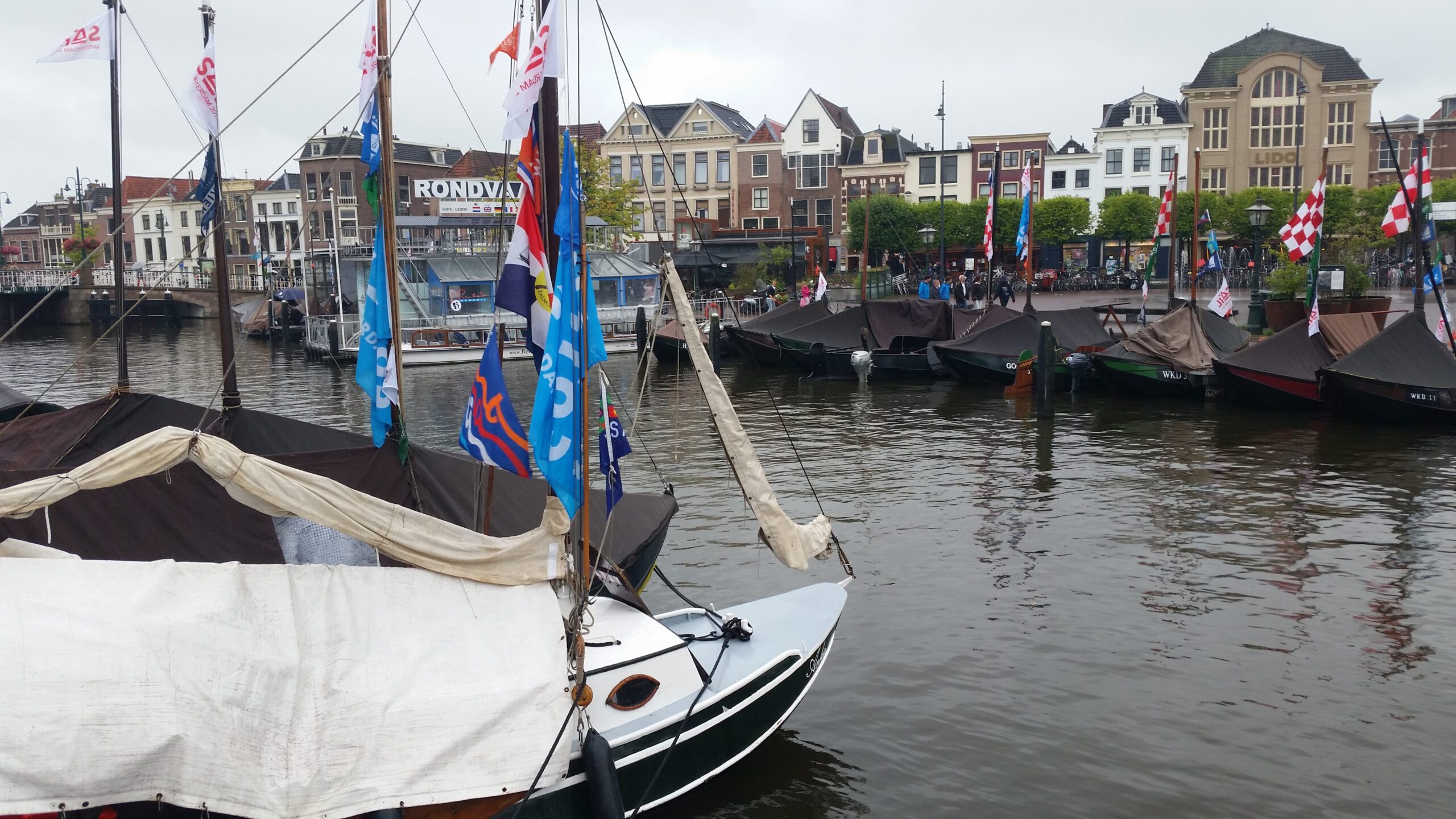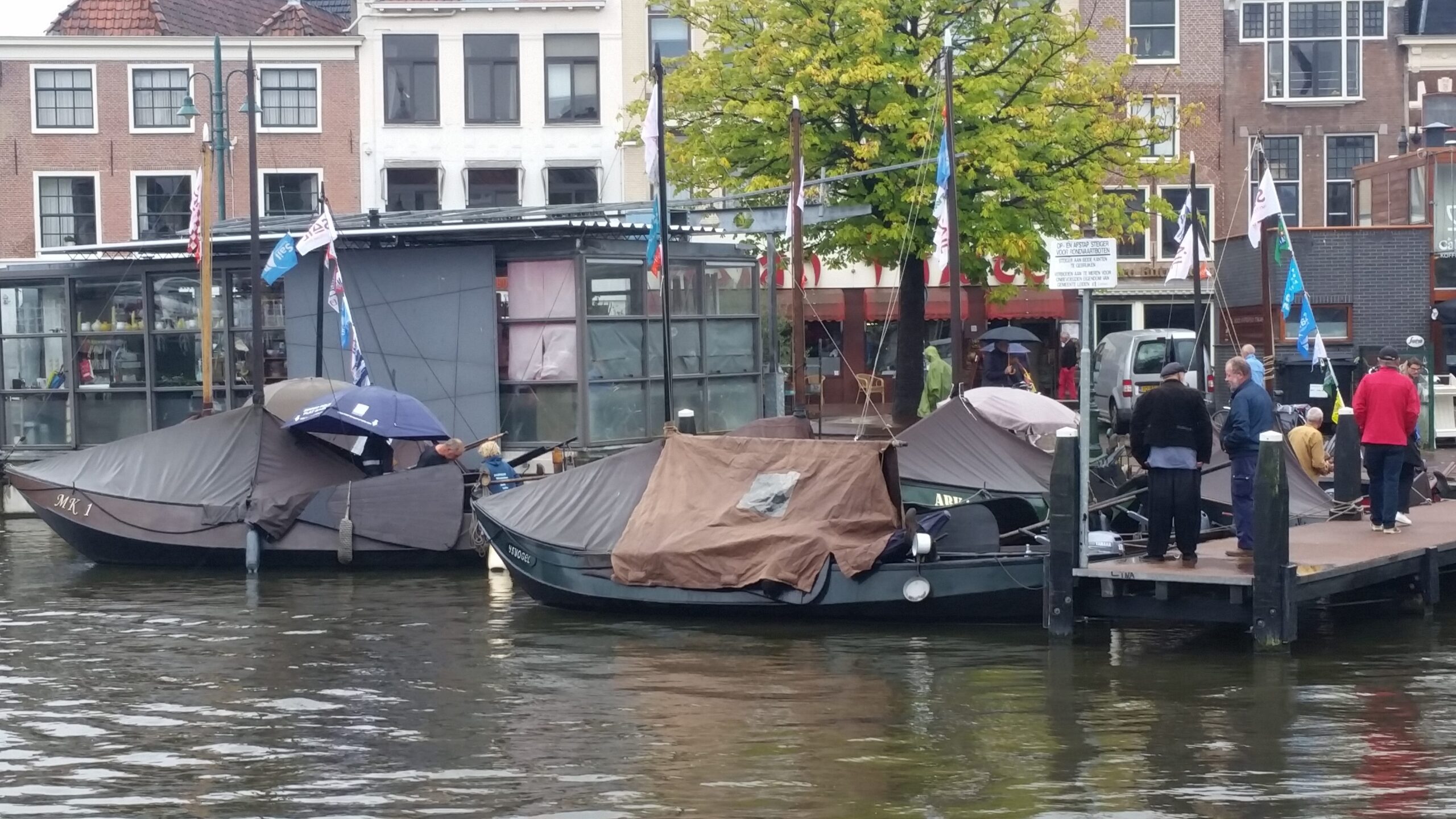 Gisteren kwamen dan toch met wat schipperen de ongeveer 60 historische bedrijfsvaartuigen de Sleutelstad binnenvaren. De schepen zijn onderweg naar Sail Amsterdam waar ze meedoen aan het grootste gratis toegankelijke nautische evenement van Europa. Door het ongeluk met de kranen in Alphen aan de Rijn moest de vloot wel omvaren om in Leiden te kunnen komen, maar dat hadden de schippers er graag voor over, zo vertelde voorzitter Conny Broeyer van de Historische Haven Leiden gisteren bij de officiële ontvangst die vanwege het weer werd verplaatst van Park de Put naar het onderkomen van scouting Franciscus Leiden in de Hazewindsteeg.