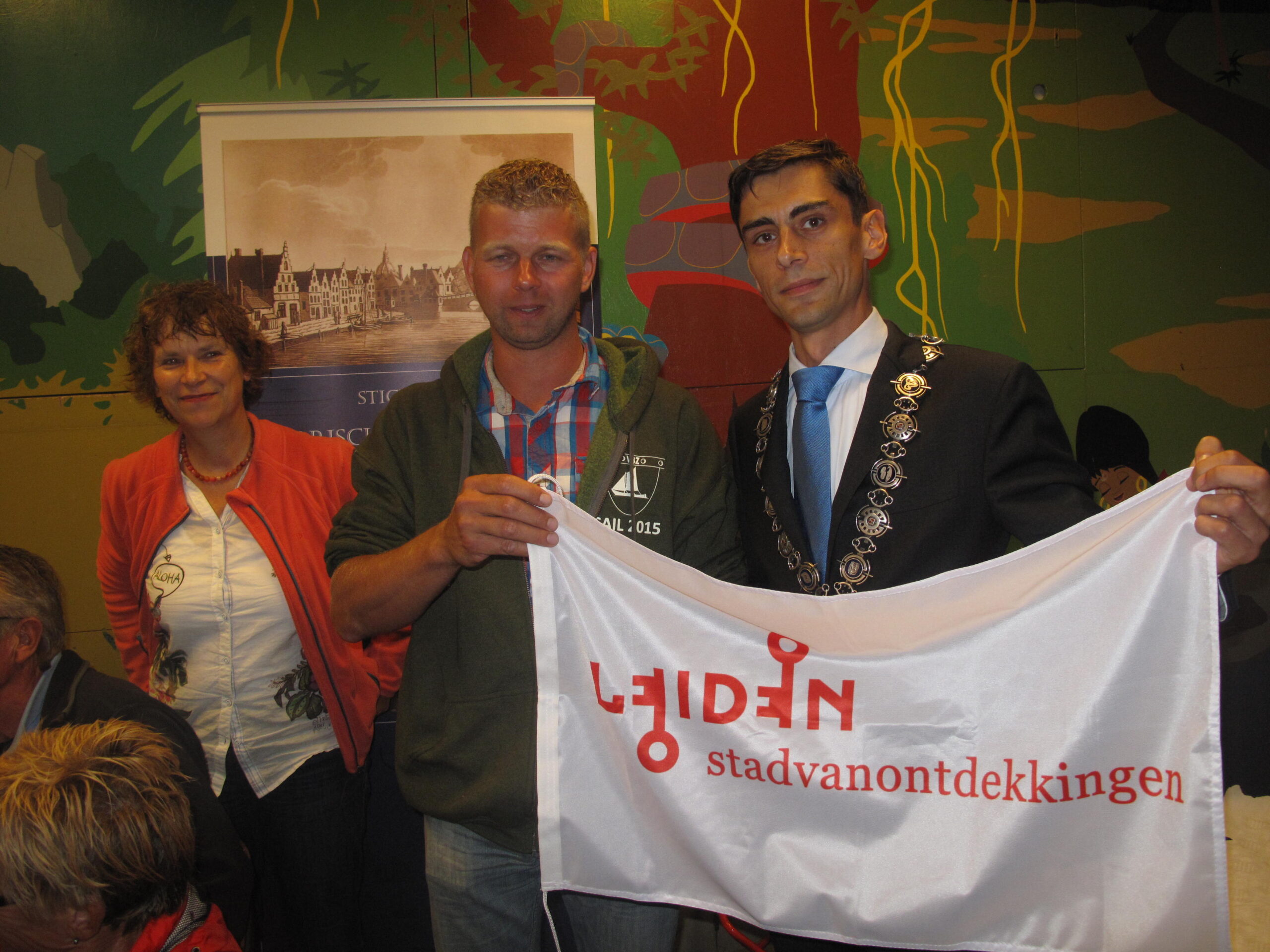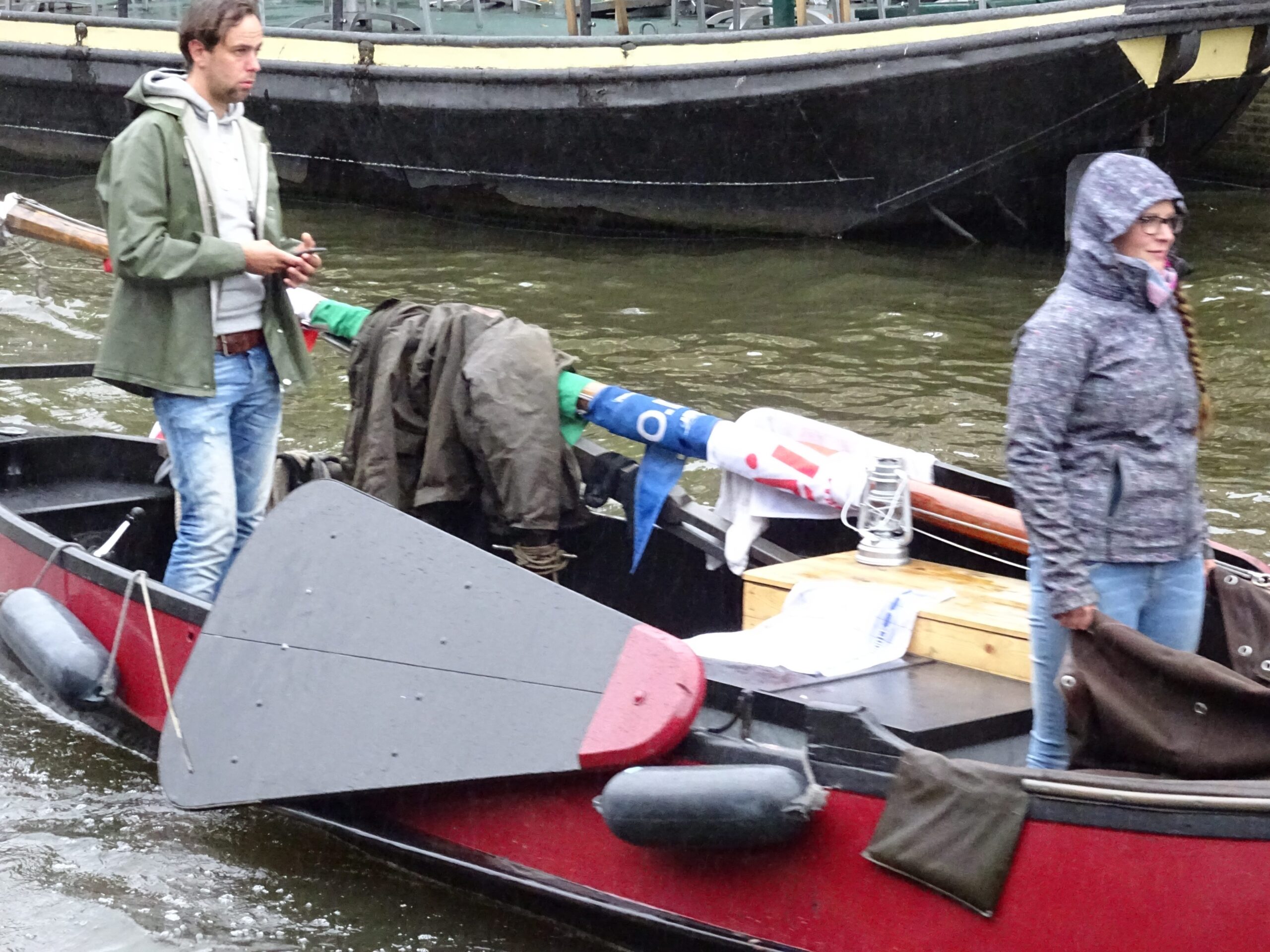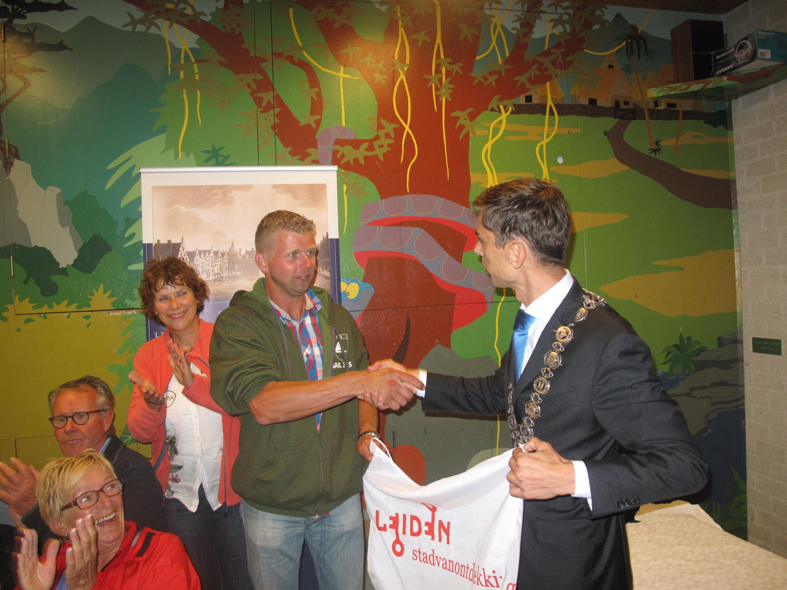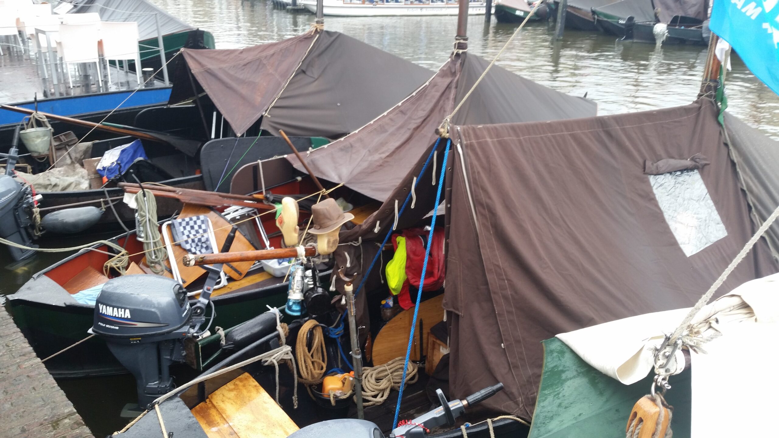 Gisteren kwamen dan toch met wat schipperen de ongeveer 60 historische bedrijfsvaartuigen de Sleutelstad binnenvaren. De schepen zijn onderweg naar Sail Amsterdam waar ze meedoen aan het grootste gratis toegankelijke nautische evenement van Europa. Door het ongeluk met de kranen in Alphen aan de Rijn moest de vloot wel omvaren om in Leiden te kunnen komen, maar dat hadden de schippers er graag voor over, zo vertelde voorzitter Conny Broeyer van de Historische Haven Leiden gisteren bij de officiële ontvangst die vanwege het weer werd verplaatst van Park de Put naar het onderkomen van scouting Franciscus Leiden in de Hazewindsteeg.