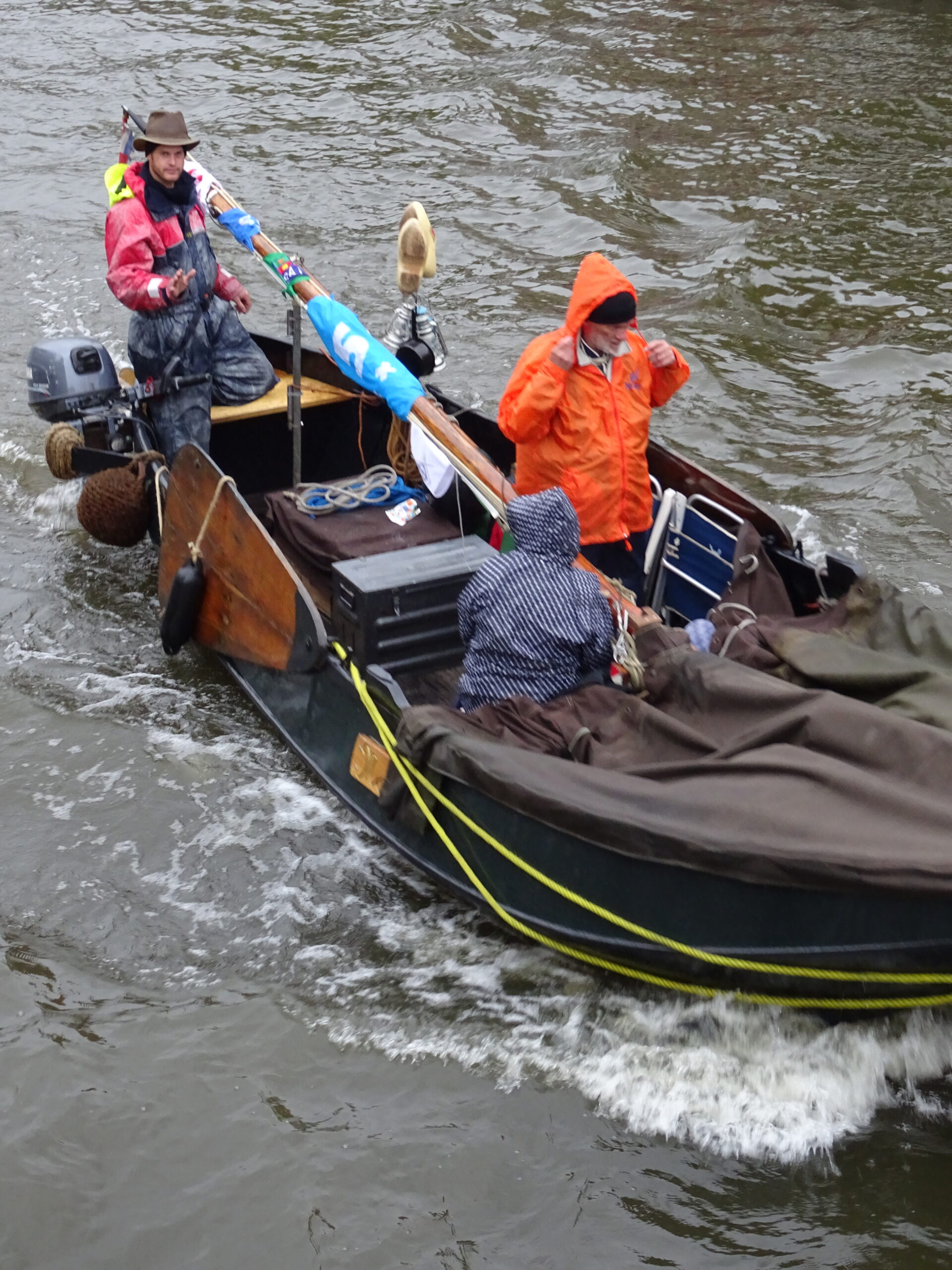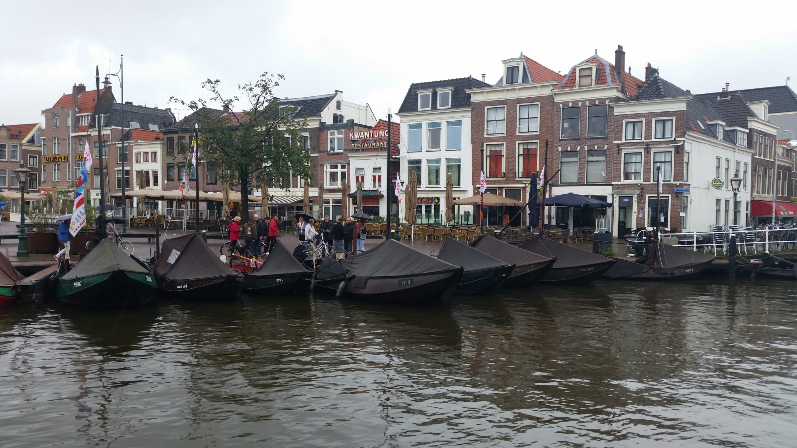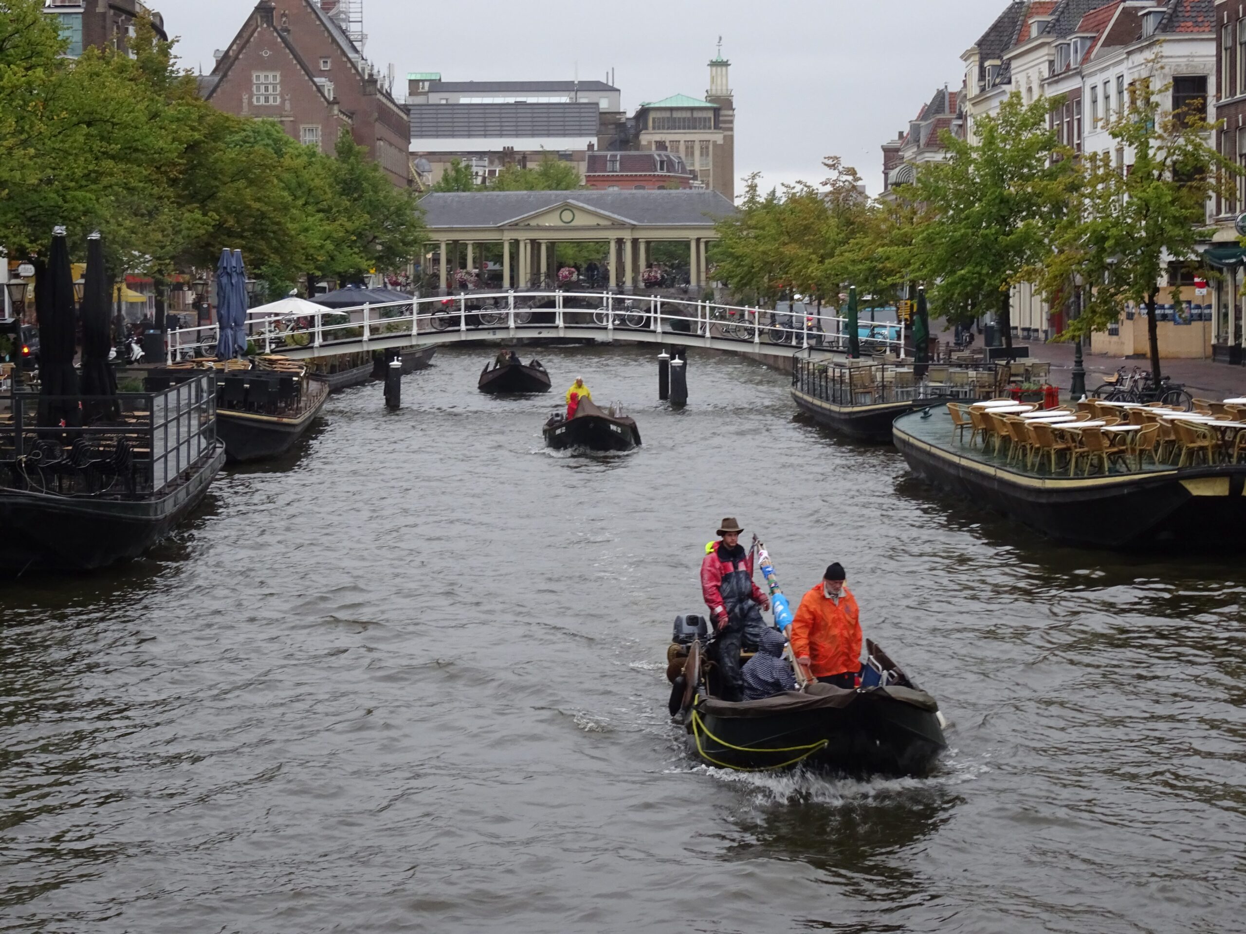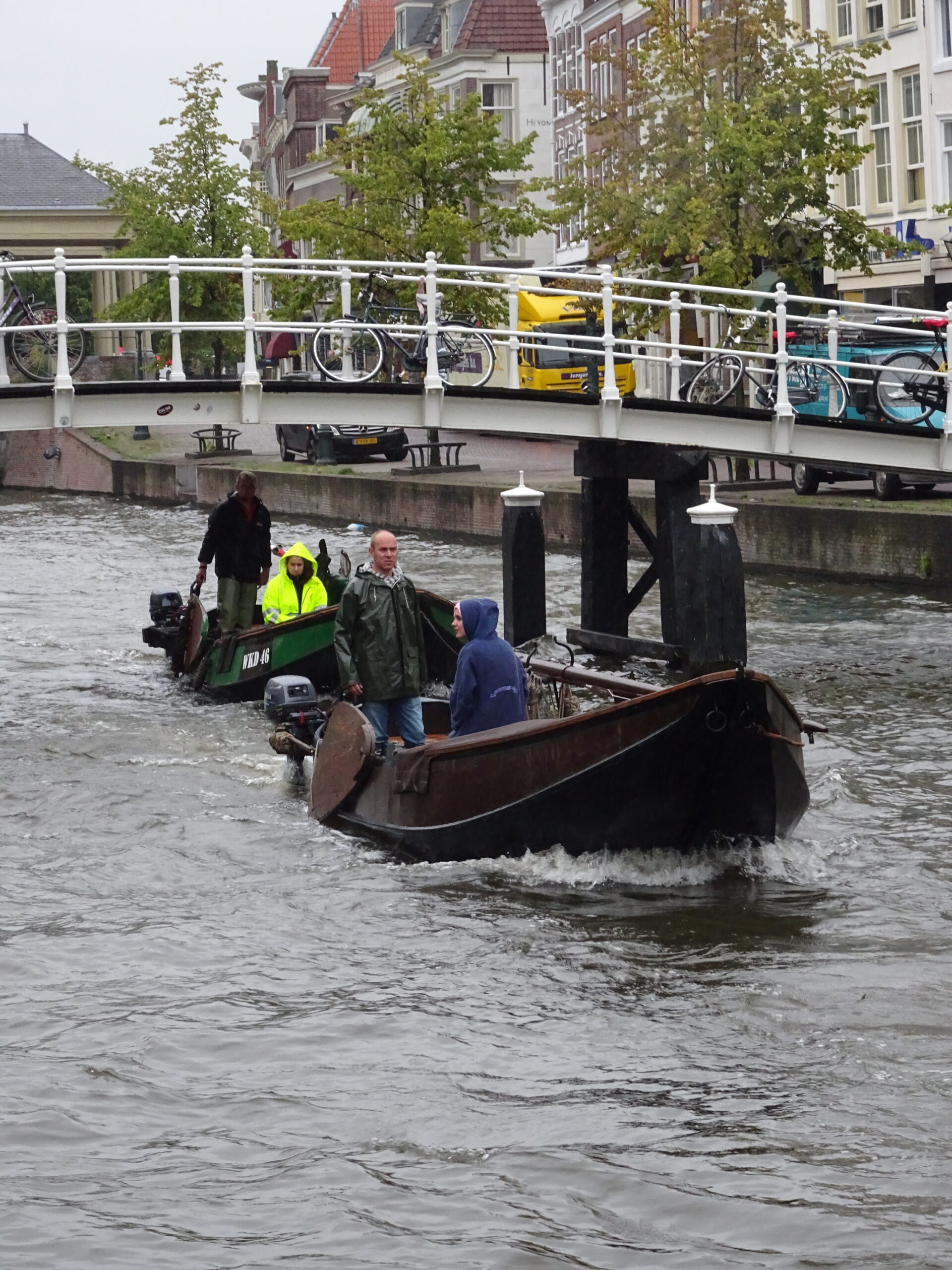 Vanmorgen gingen de schippers alweer vroeg op pad. Even na 9.00 uur voeren de grotere schepen via de spoorbrug de stad uit richting Amsterdam. De kleine historische zalmschouwen verlieten Leiden via de Nieuwe Rijn.
