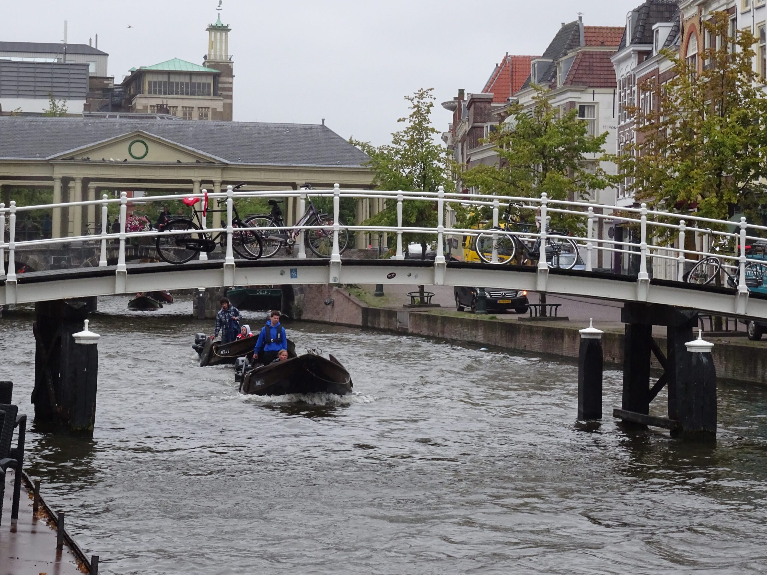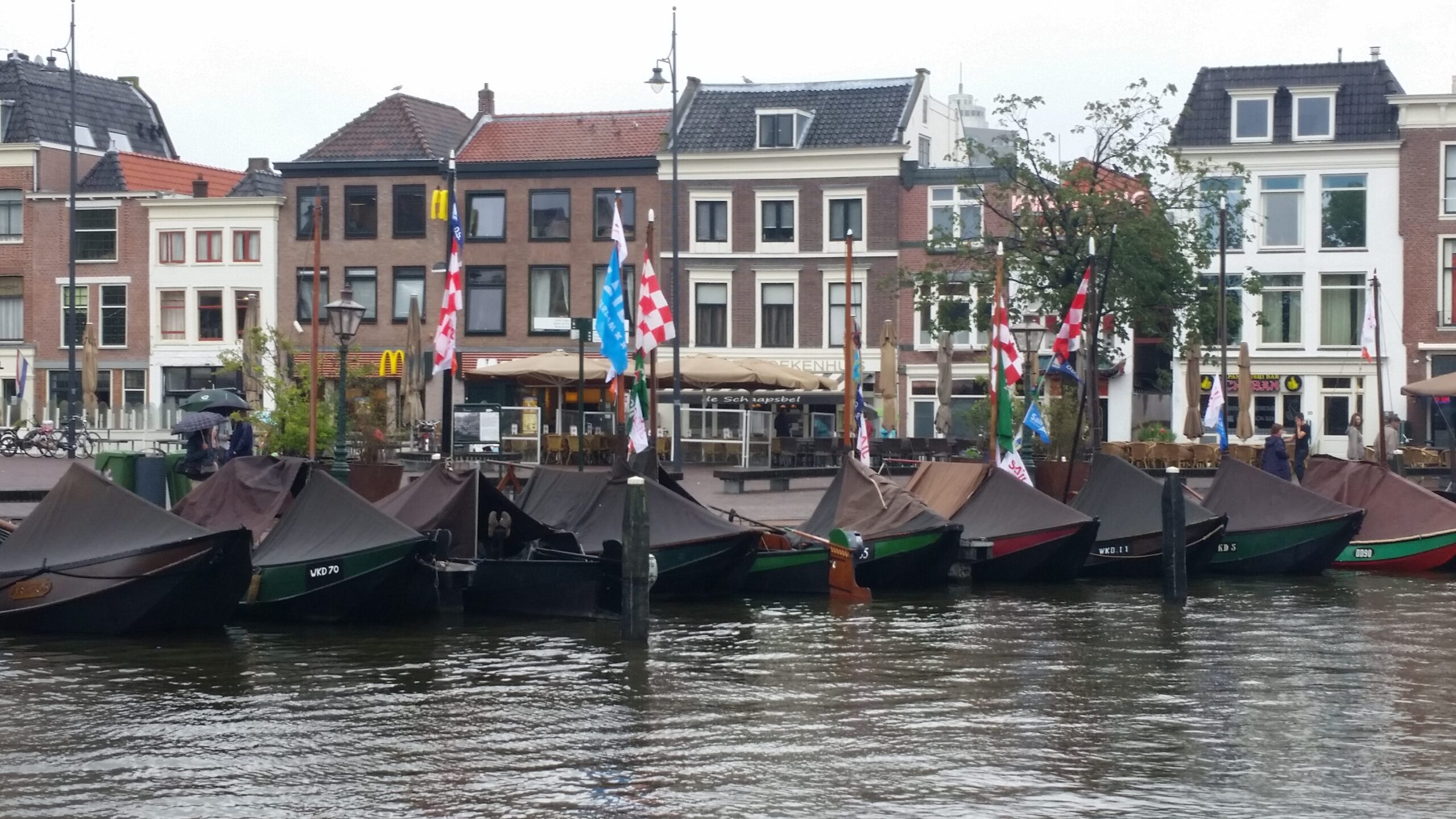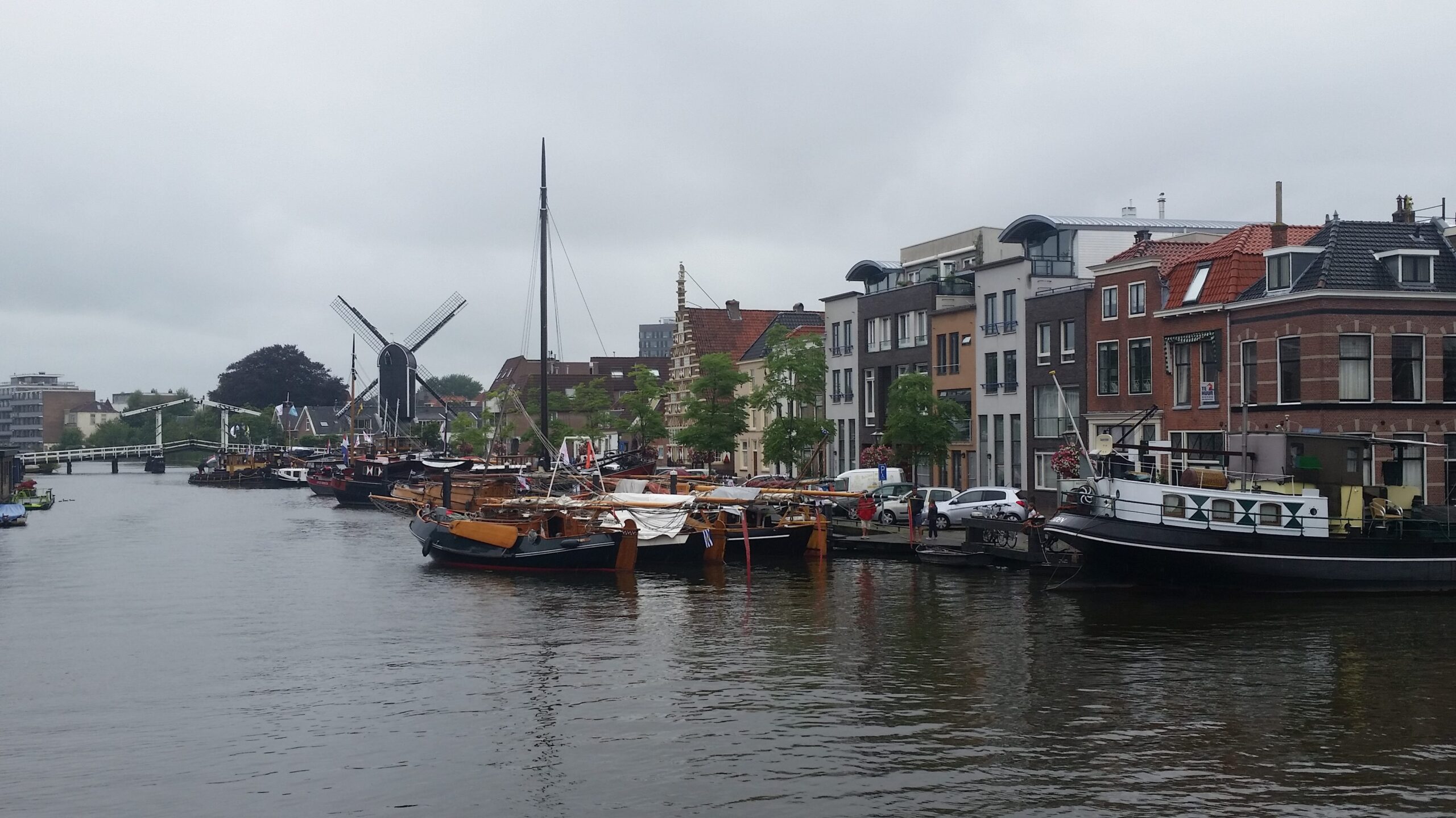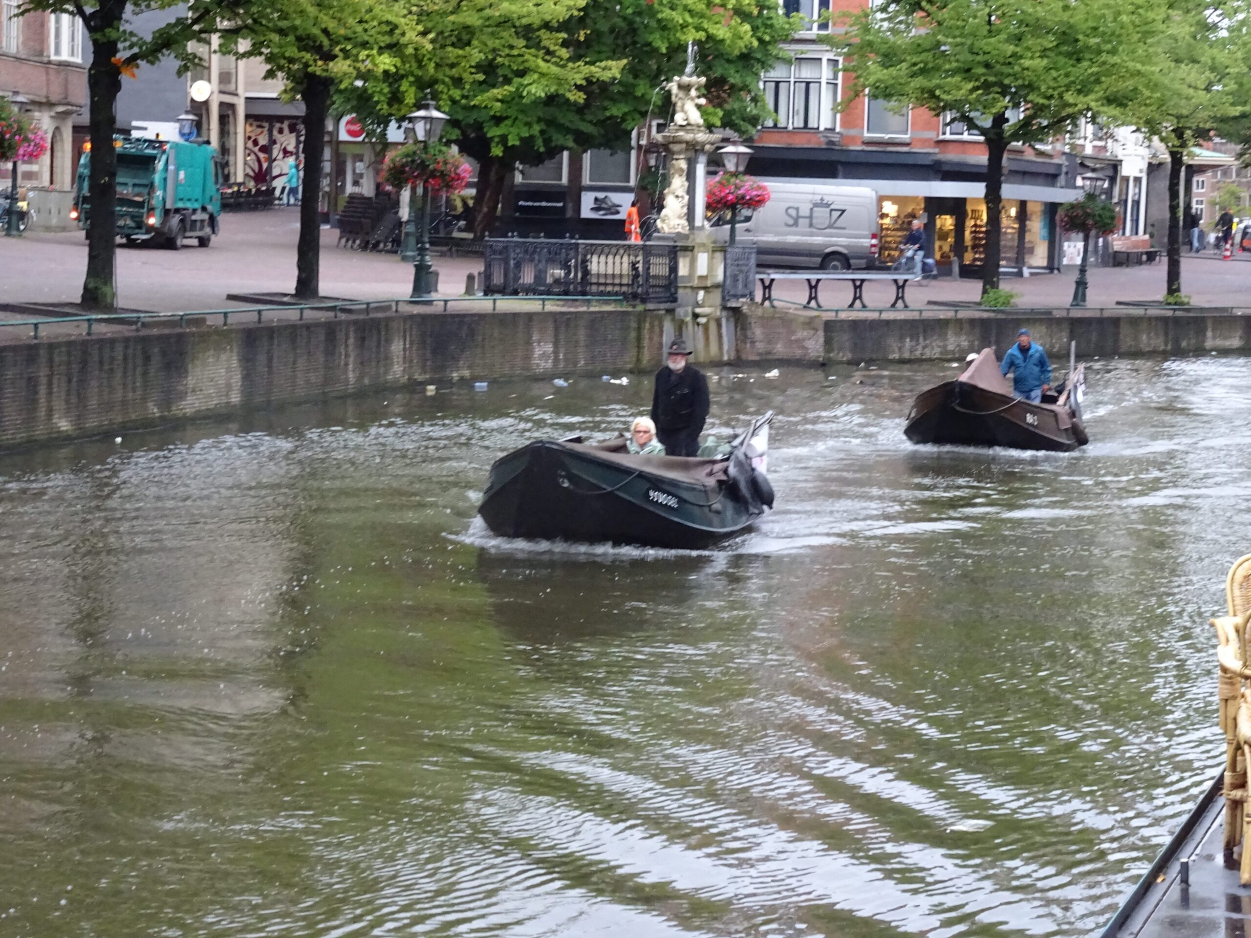 Vanmorgen gingen de schippers alweer vroeg op pad. Even na 9.00 uur voeren de grotere schepen via de spoorbrug de stad uit richting Amsterdam. De kleine historische zalmschouwen verlieten Leiden via de Nieuwe Rijn.