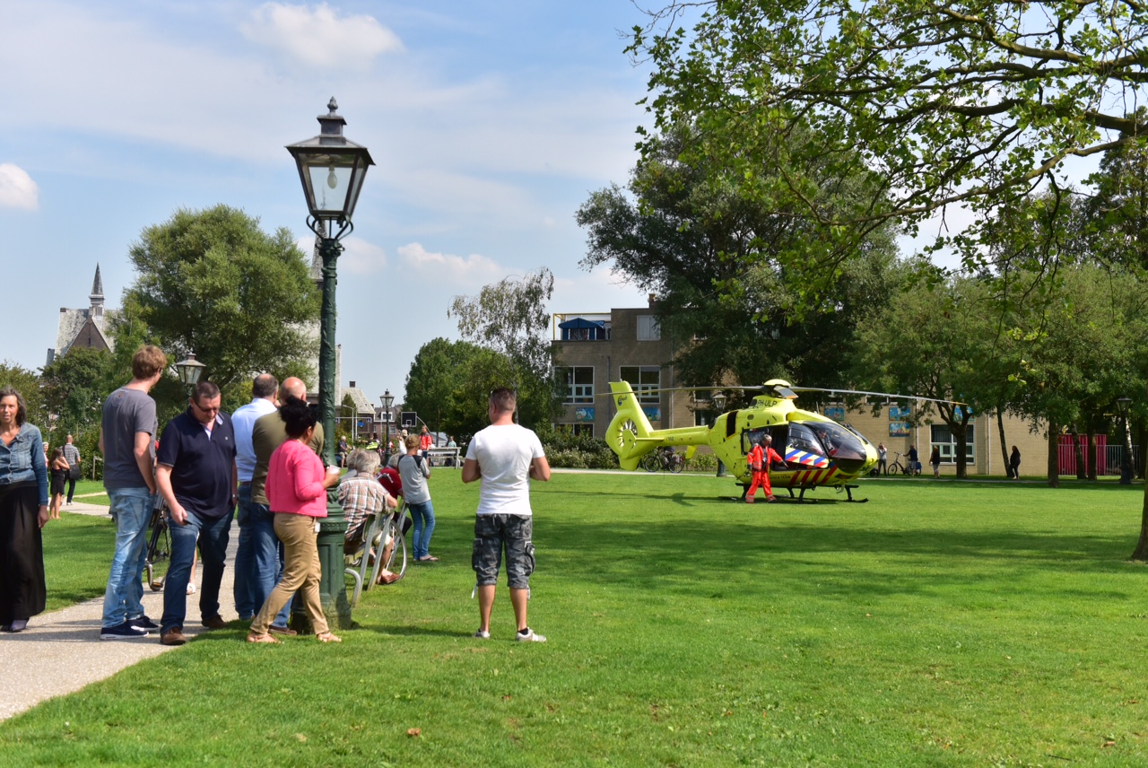 De traumahelikopter is even verderop in het Huigpark geland. (Foto: Politie Leiden, via Twitter).