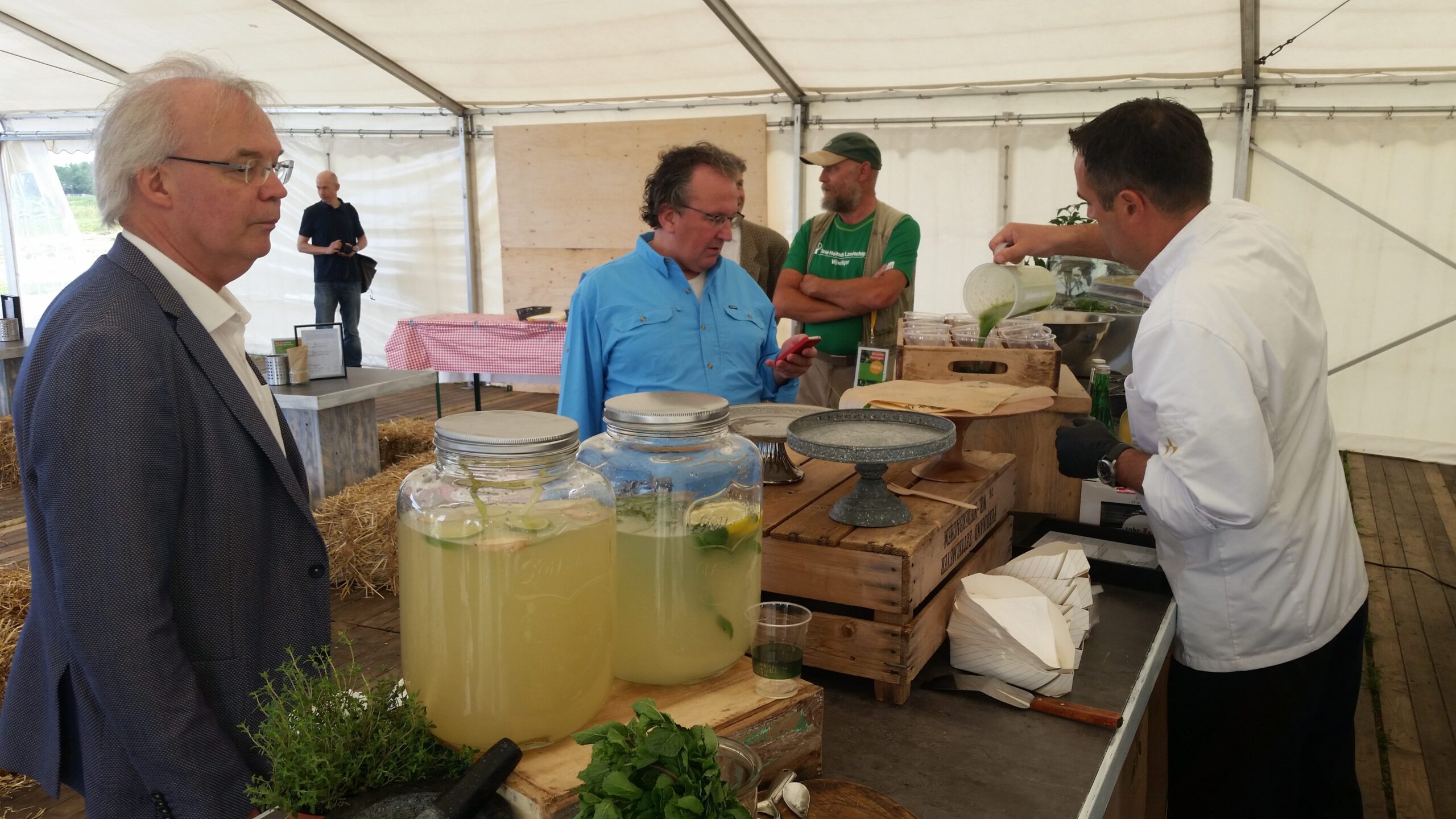 Chris de Waard was zaterdagmorgen bij de opening van de Leidse Hooidagen en maakte met microfoon een rondje langs de vele activiteiten.