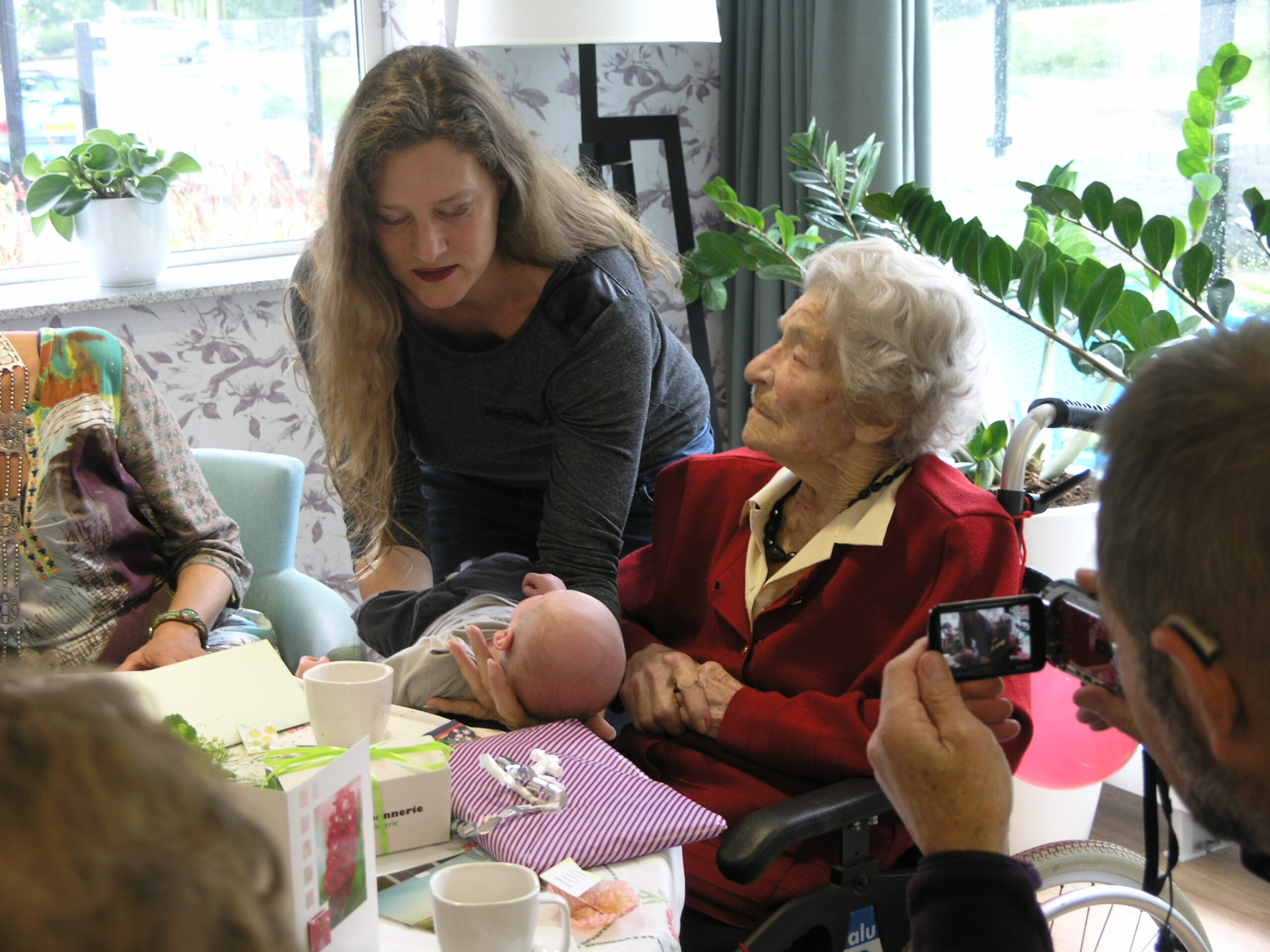 Corry Ziegeler kreeg hoog bezoek van de gemeente Leiden, loco-burgemeester Marleen Damen kwam namelijk langs. Ze overhandigde de jarige niet alleen een bos bloemen, maar ook haar geboorteakte (uit 1915 dus), die opgezocht was in het stadsarchief.