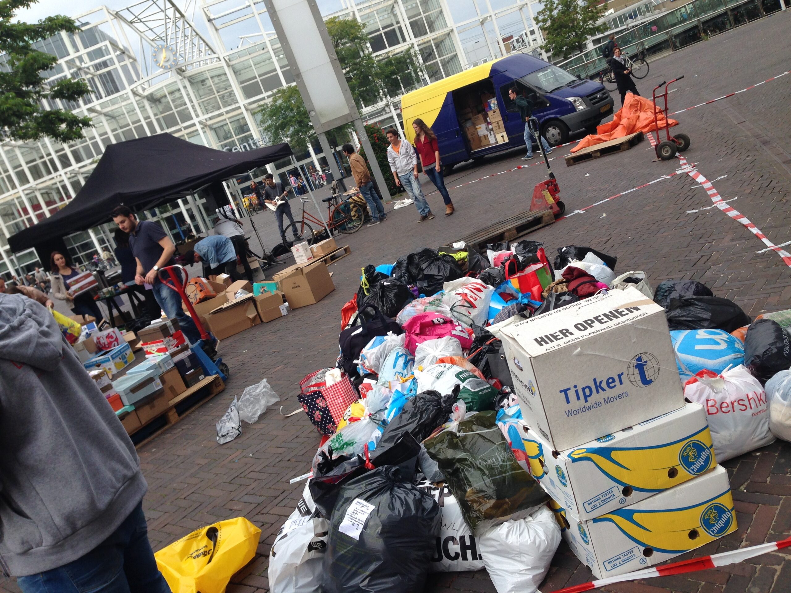 “Tussen 11 en half twaalf stond er daadwerkelijk een lange rij van mensen die een pakket bij zich hadden. Sommigen kwamen zelfs met twintig dozen aanzetten,” aldus Jan die namens de organisatie de pers te woord staat. “Daarna is er een continue stroom van mensen met spullen.” ‘Leiden verwelkomt vluchtelingen’ verwacht dat hun doel: het ophalen van duizend tot vijfduizend pakketten wel gaat lukken. Deze worden dan eerst opgeslagen tot dat het Centraal Orgaan Opvang Asielzoekers (COA) deze komt op halen om te verspreiden onder de naar Nederland gekomen vluchtelingen uit voornamelijk Syrië.