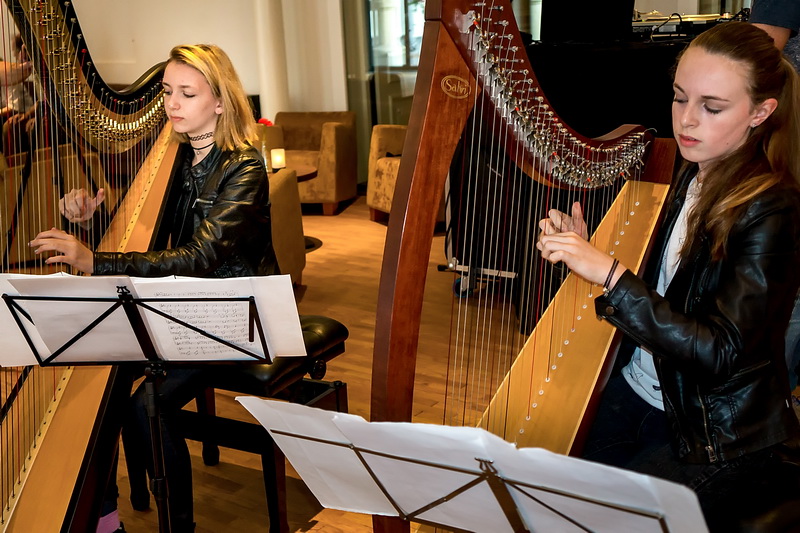 Tijdens het monumentenweekeinde in Leiden is er ook wat nieuws geopend in één van de historische gebouwen in het centrum. De foyer van de Stadsgehoorzaal is uitgebreid en helemaal opnieuw ingericht. Gisteren om 11.00 uur was de feestelijke opening met onder andere een optreden van de Harp Soul Sisters en natuurlijk een woordje van directeur Nanette Ris.