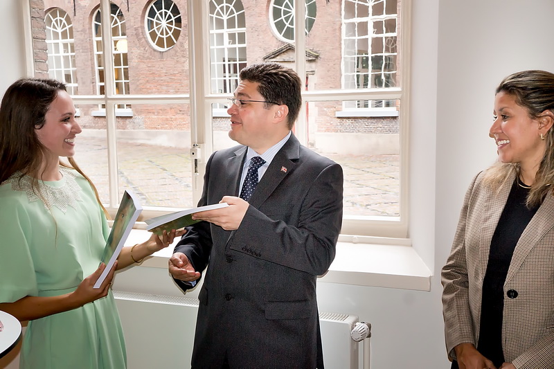 In het Kinderrechtenhuis in Leiden gaf auteur Carrie van der Kroon vandaag de eerste exemplaren van haar boek ‘I write with the right’ aan Sergio Ugalde, Ambassadeur van Costa Rica, en Armonia Chang de Blechieur, attaché van de ambassade van Panama.
