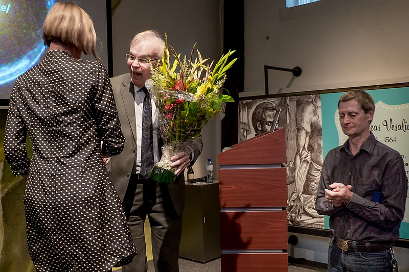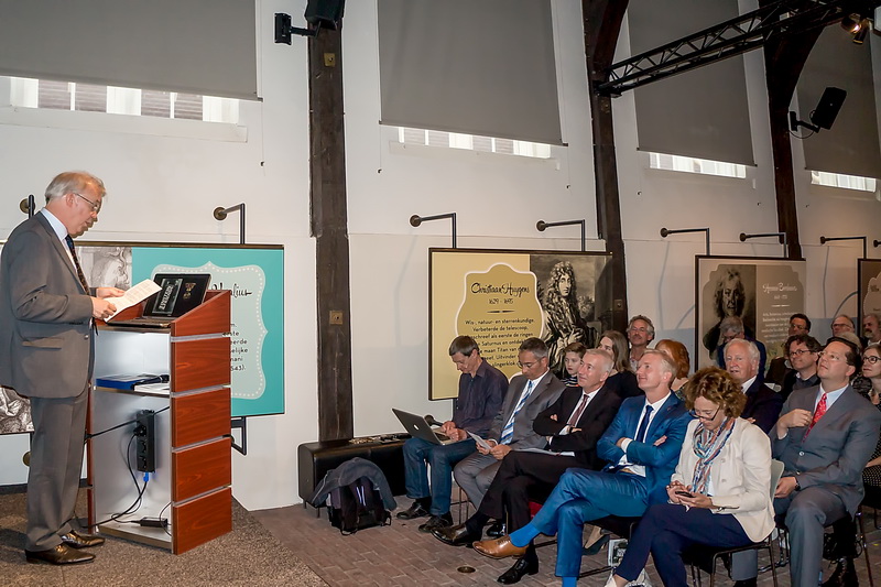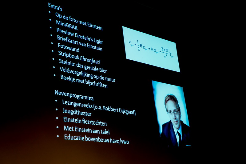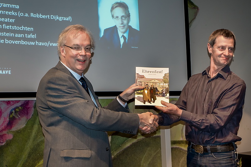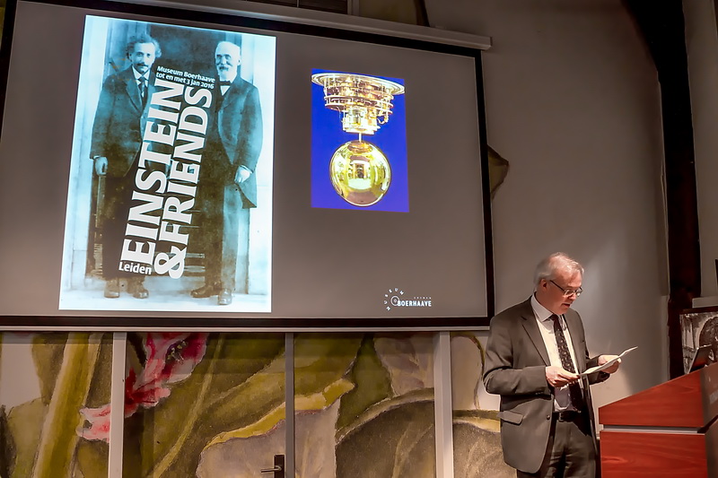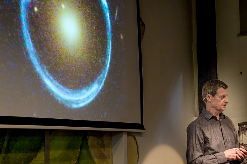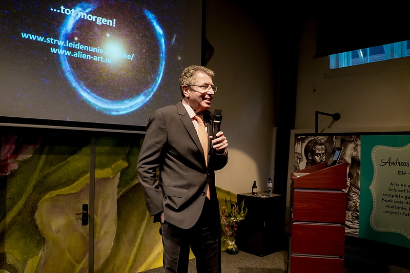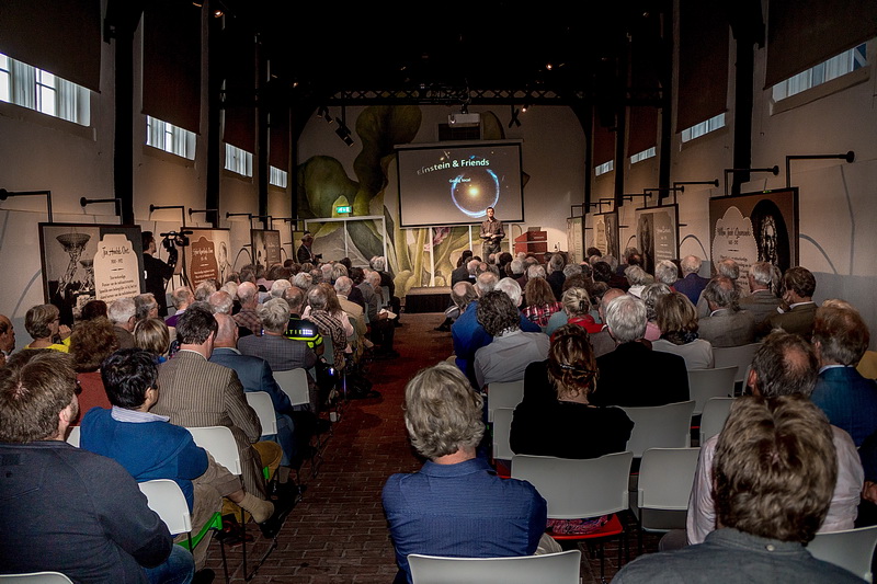 Vincent Icke, hoogleraar theoretische sterrenkunde aan de Universiteit Leiden, vertelde bij de opening over het heelal rond Einstein. Na afloop sprak Chris de Waard nog even door met de astrofysicus die zichzelf vergeleken met Einstein een dwerg noemt.