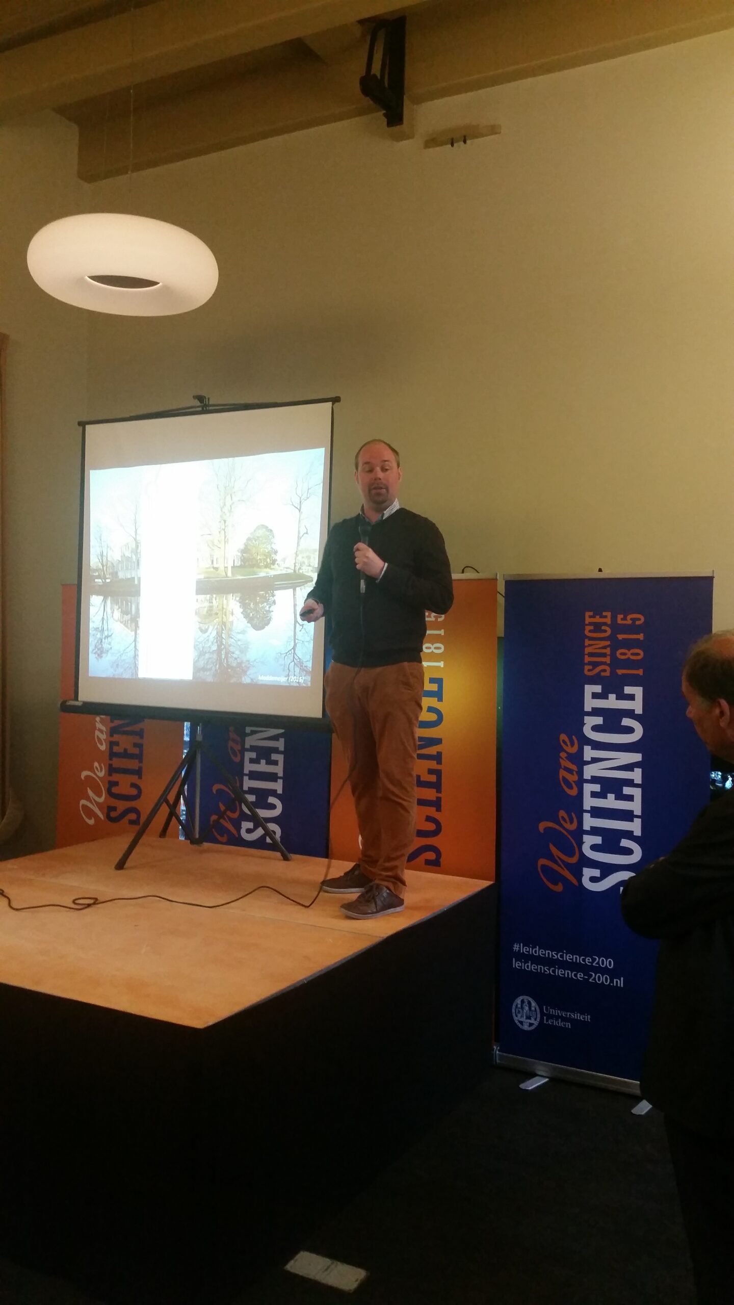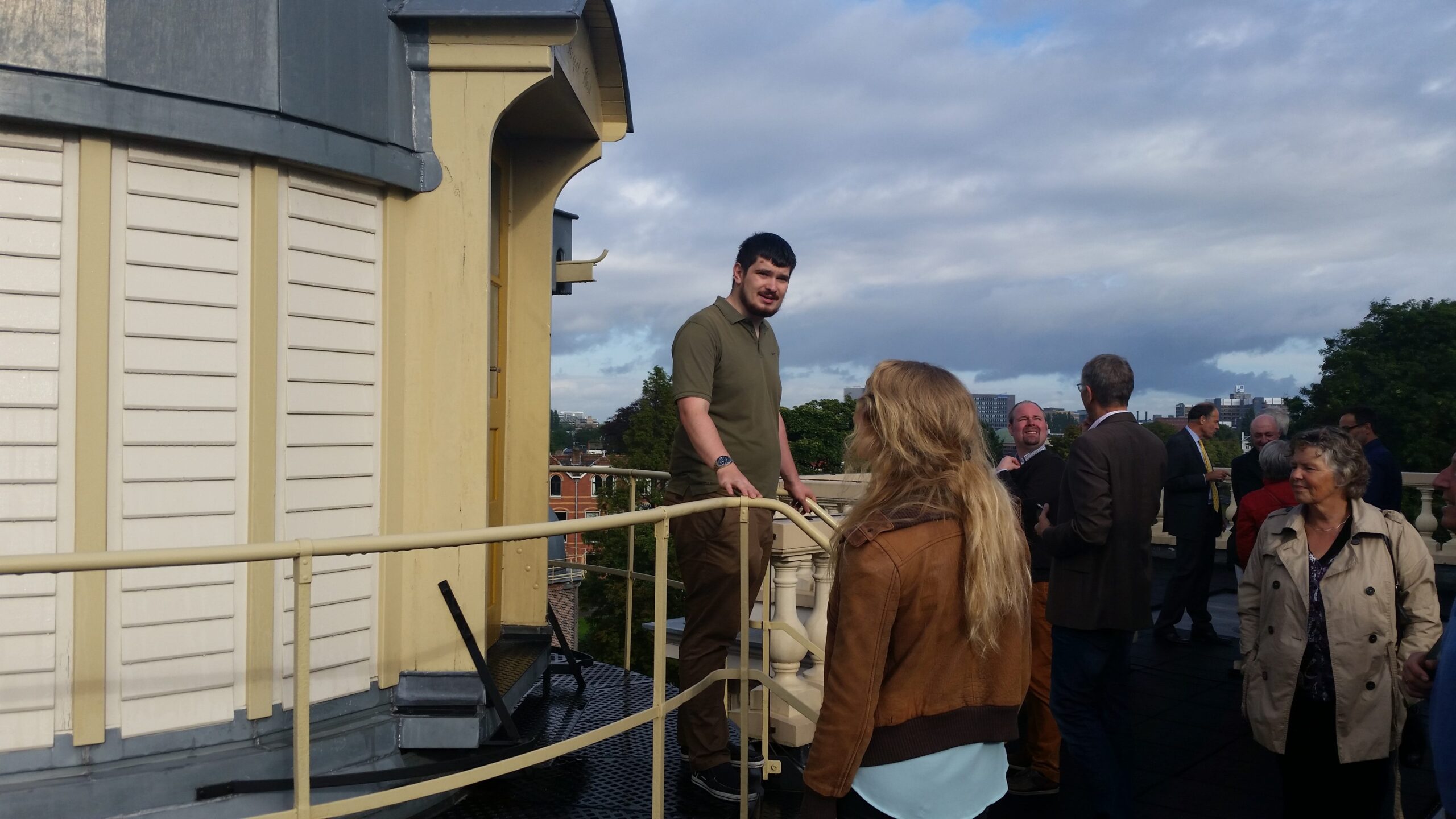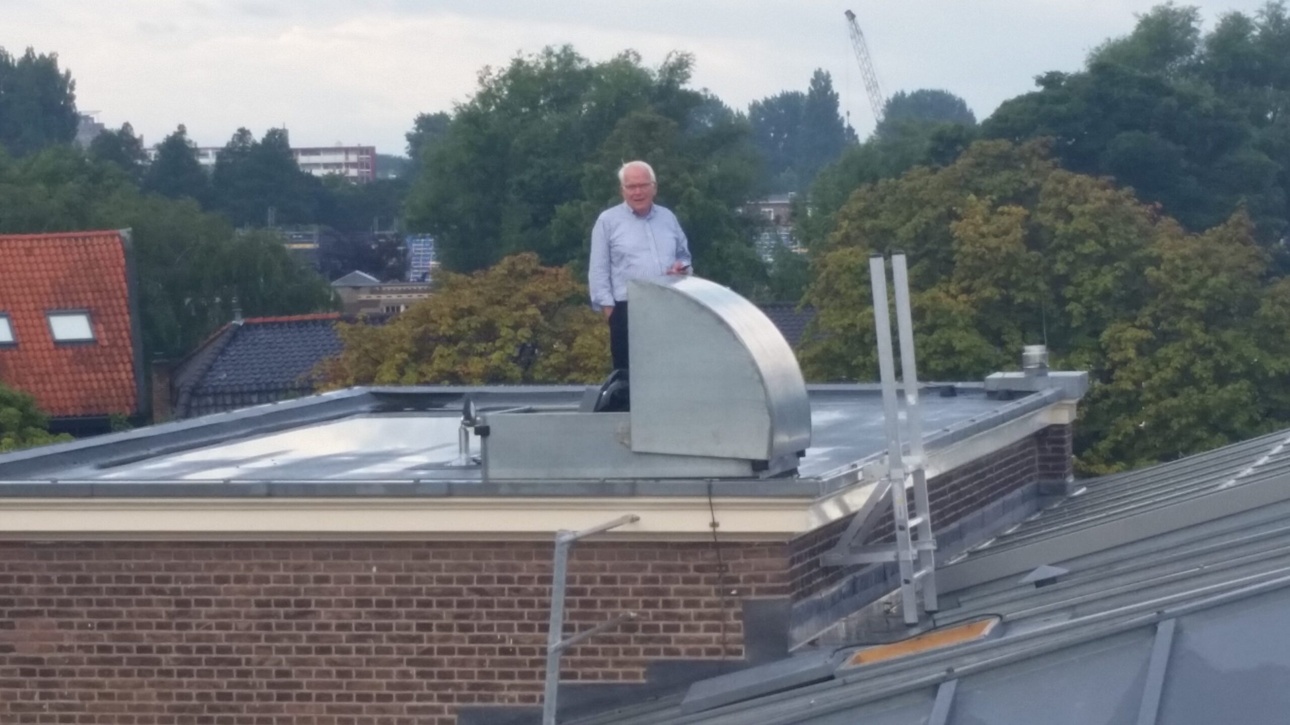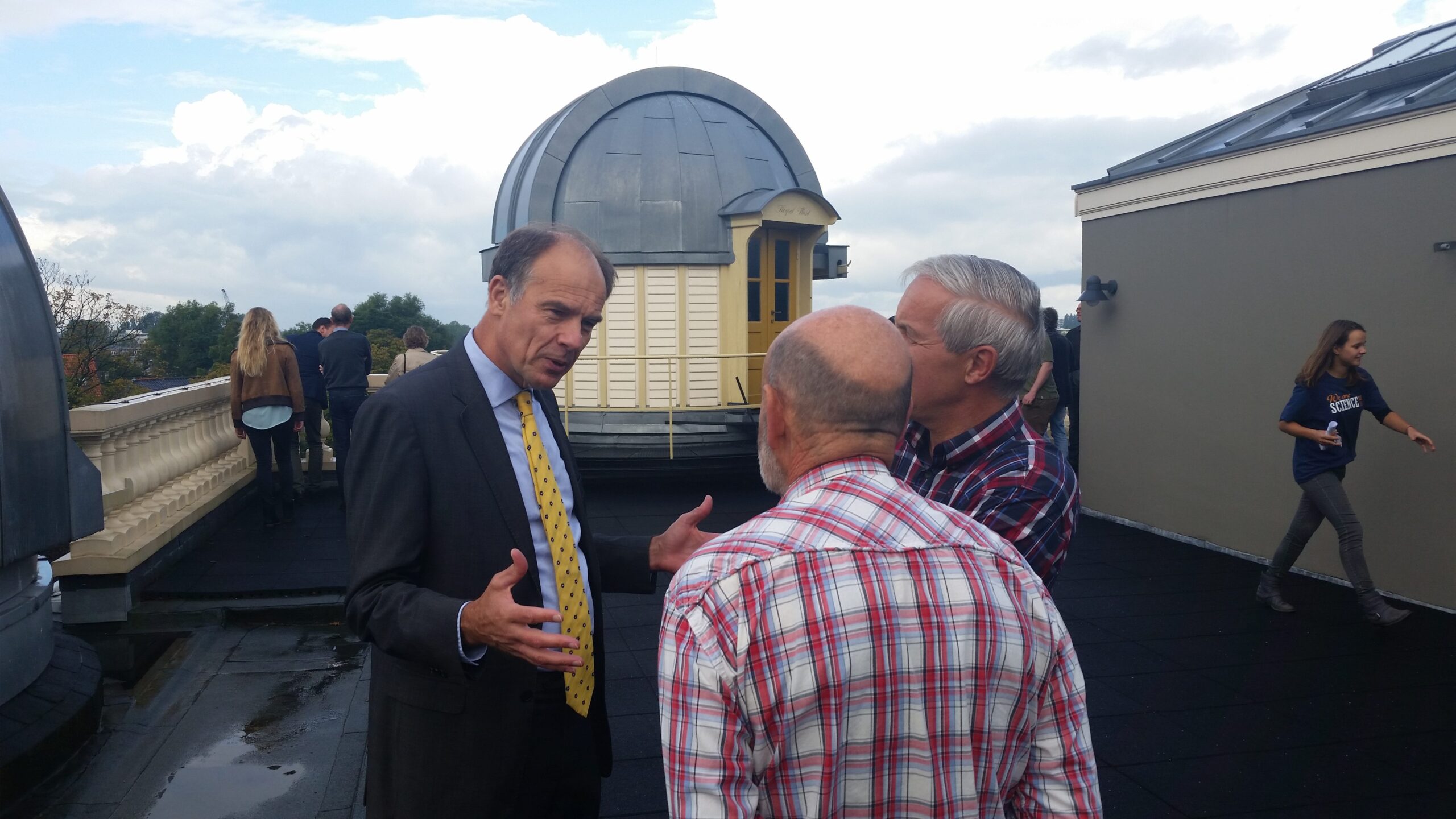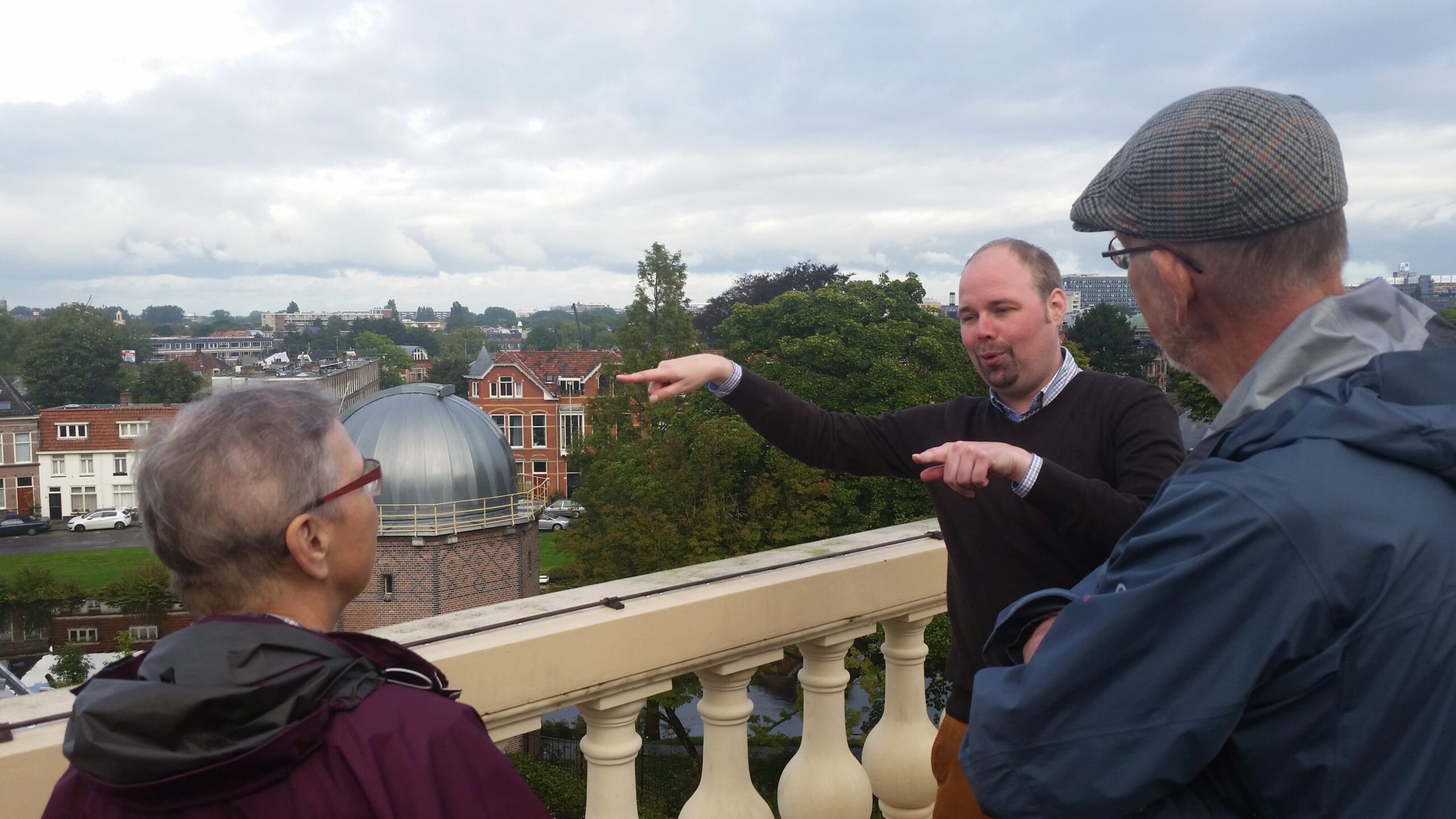 Chris de Waard ging zaterdag naar de onthulling van de heliostaat en sprak met rector Carel Stolker, Ivo Labbé die de coördinatie op zich nam om het geld bijeen te krijgen, hoogleraar Frans Snik en directeur Dick Harms van de Leidse Instrumentmakers School.