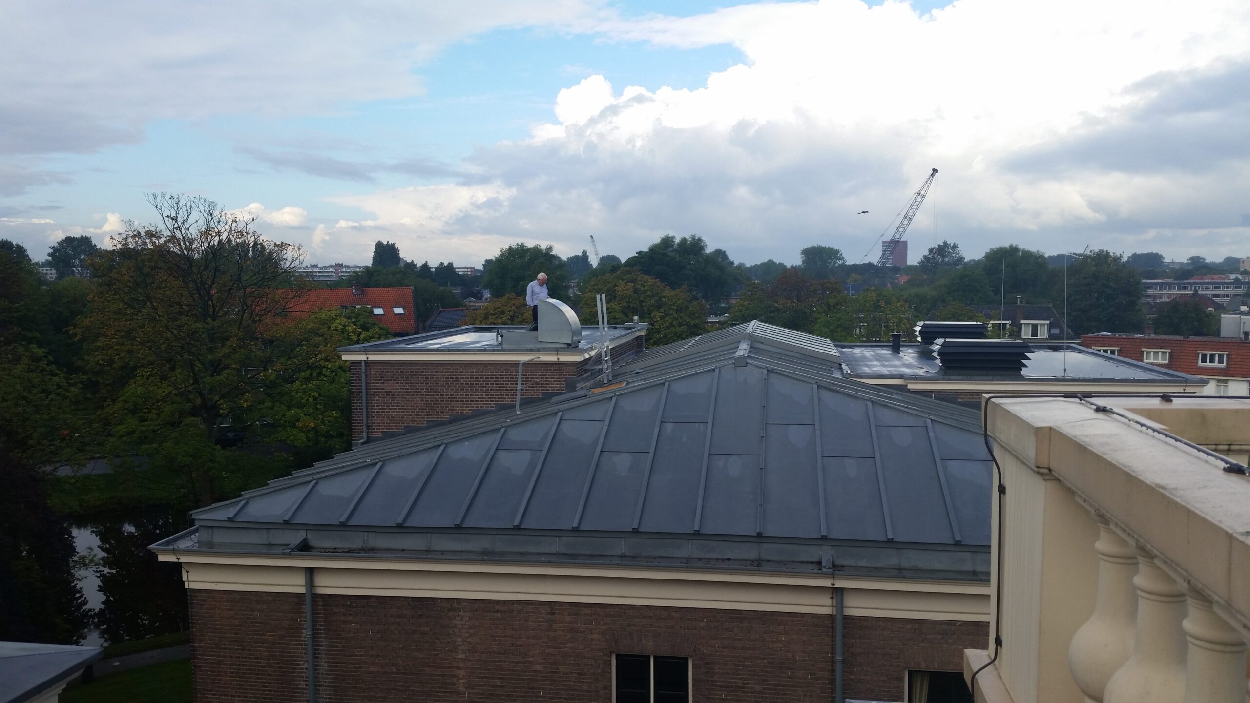 Eerder deze maand werd voor het eerst in 70 jaar een extra koepel geplaatst op het dak van de Oude Sterrewacht. De koepel voor de zonnekijker wordt liefkozend ‘de kinderwagen’ genoemd. (Foto: Oude Sterrewacht Leiden).