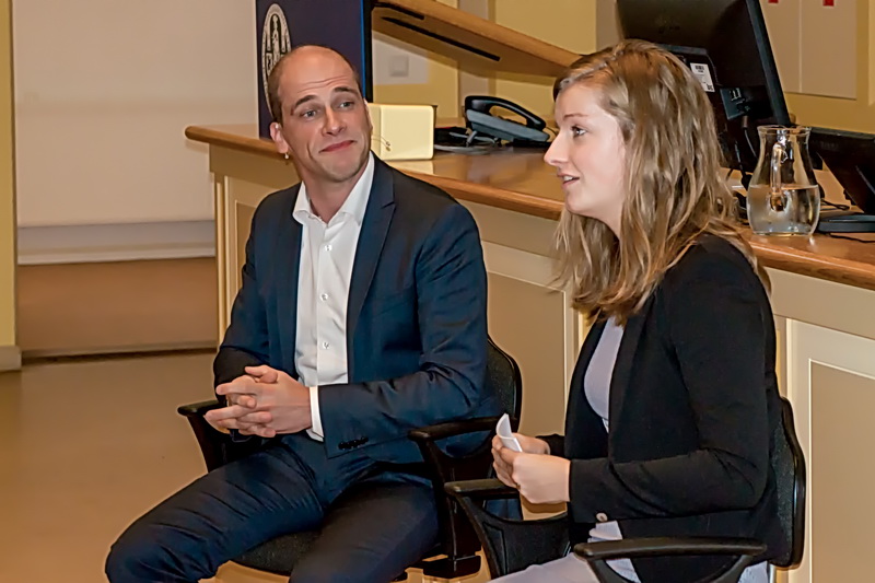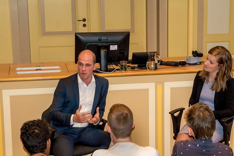 Diederik Samsom vertelde over zijn functie. Ook vertelde Samsom veel over zijn eigen studentenperiode, waarover de studenten de nodige vragen hadden. Het gastcollege kwam net na de algemene beschouwingen, waardoor de studenten pittige vragen konden stellen.