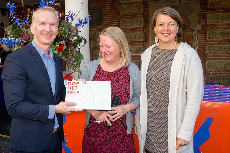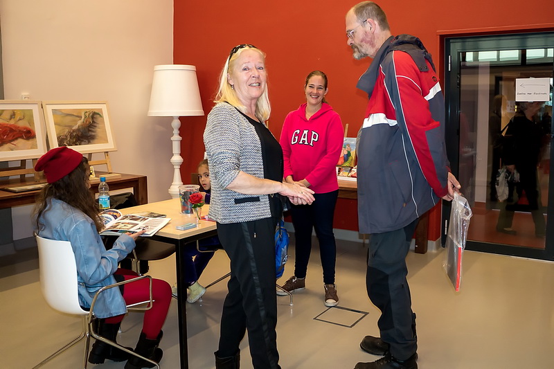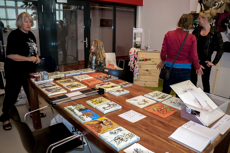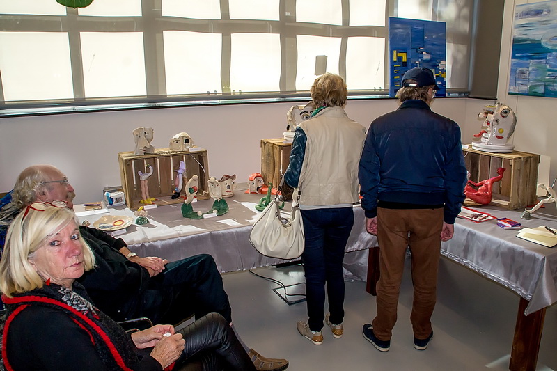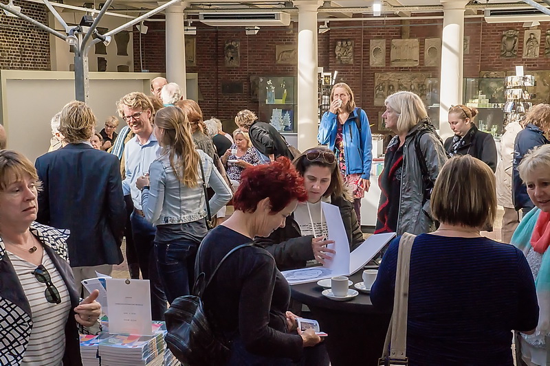 Om 11.00 uur verwelkomde zij de aanwezigen, waaronder uiteraard veel kunstenaars en de wethouder van Cultuur. In haar openingspraatje wees zij er op, dat met in totaal meer dan 150 deelnemers op bijna 90 locaties de Leidse Kunstroute de grootste van Nederland is. Niet alleen binnen de singels, maar ook steeds meer ruimtes en terreinen daarbuiten worden door kunstenaars ontdekt en ingericht. Zoals Meta Knol het uitdrukte: ‘De kaart in het routeboekje is inmiddels te klein voor alle activiteiten’.