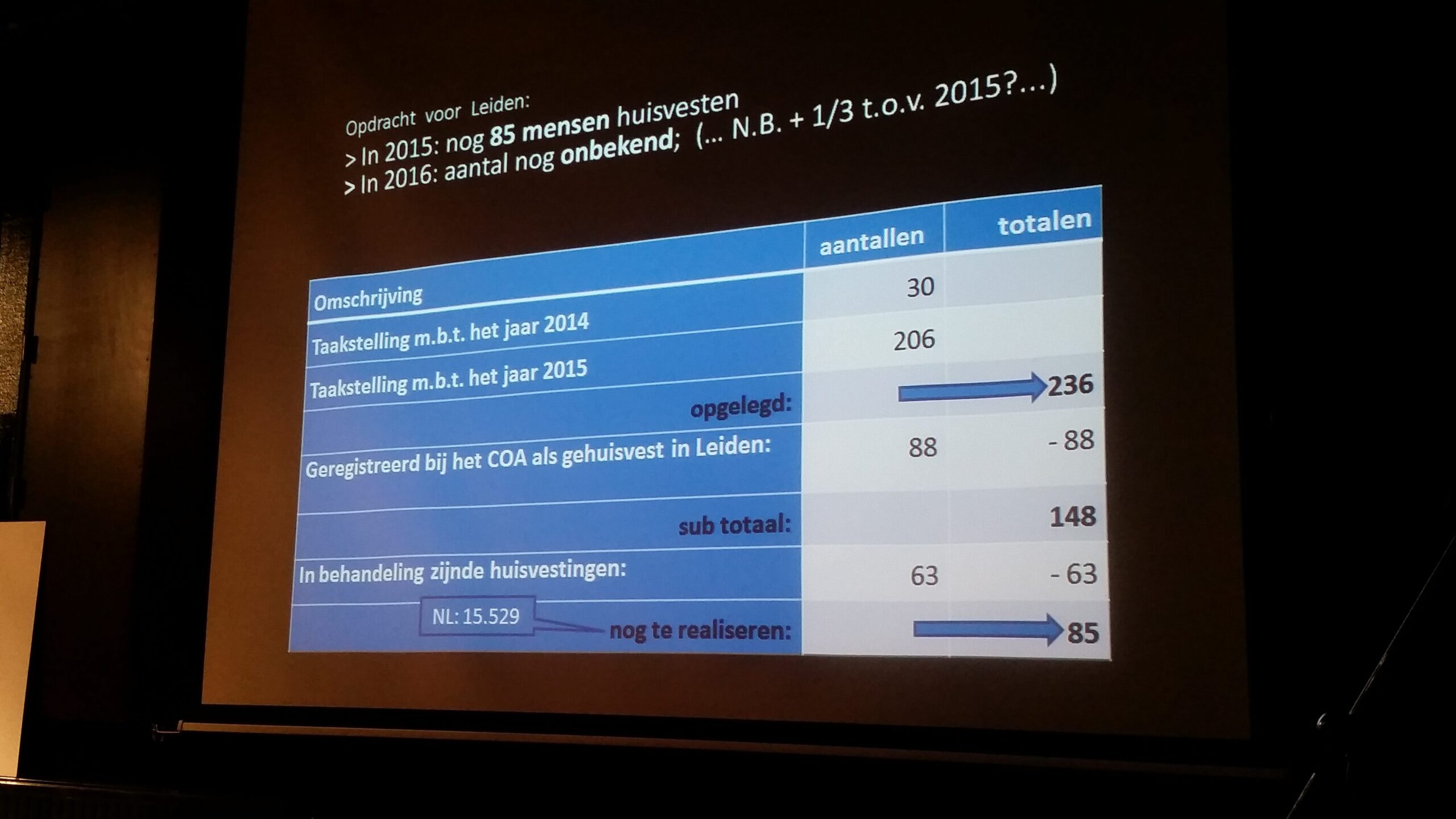 Veel Leidenaren wachten al jaren op een woning en als vluchtelingen nu met voorrang een woning zouden krijgen, ontstaat er een hele grote spanning, aldus burgemeester Lenferink: “Alle vrijkomende woningen aan vluchtelingen met een vergunning geven, is gevaarlijk.Dat is de bijl aan de wortel van de solidariteit.