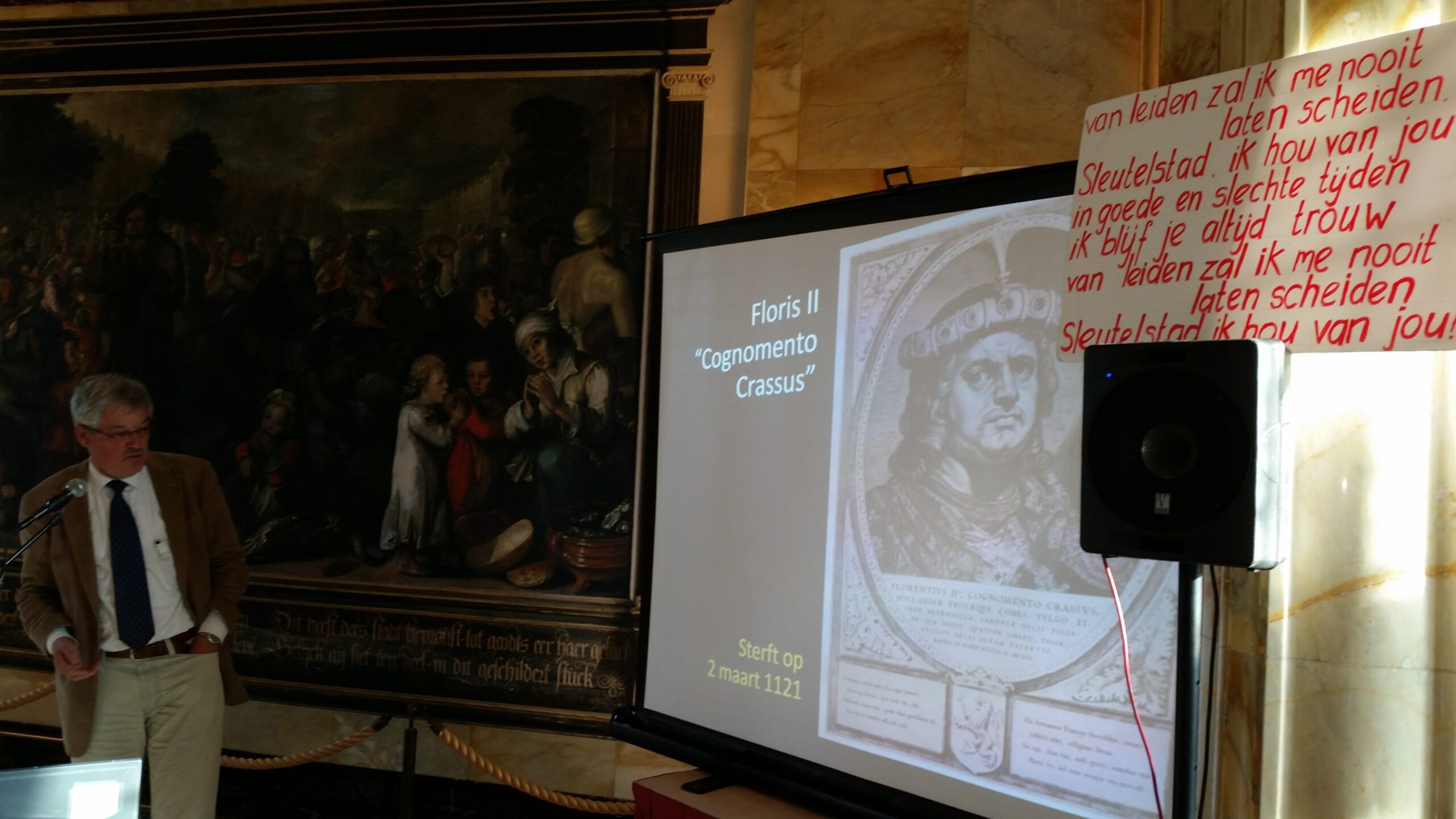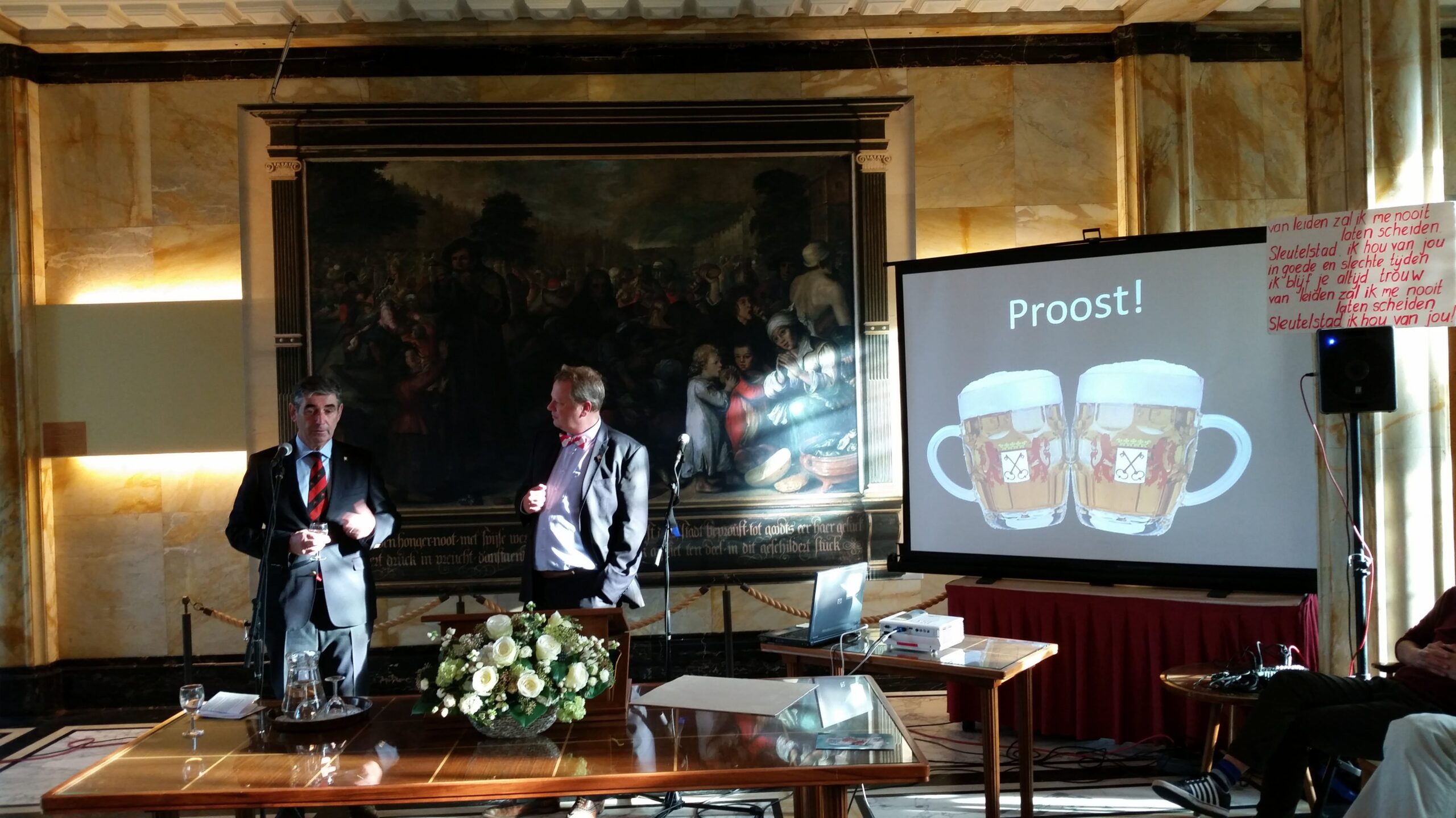 Rondom de discussie was er ook ruimte ook de geest te scherpen. De Leidse hoogleraar wetenschapscommunicatie Jos van den Broek stelde ingewikkelde 3-oktobervragen. Ook was er vermaak. Smartlappenkoor ‘Er welt een traan’ vertolkte Leidse meezingers als ‘Van Leiden zal ik me nooit laten scheiden’ en ‘In ben zo graag in Leiden’.