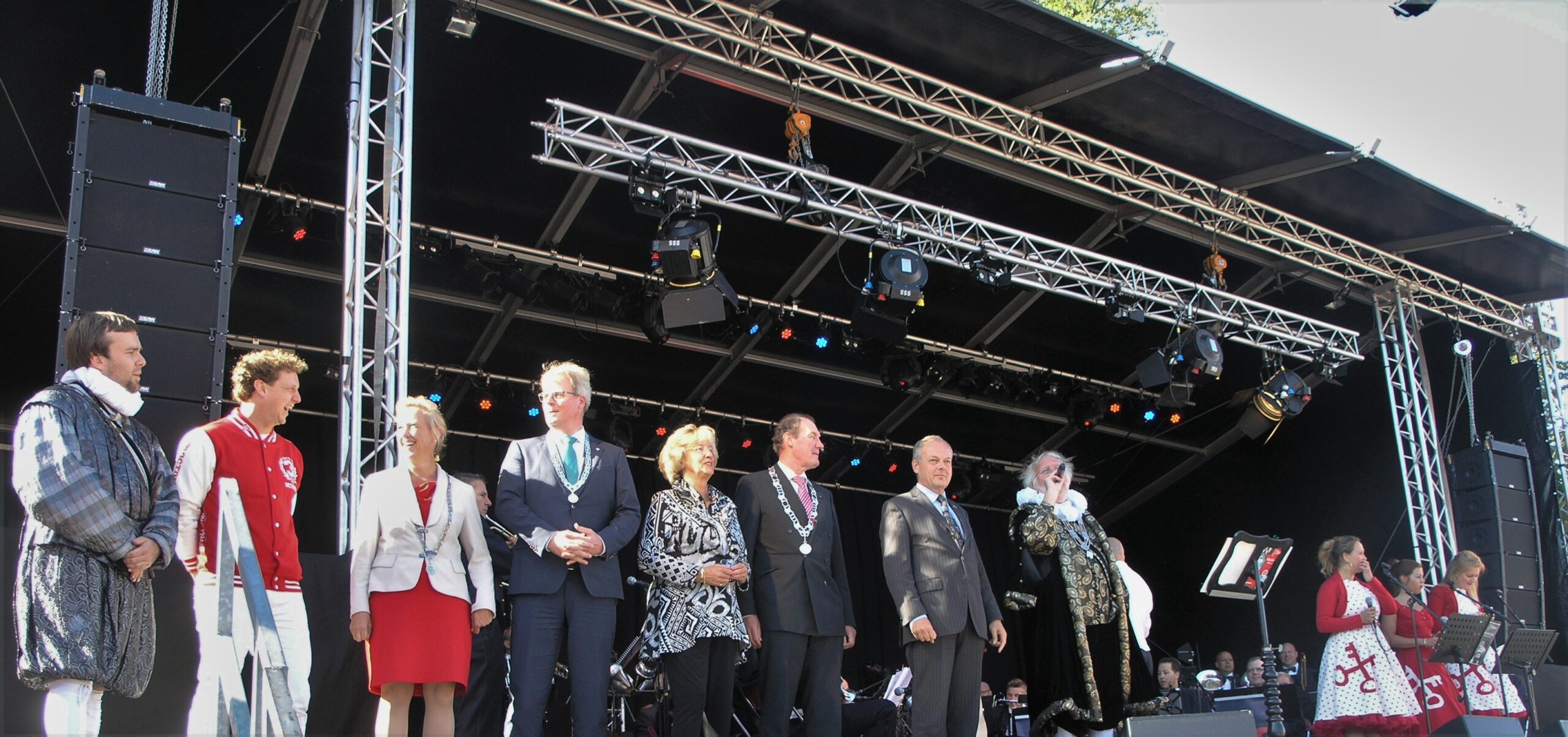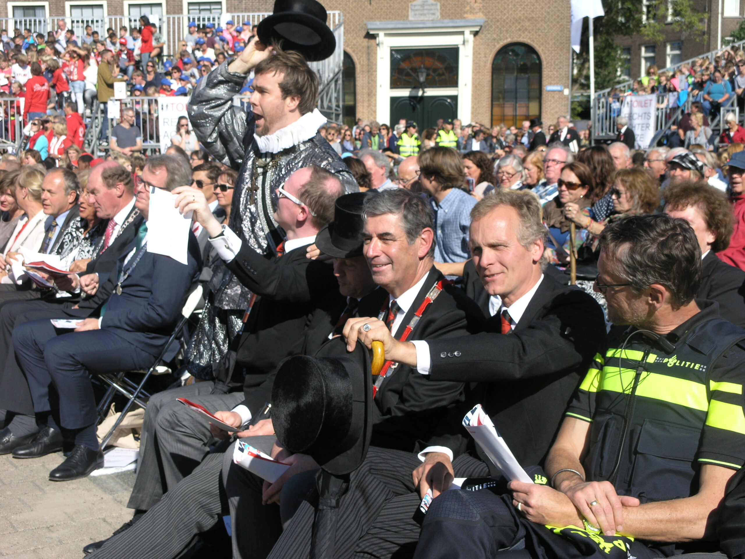 Het was een groot feest bij de ‘onofficiële opening van het Leids Ontzet’, zoals burgemeester Henri Lenferink het noemt. De colleges van burgemeester en wethouders van Leiden, Oegstgeest, Zoeterwoude, Leiderdorp en Voorschoten waren aanwezig.