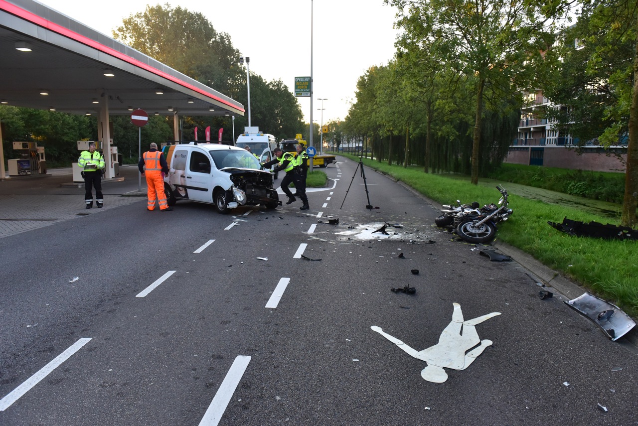 Op de Doctor Lelylaan is vanochtend een motorrijder gewond geraakt bij een aanrijding met een auto. Het ongeluk gebeurde toen de motorrijder en de automobilist bij een tankstation met elkaar in botsing kwamen. De auto vloog na het ongeluk in brand. De motorrijder is overgebracht naar het ziekenhuis.