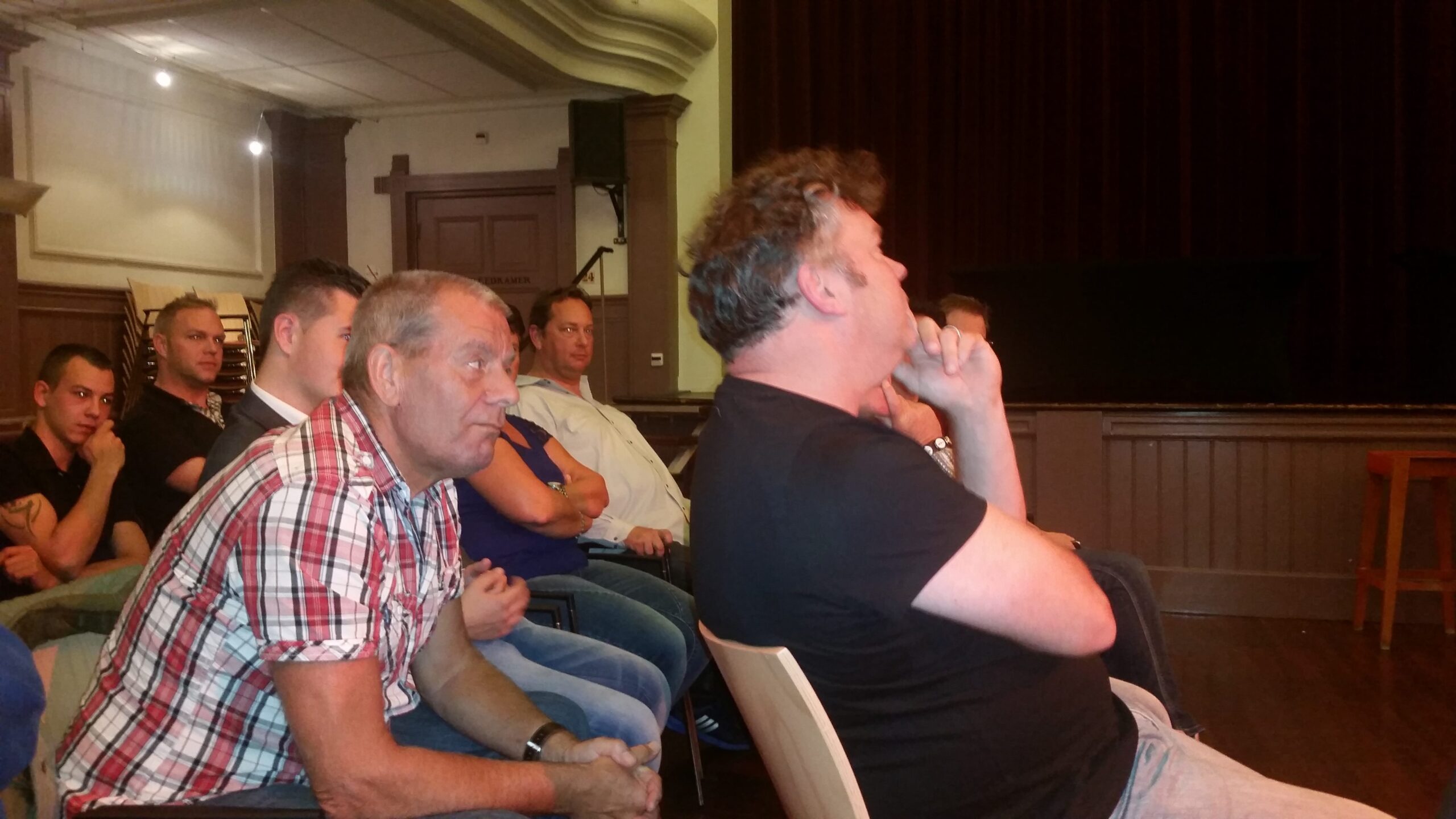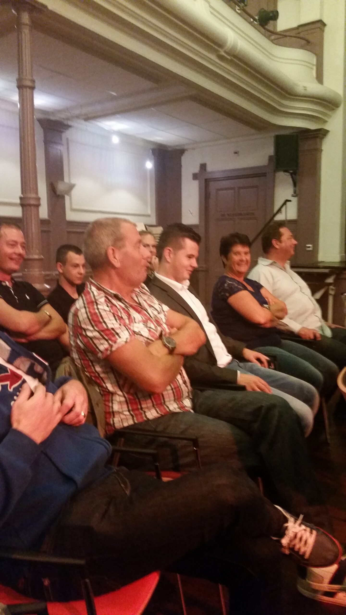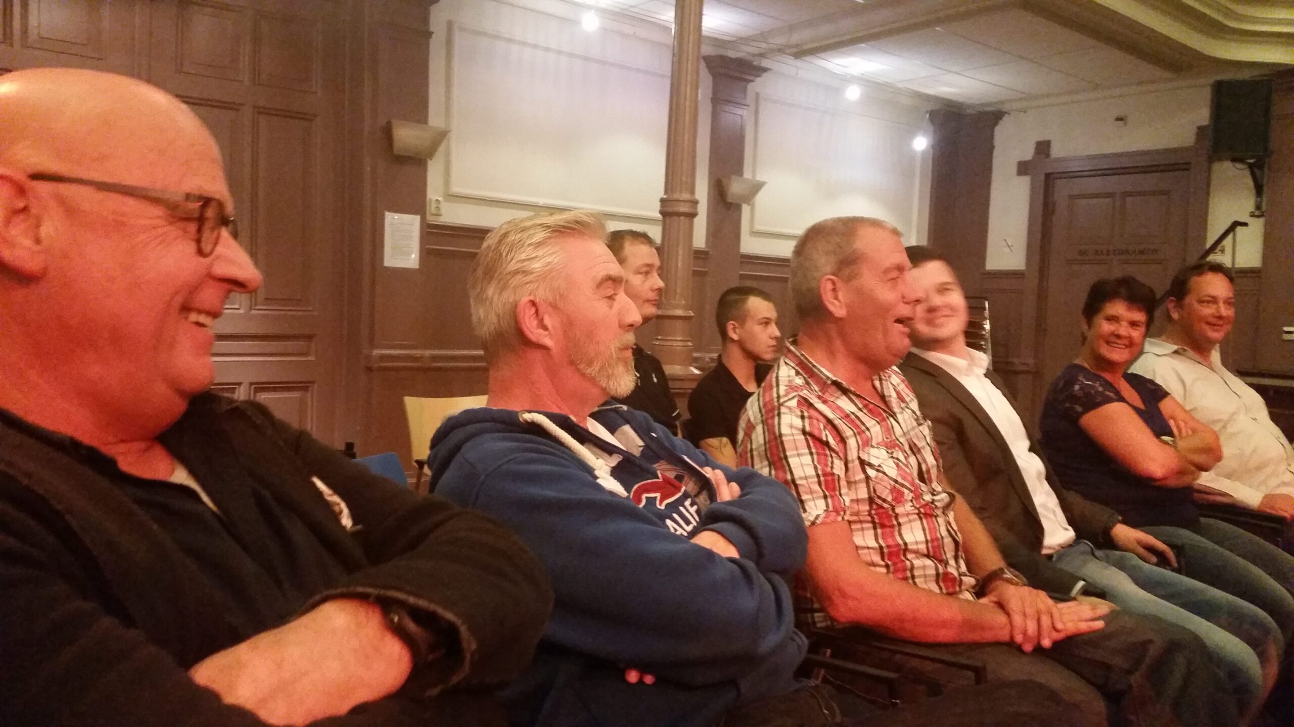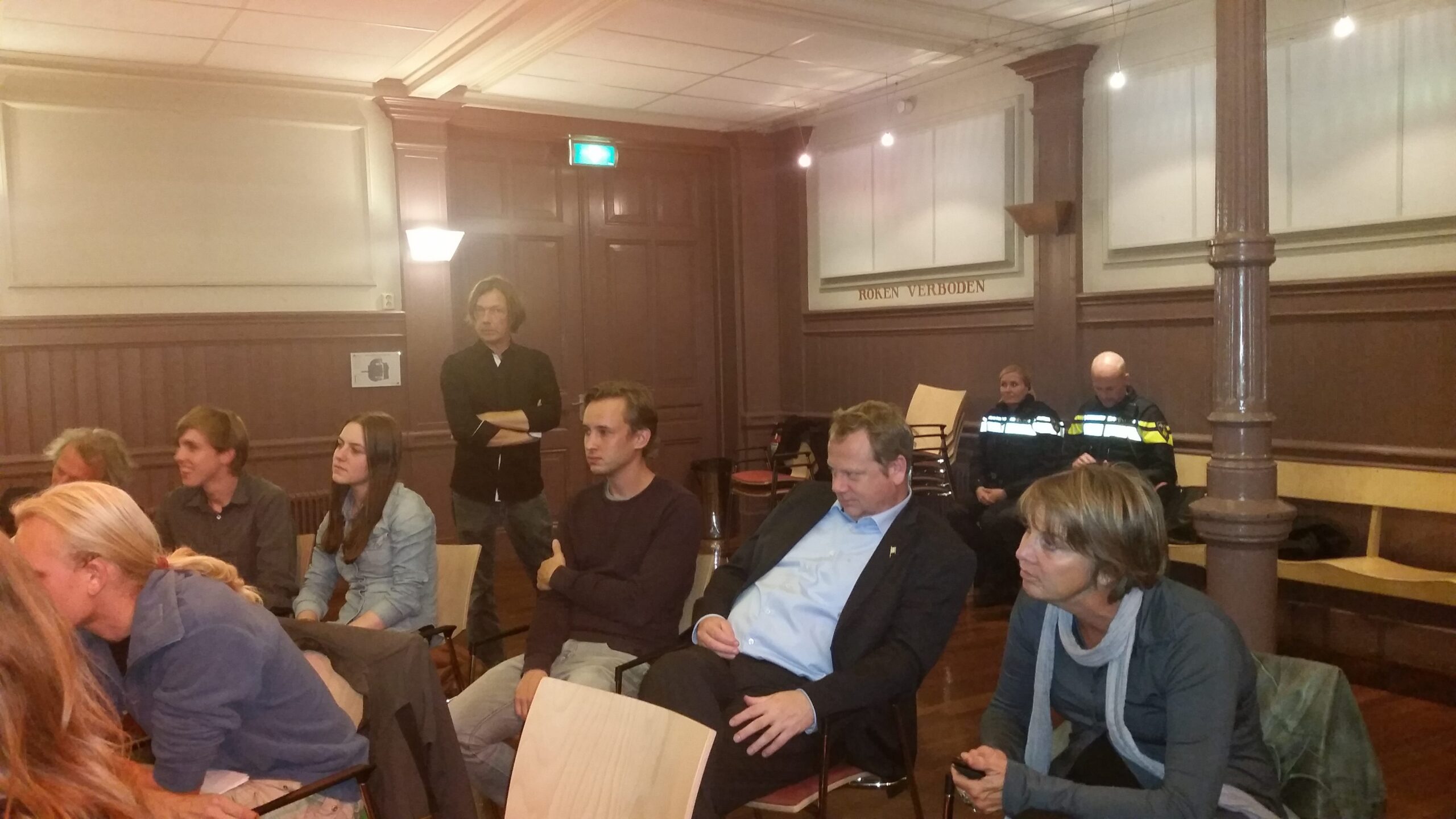 In de zaal een hele groep ‘Leidse Zwarte Pieten’ van wie er enkele al decennia bij de Leidse intocht betrokken zijn. Zelfs Sint zelf was aanwezig. “Je moet je wel schminken anders herkennen de kinderen je. Dan is de magie weg,” pleitte een van de pieten voor het behoud van de omstreden traditie. “En de meeste andere kleuren werken niet. Ik was een keer groene piet en iedereen zag meteen dat ik het was,” beargumenteerde een andere piet.