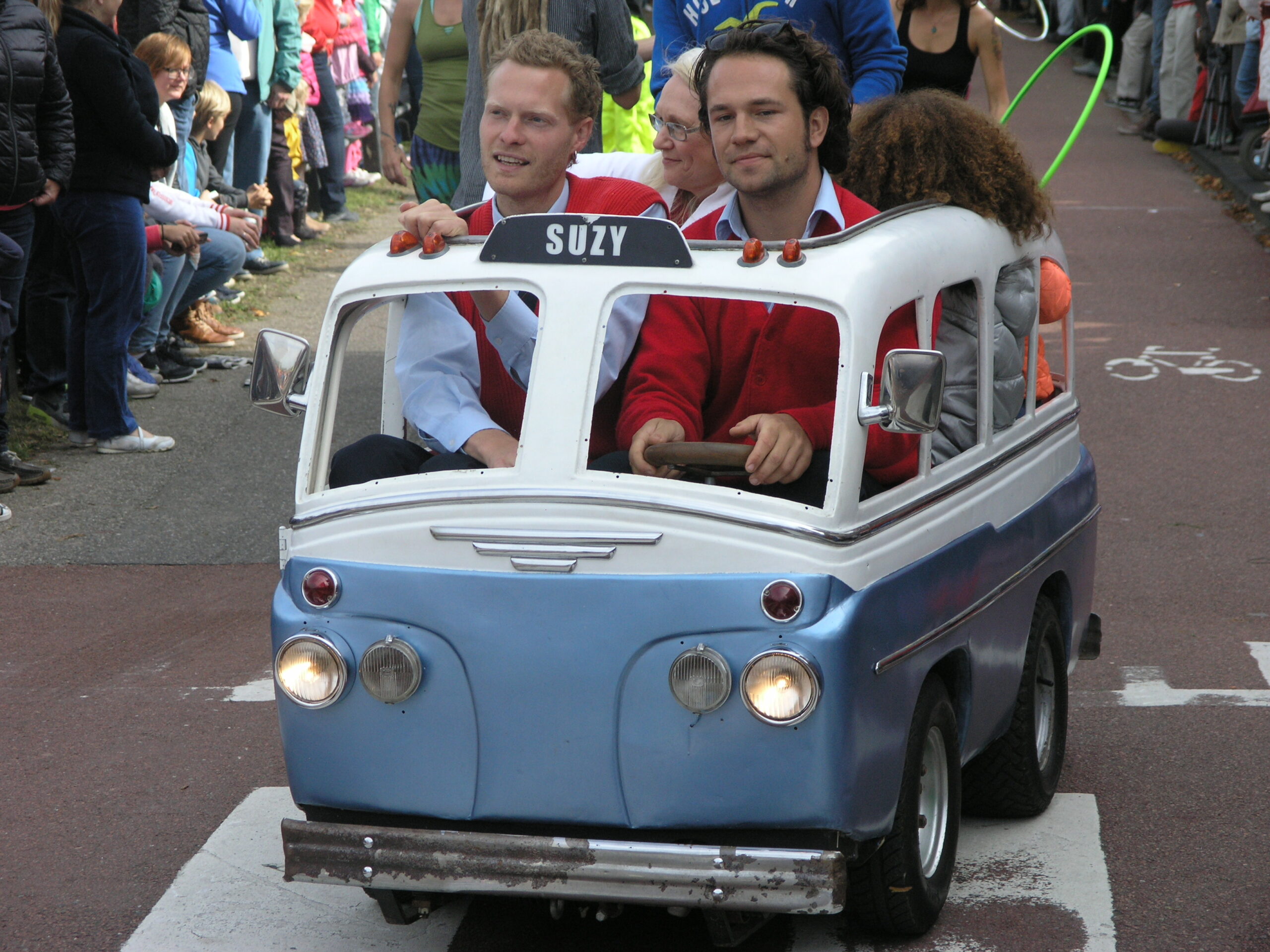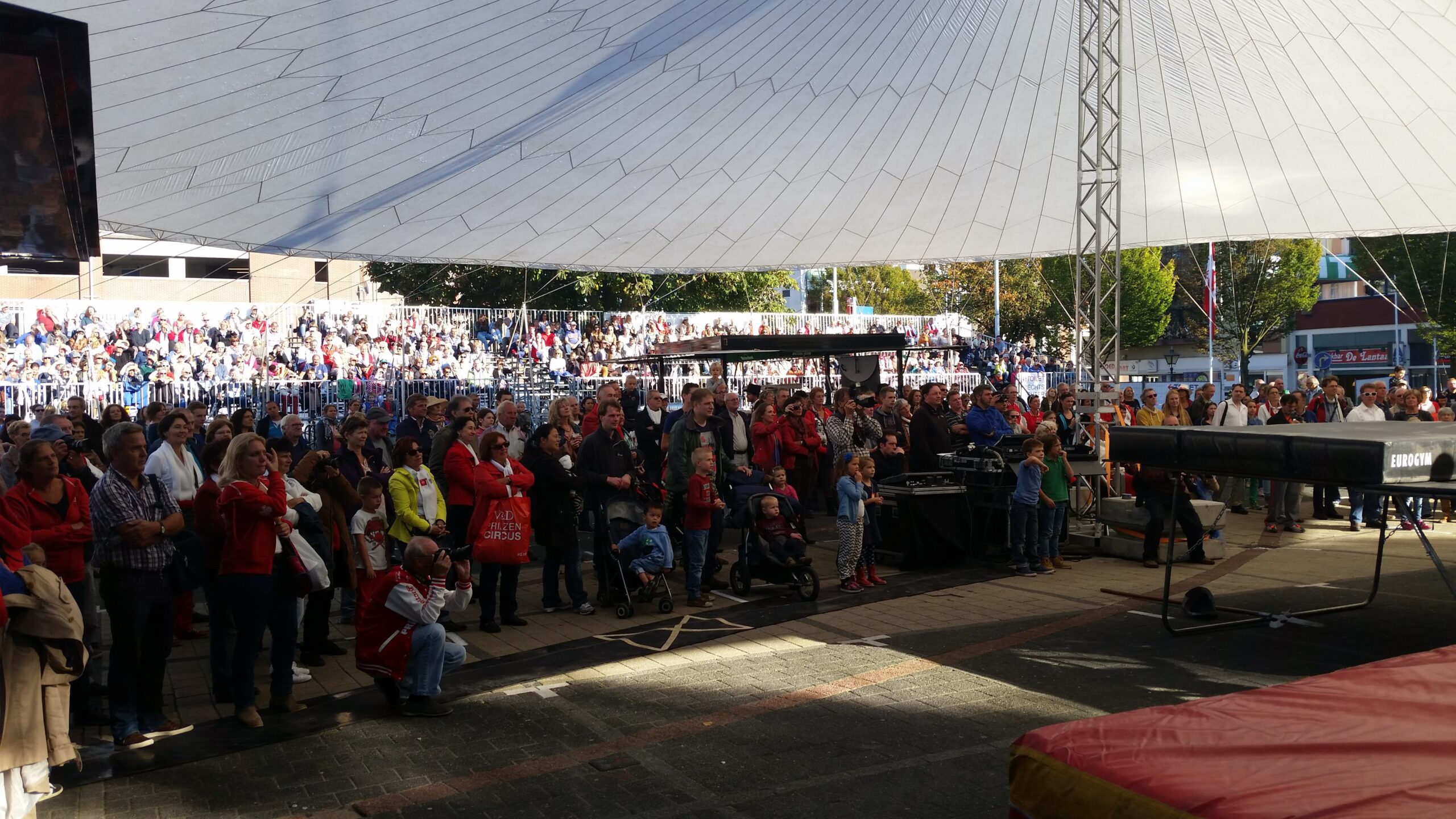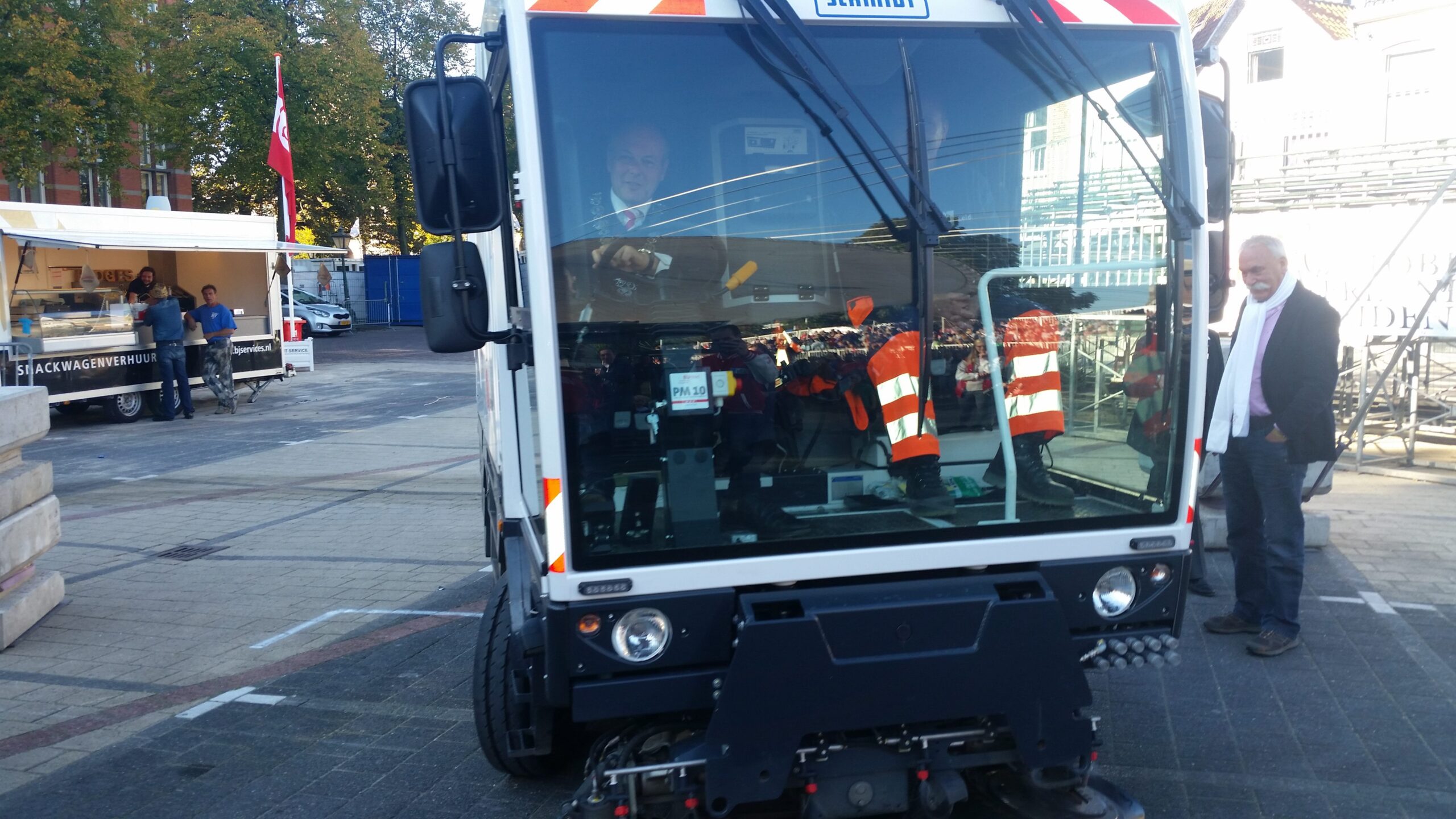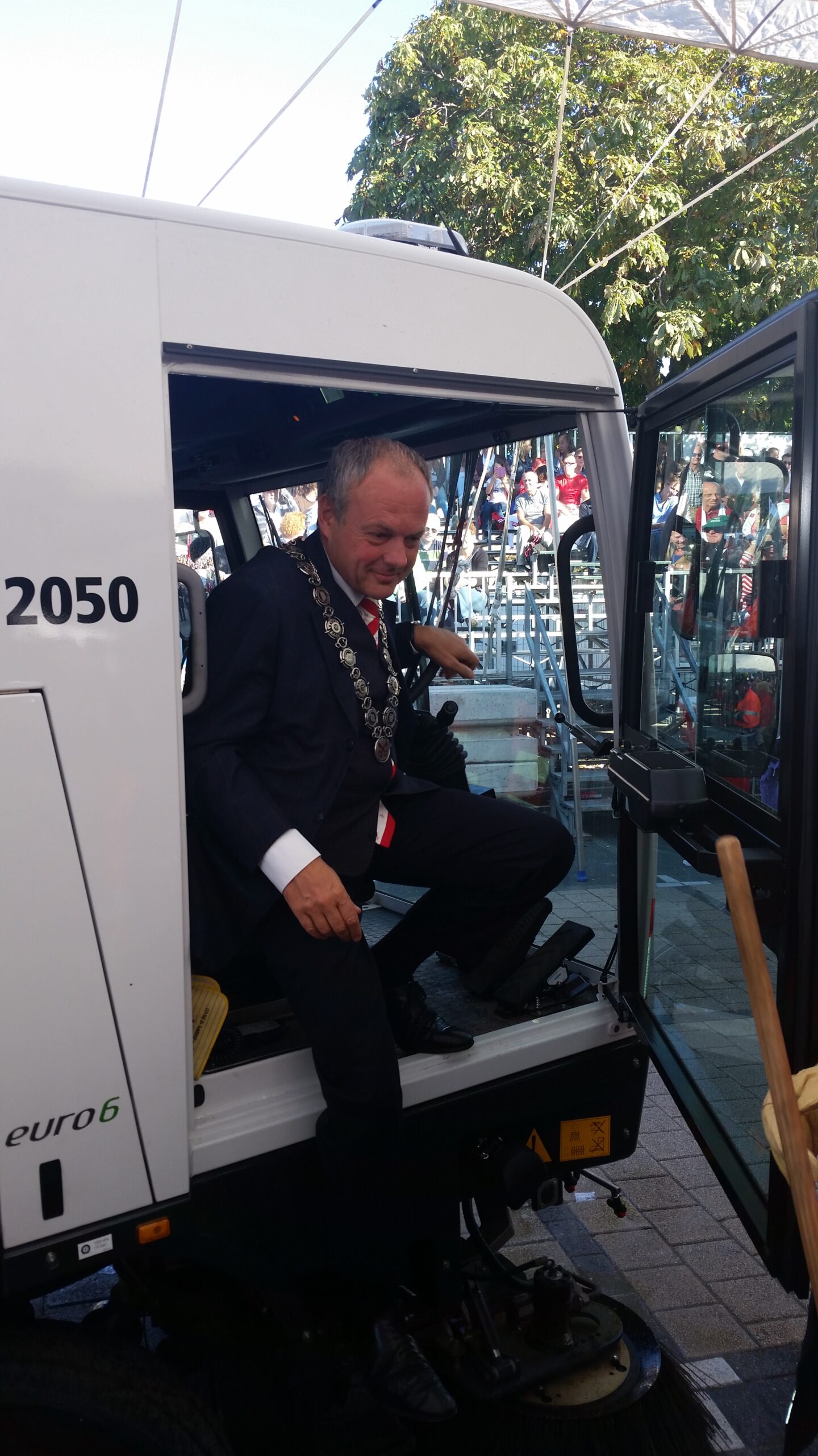 2 oktober 2015 – Om 15.74 uur werd het ‘feest der feesten’ officieel geopend met een spectaculaire act die alles op z’n kop zette. Burgemeester Lenferink kwam aan op het plein in een veegwagen van Stedelijk Beheer. Een eerbetoon aan de mensen die morgennacht vanaf 04.00 uur ’s nachts, direct na het feest dus, ervoor zorgen dat de stad er op 4 oktober alweer prima bijligt.