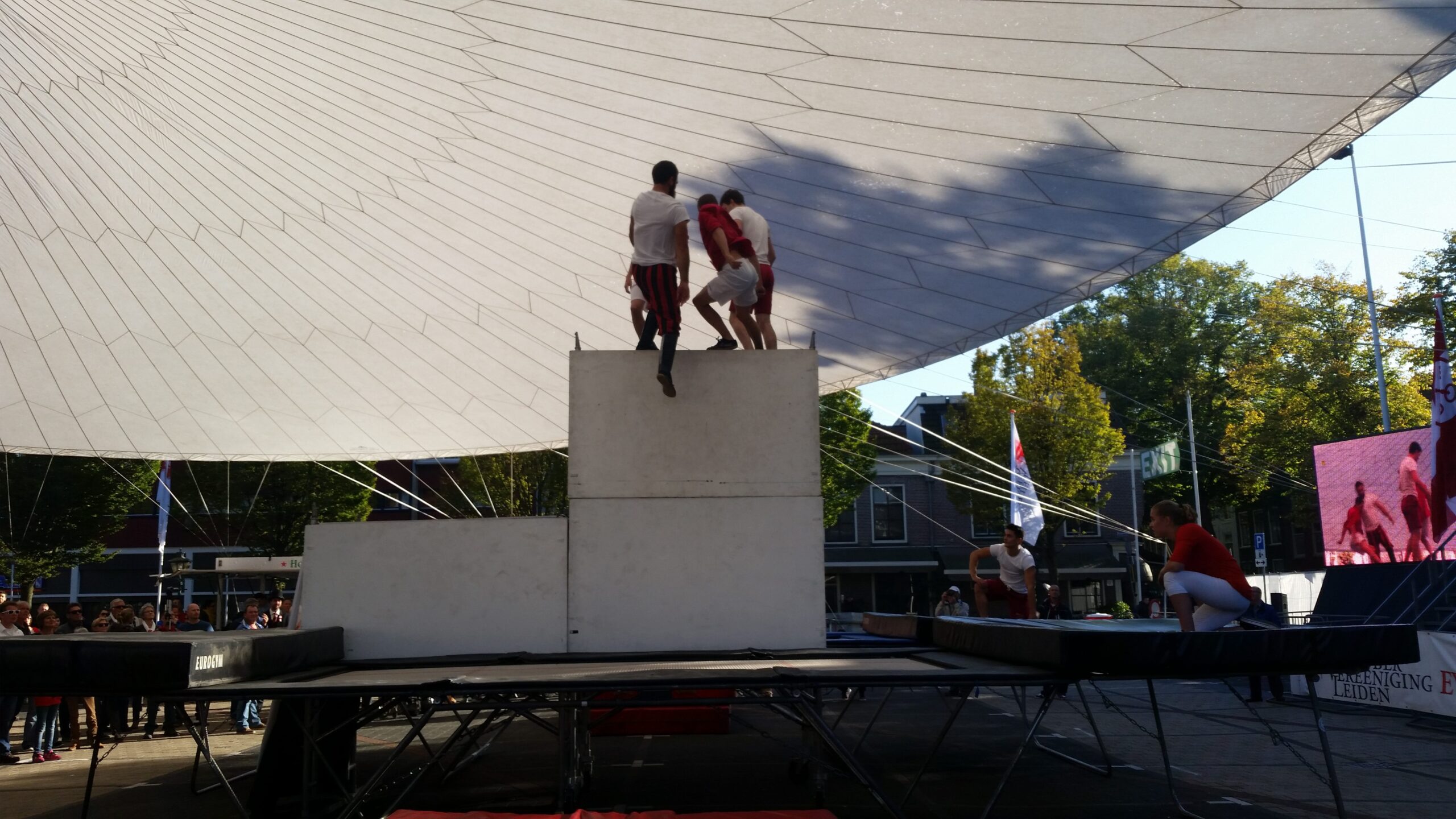 Gymsport Leiden had gisteravond in de Taptoe der Verenigingen de beste presentatie. Ze wonnen de Joppenszprijs 2015. Tweede werd Docos en op de derde plaats eindigden de roeiers van Die Leythe. Na de hutspotmaaltijd op de Hooglandse Kerkgracht liep de Kaasmarkt langzaam vol met sport- en muziekverenigingen die zich opstelden voor de Taptoe. Sleutelstad deed live verslag in de 3 Oktoberradio uitzending. (Foto’s: Chris de Waard).