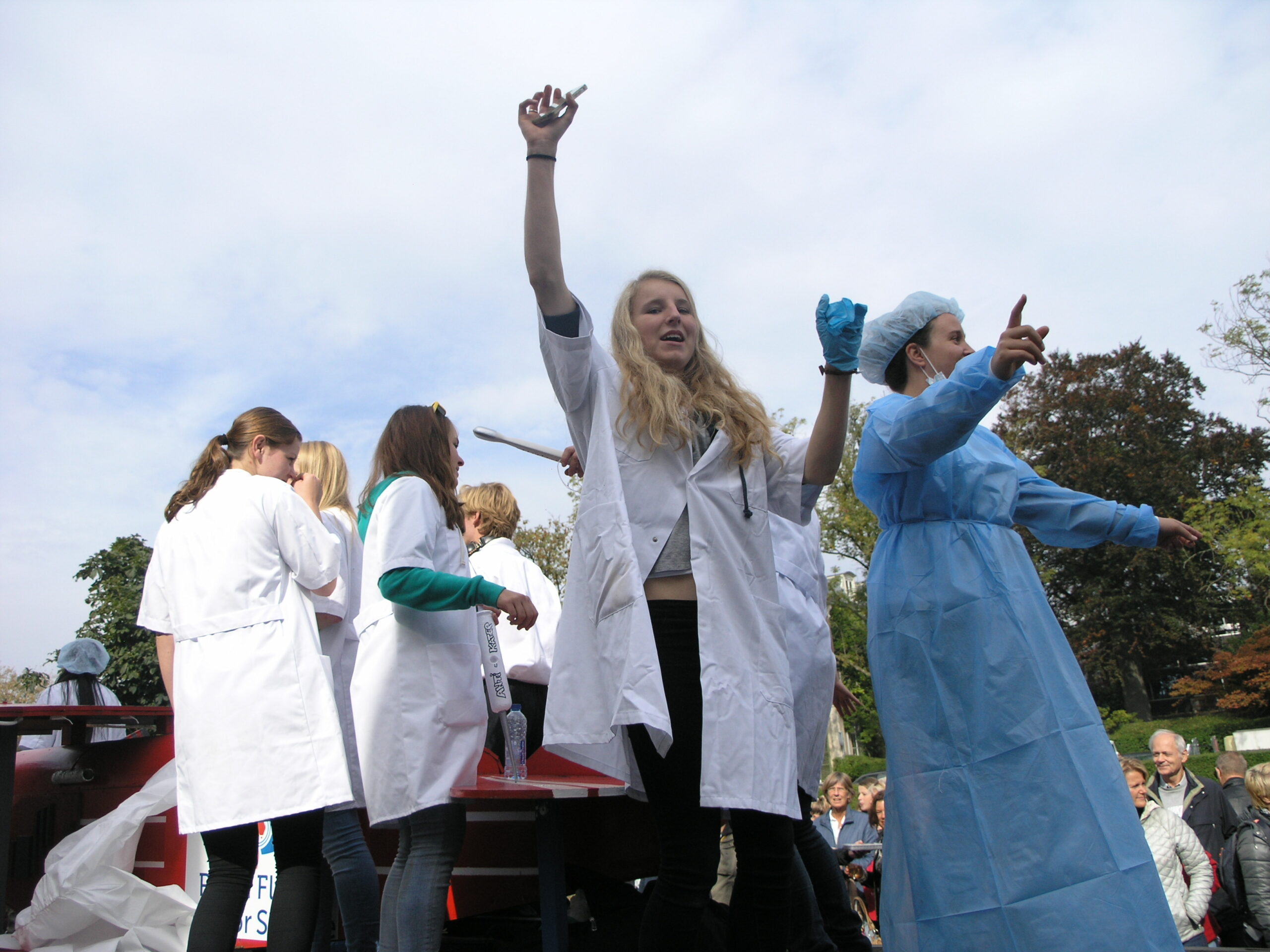 Het hoogtepunt van de dag kwam toen de Leidse cabaretier Jochem Myjer het podium op stormde. De leerlingen zongen oorverdovend hard mee met zijn lied ‘La La La Leiden’. De komiek heeft zich de afgelopen ontwikkeld tot een kinderidool. Dat komt mede door het kinderboek ‘De Gorgels’ wat hij onlangs uitbracht.