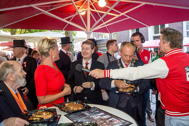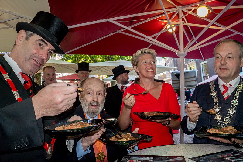 Op de Hooglandse Kerkgracht werd vervolgens de hutspot geproefd. Die was, zoals altijd, weer beter dan vorig jaar.