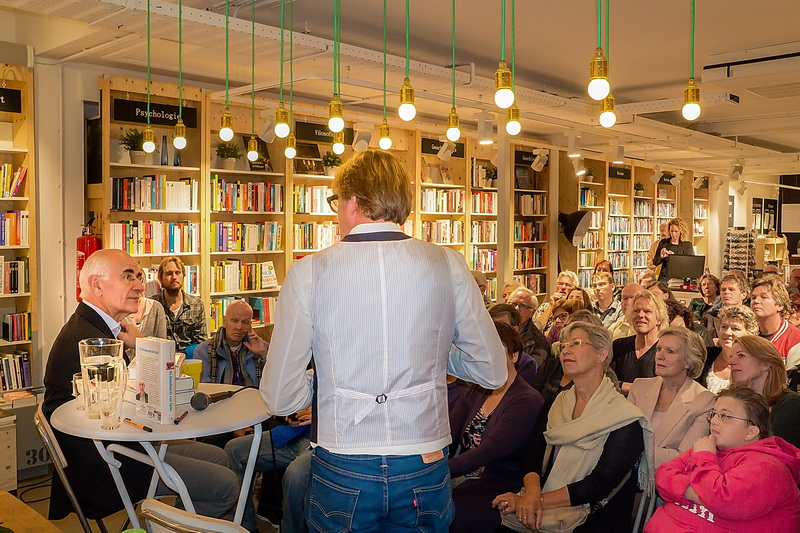 Tientallen belangstellenden waren afgekomen op de bijeenkomst die Willeke van der Meer van boekhandel Kooyker had georganiseerd. Spits werd eerst door presentator Kees Paalvast geïnterviewd over zijn radiowerk en ook zijn liefde voor muziek. Daarna was het aanschuiven voor een handtekening en een opdracht in het boek dat de 90 favoriete liedjes van Spits beschrijft. Bij het boek zitten ook vier cd’s met daarop die liedjes. Daaronder ook werk uit Leiden. Van Jaap Fisher.