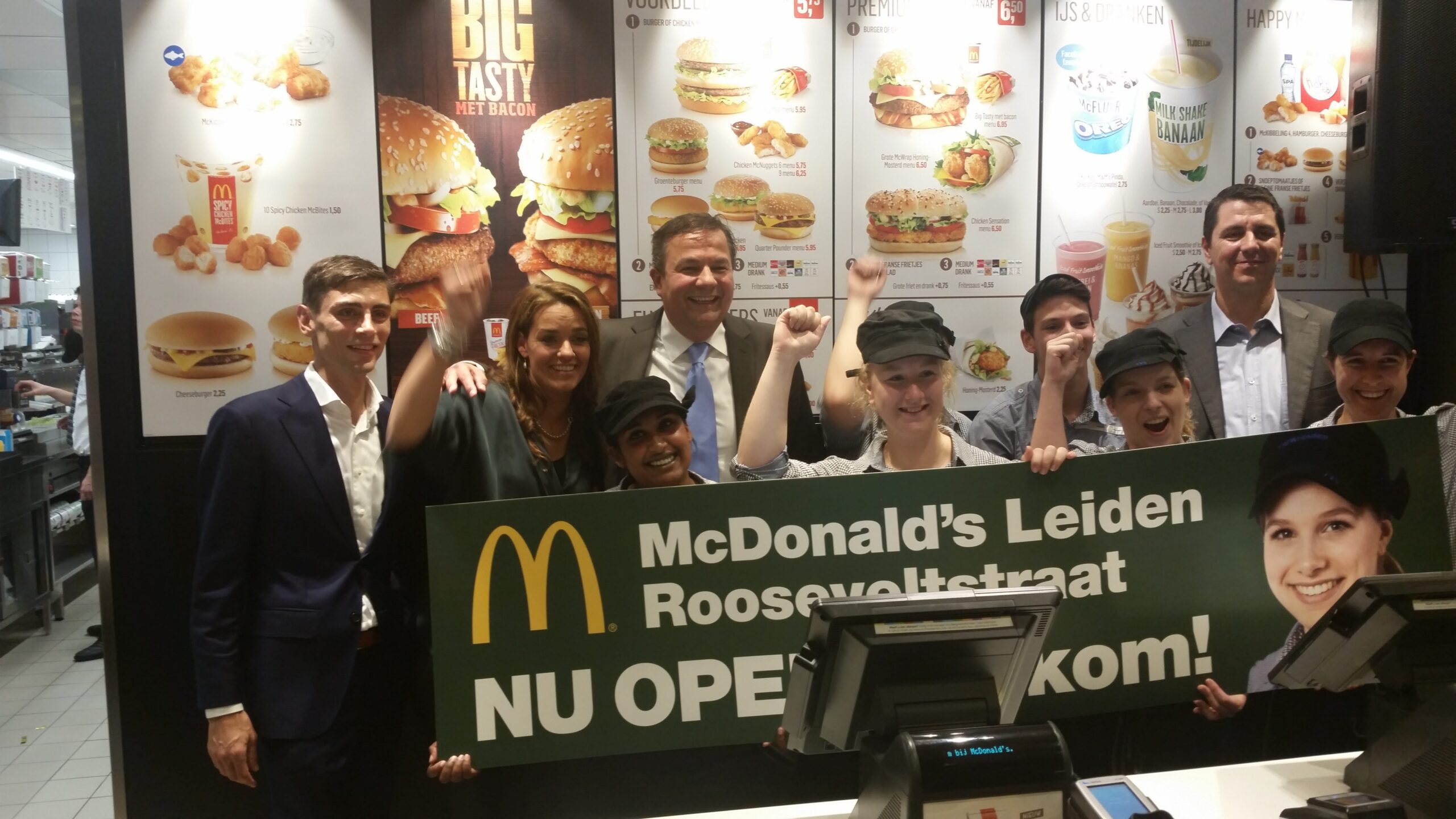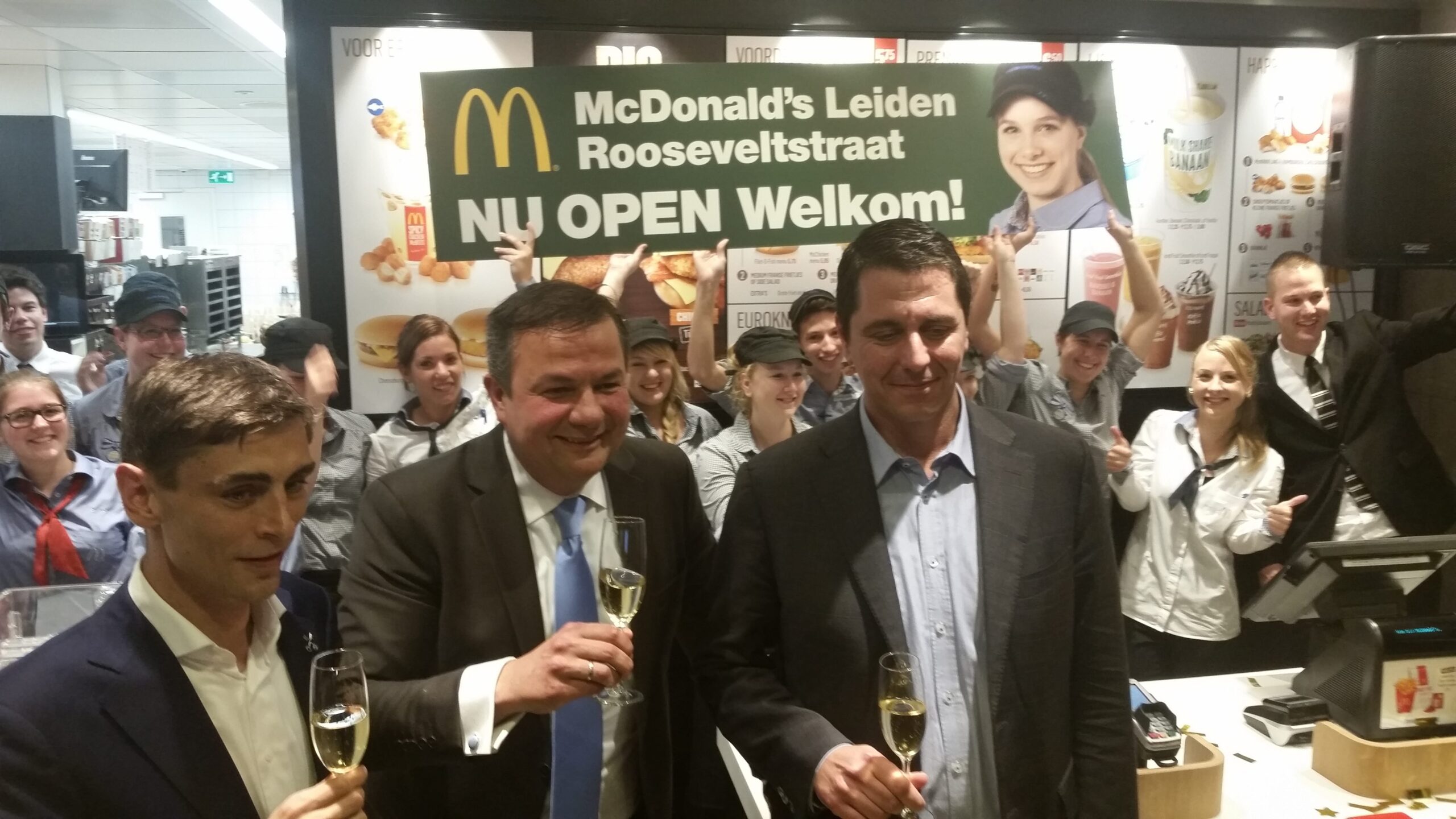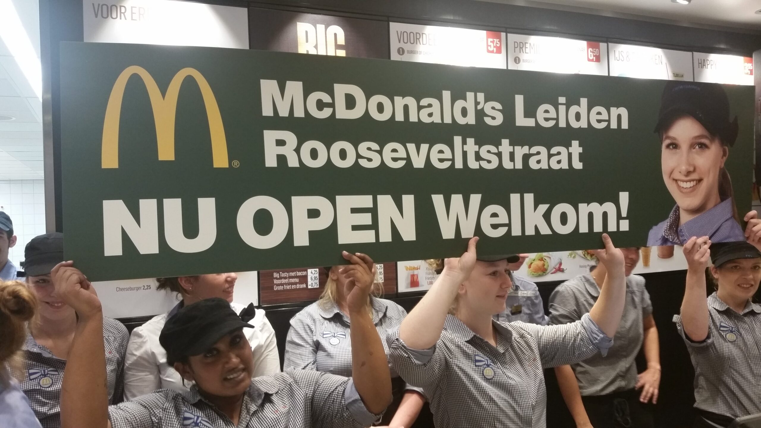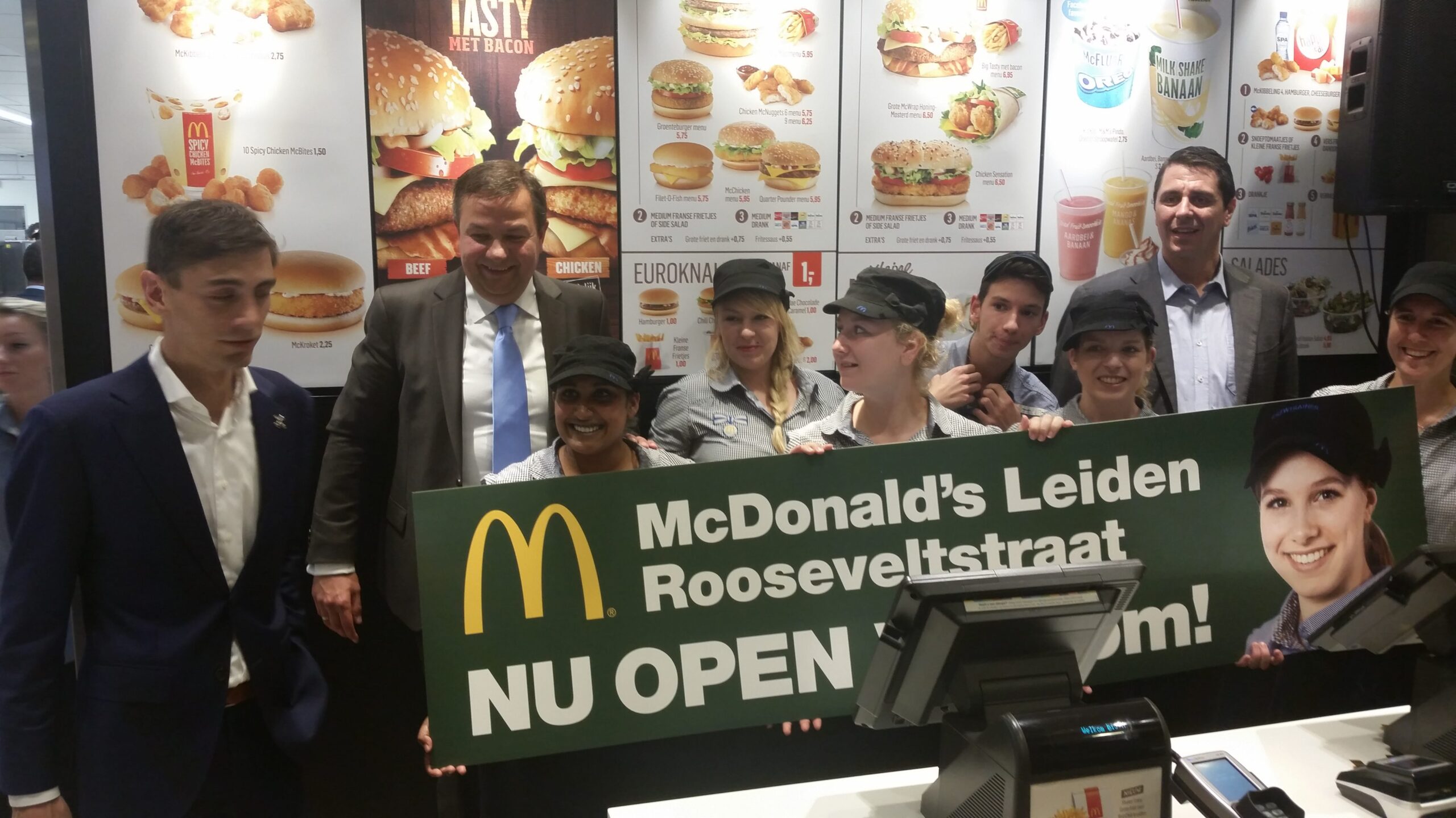 De nieuwe vestiging van McDonald’s aan de Rooseveltstraat in Leiden is gisteren officieel geopend. De afgelopen weken werd er al proefgedraaid. Zowel in het restaurant zelf als de verkeersafwikkeling op het kruispunt lijken vooralsnog op een geoliede machine. Volgens eigenaar Walther Jacobs van McDonald’s Leiden zijn de files zelfs helemaal verdwenen sinds het kruispunt opnieuw is ingericht en ook volgens wethouder Laudy lijkt het er op dat de verkeersafwikkeling soepeler verloopt dan voorheen.