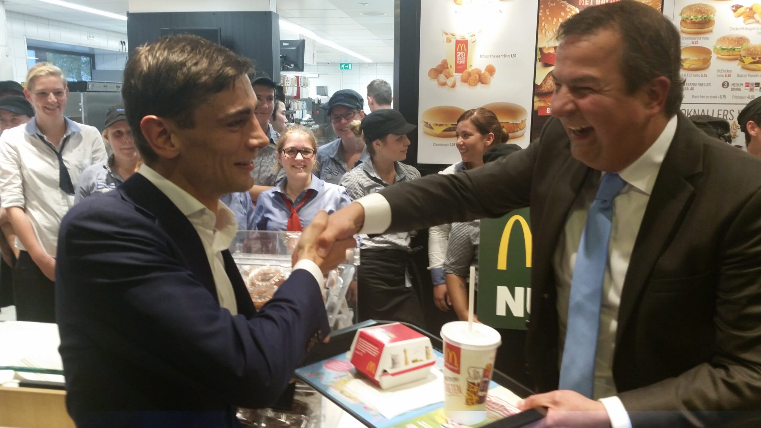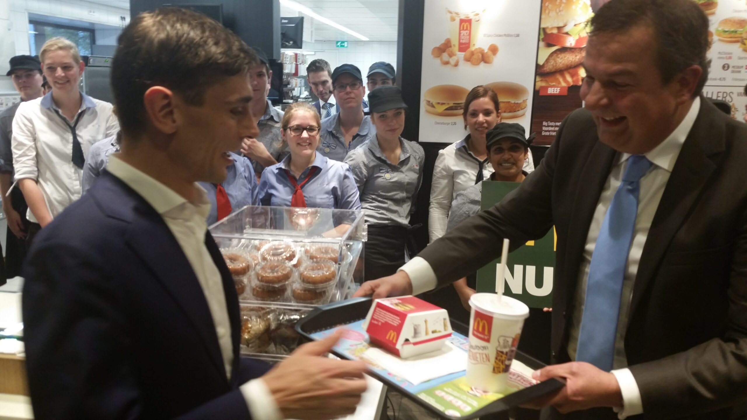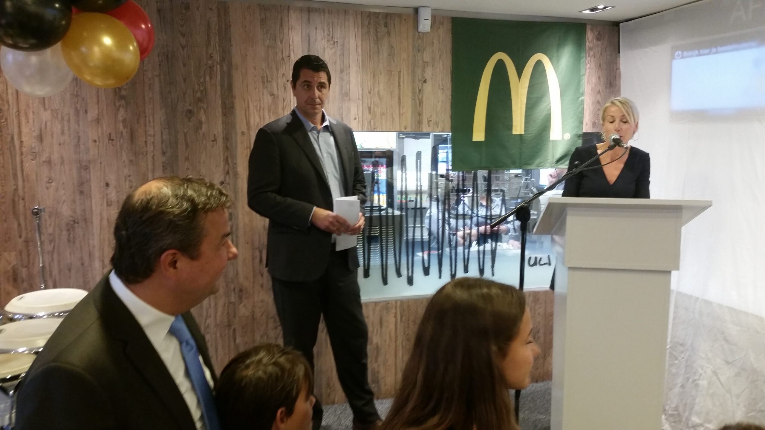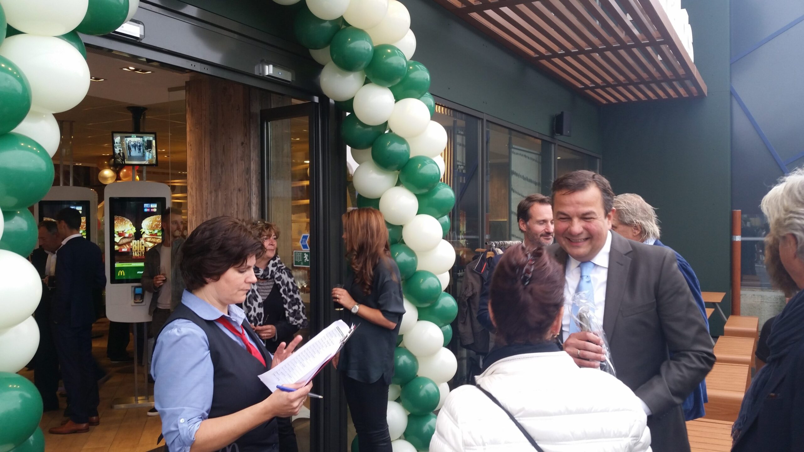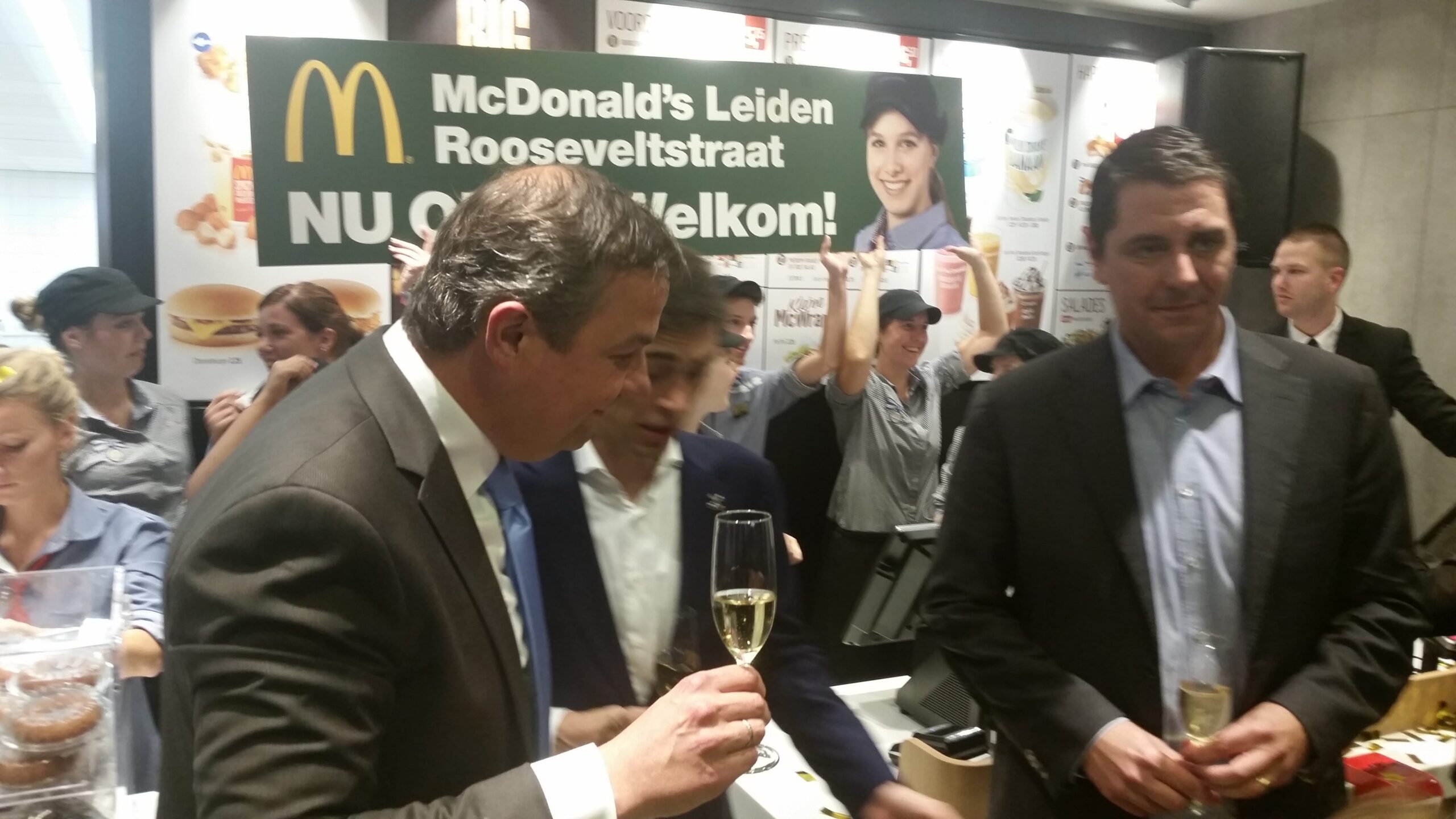 De nieuwe vestiging van McDonald’s aan de Rooseveltstraat in Leiden is gisteren officieel geopend. De afgelopen weken werd er al proefgedraaid. Zowel in het restaurant zelf als de verkeersafwikkeling op het kruispunt lijken vooralsnog op een geoliede machine. Volgens eigenaar Walther Jacobs van McDonald’s Leiden zijn de files zelfs helemaal verdwenen sinds het kruispunt opnieuw is ingericht en ook volgens wethouder Laudy lijkt het er op dat de verkeersafwikkeling soepeler verloopt dan voorheen.