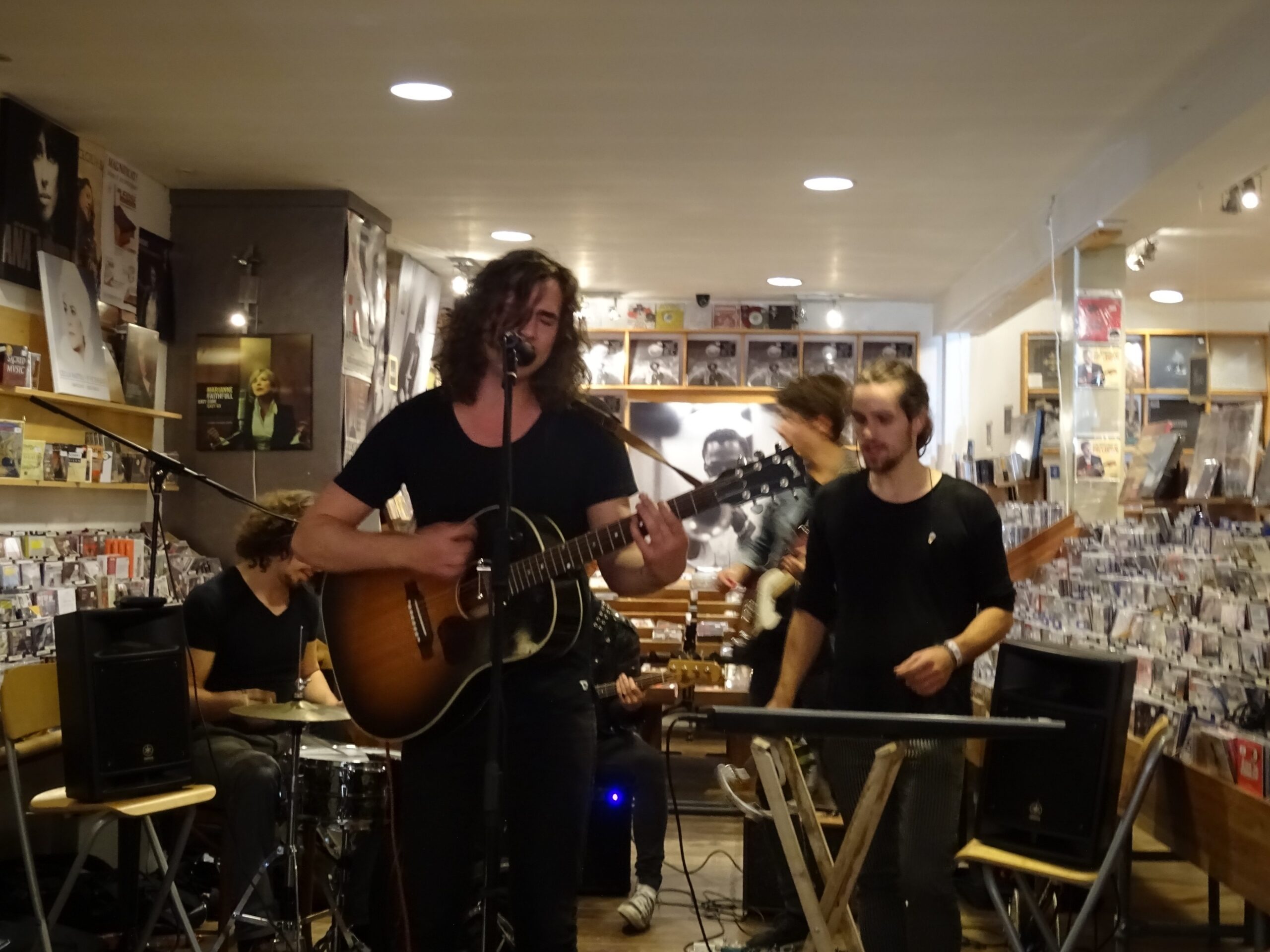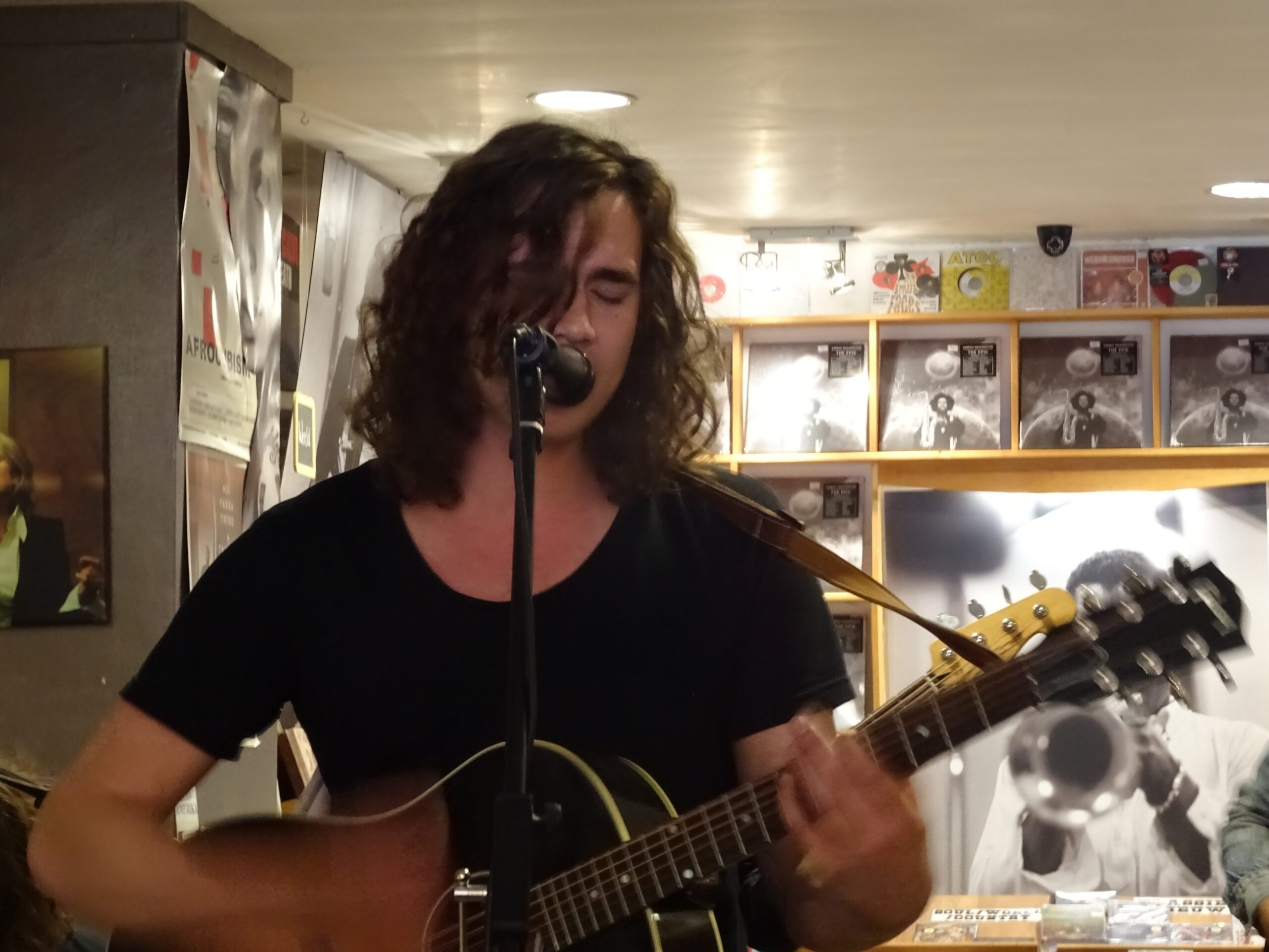 Het was gezellig druk in de Leidse platenzaak, wat Lucas Hamming direct goed leek te doen. “Nou wat gezellig!”, spreekt hij tot het publiek na de nieuwe single “Never Let You Down” gespeeld te hebben. De 21-jaar jonge zanger staat als een stuiterbal op het podium en weet het publiek in de knusse platenzaak goed met zich mee te krijgen.