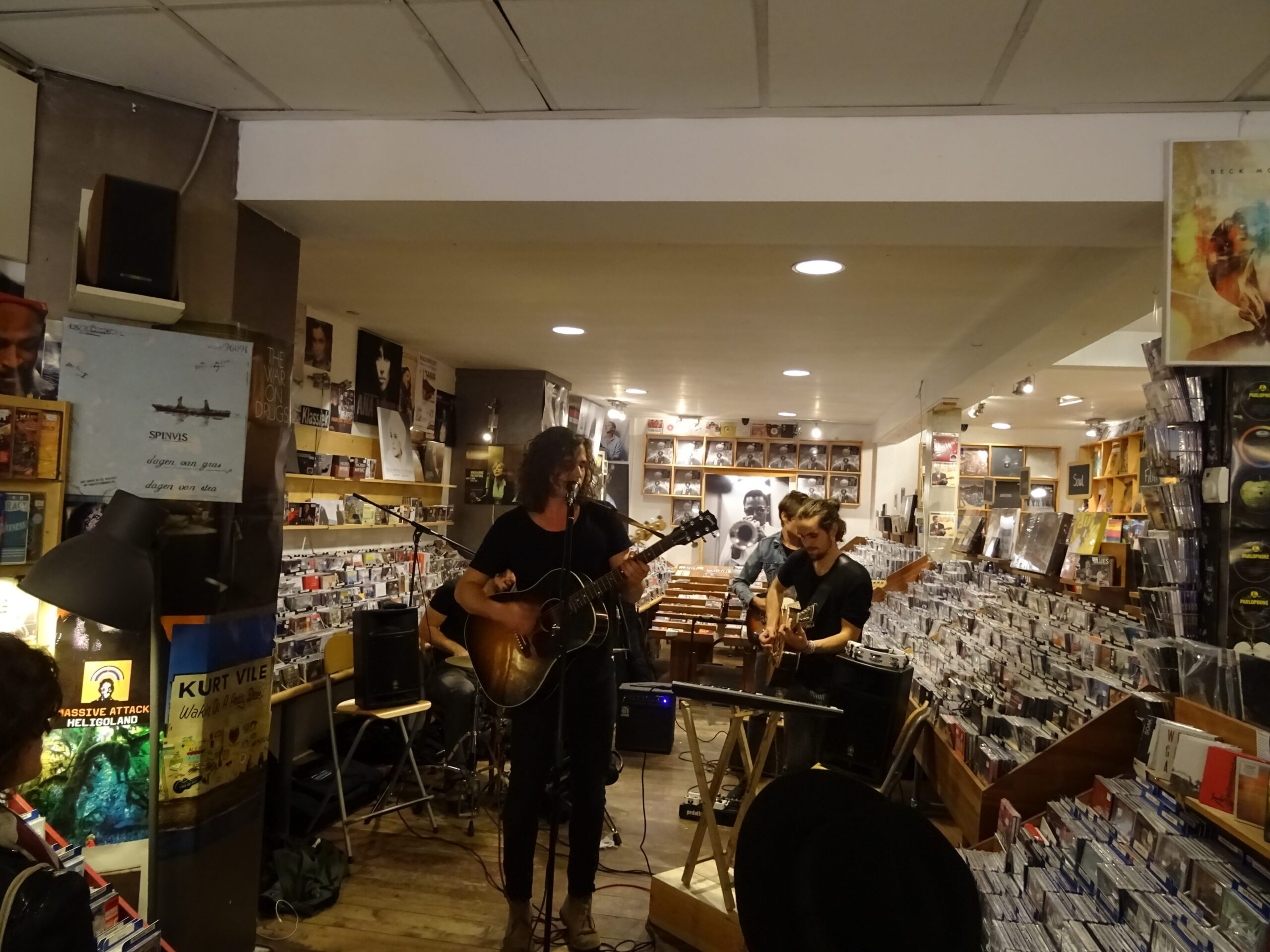 Halverwege het korte in-store optreden, vertelt Hamming dat zijn vader (die de band normaal van hot naar her rijdt) ziek in bed ligt. Snel pakt hij zijn mobiel een vraagt het publiek even een boodschap op te nemen voor zijn pa. Hij richt zijn camera op de toeschouwers, “ik tel tot drie en dan zeggen jullie allemaal ‘beterschap’, okay?”