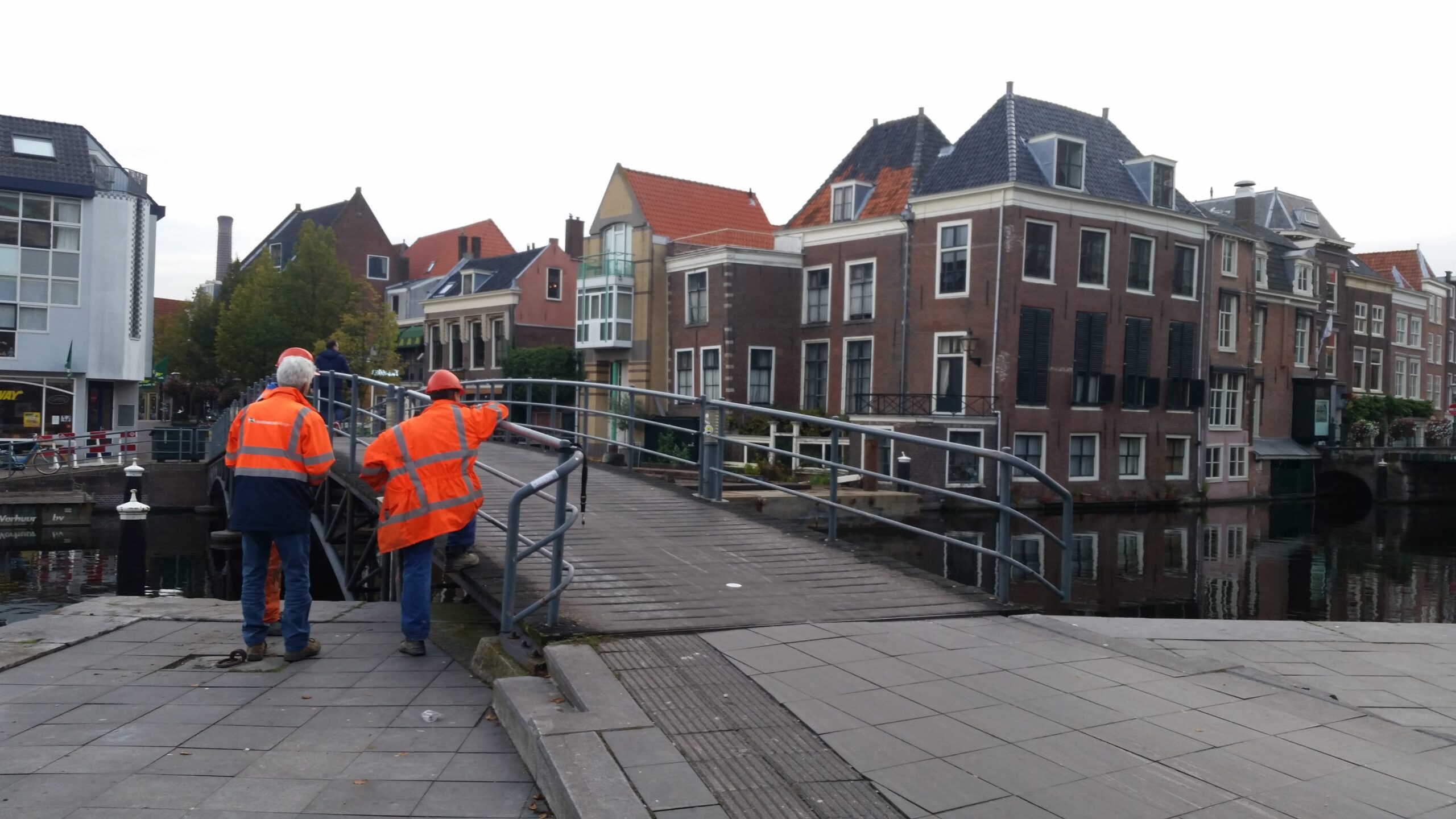 Wethouder Laudy in gesprek met Chris de Waard over de oude, de nieuwe en de tijdelijke brug.