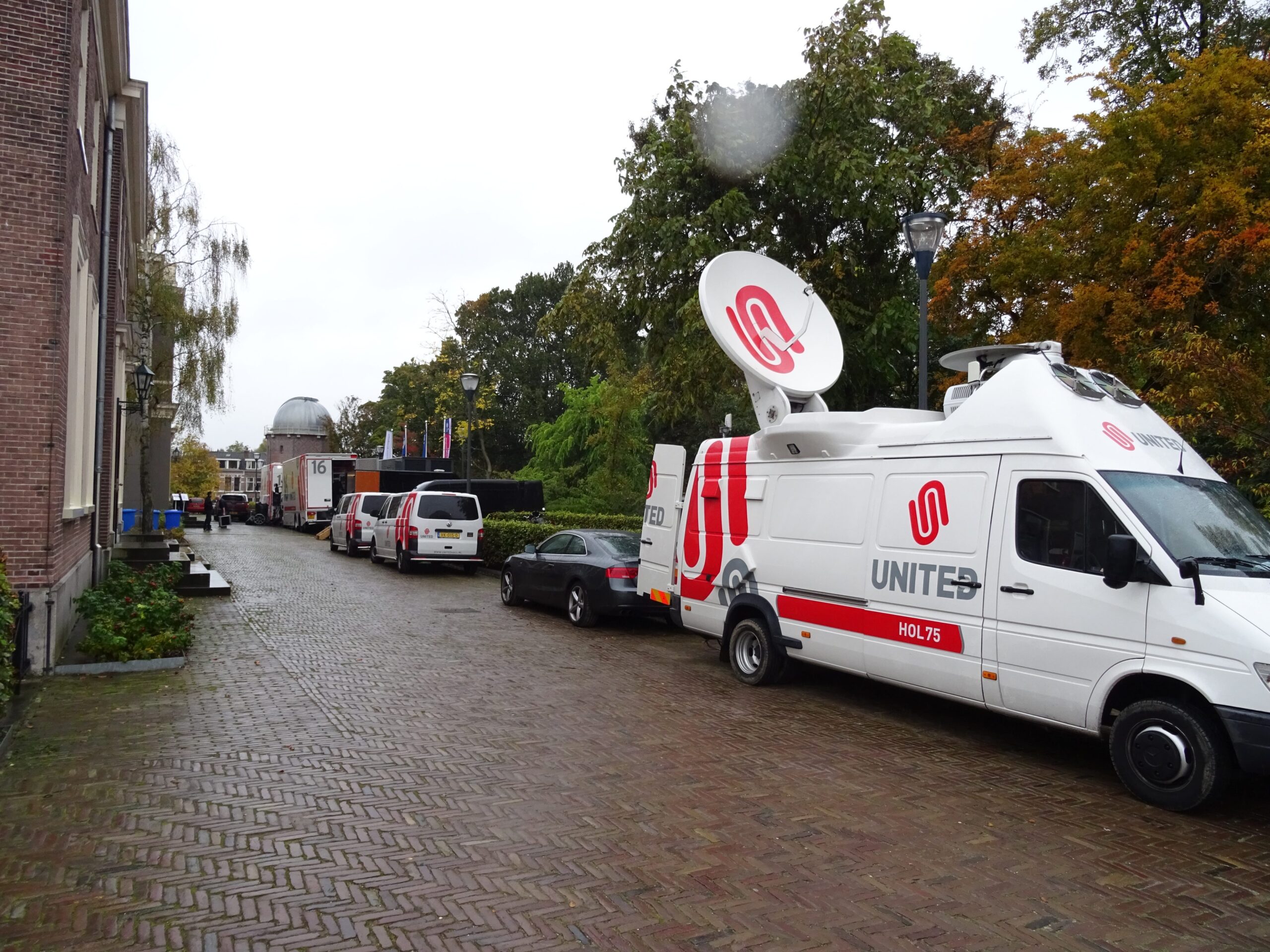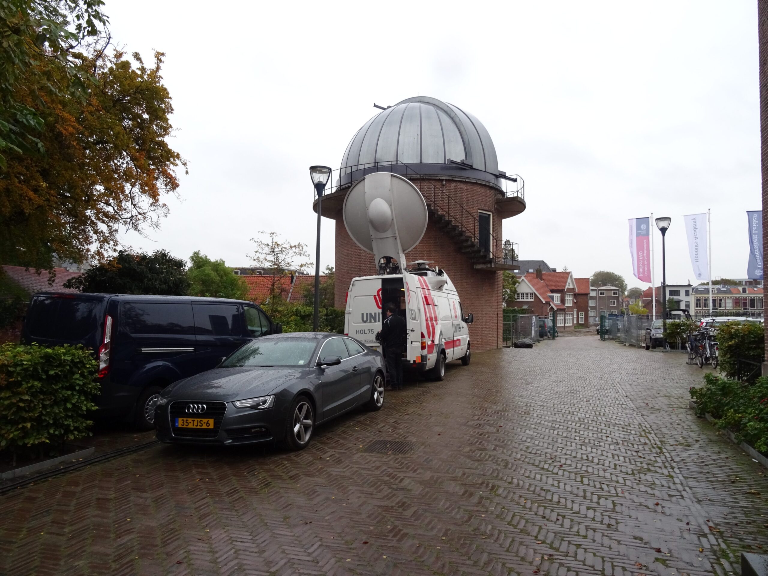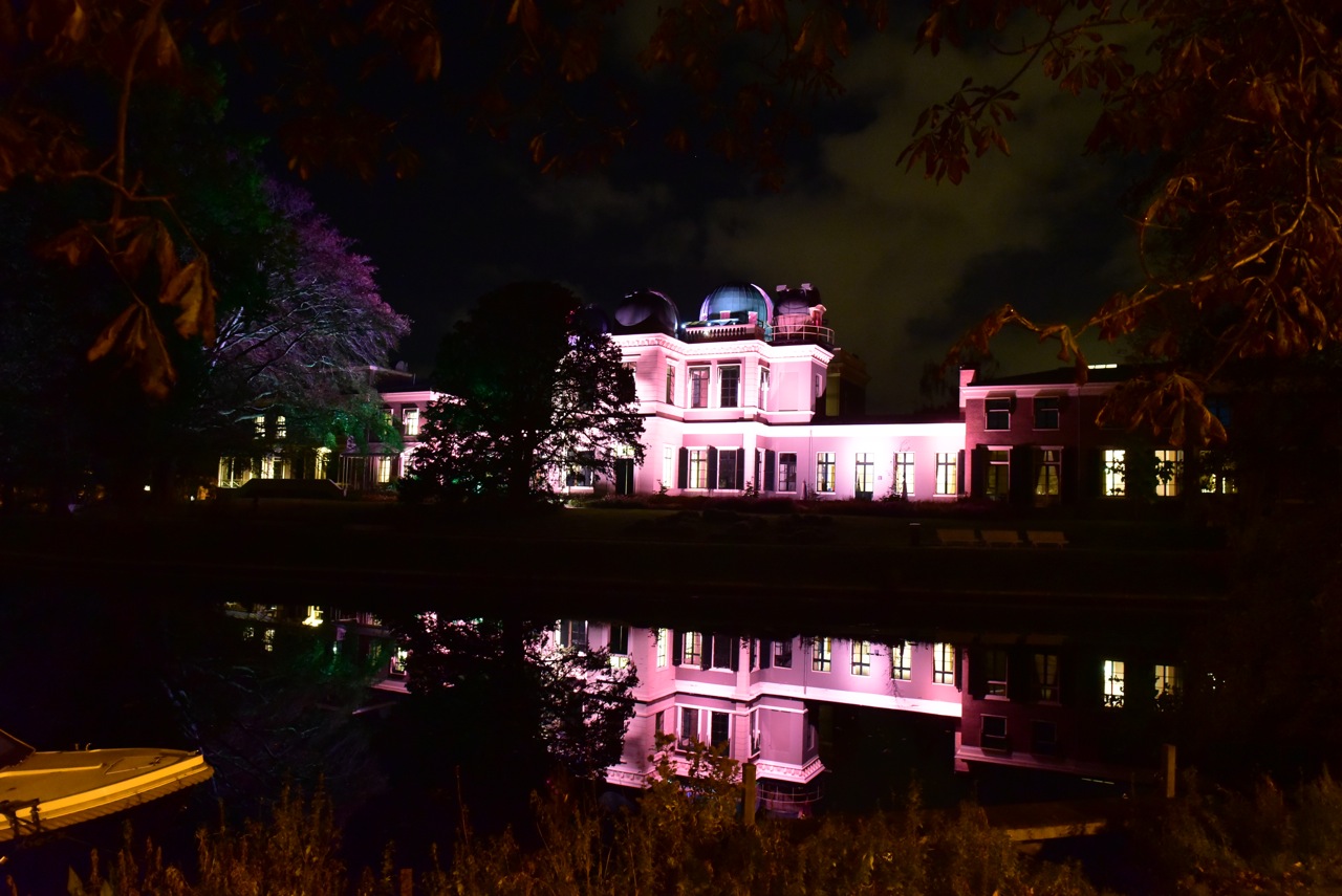 De Oude Sterrewacht Leiden is sinds vanavond prachtig aangelicht. De Sterrewacht bij daglicht van dichtbij bekijken kan aanstaande zondag. Dan wordt er een open dag gehouden tussen 12.00 uur en 17.00 uur. Het publiek kan dan, bijgestaan door de leden van de Werkgroep Leidse Sterrewacht, door de antieke sterrenkijkers kijken en met de gloednieuwe zonnetelescoop zonnevlekken waarnemen.