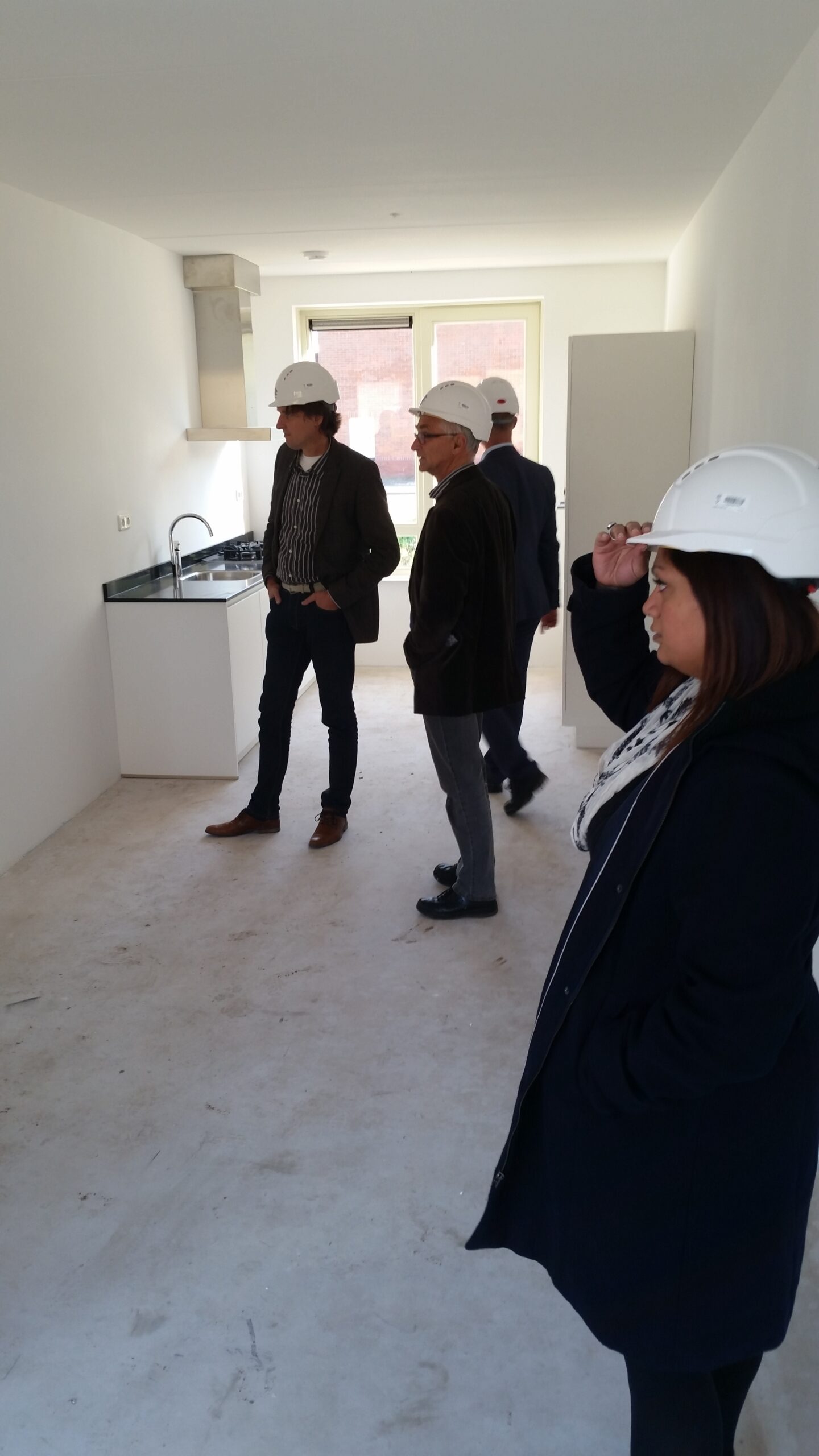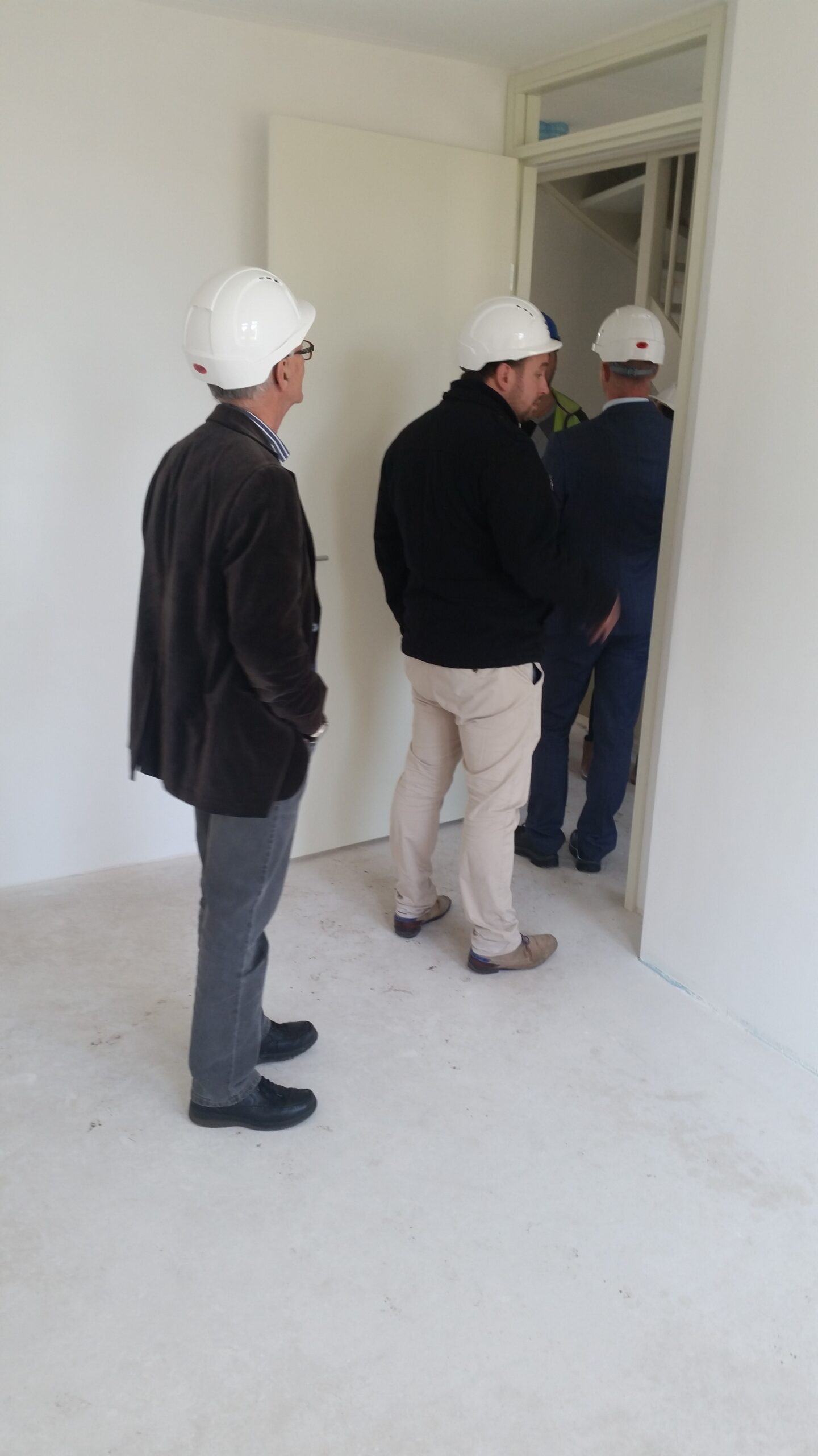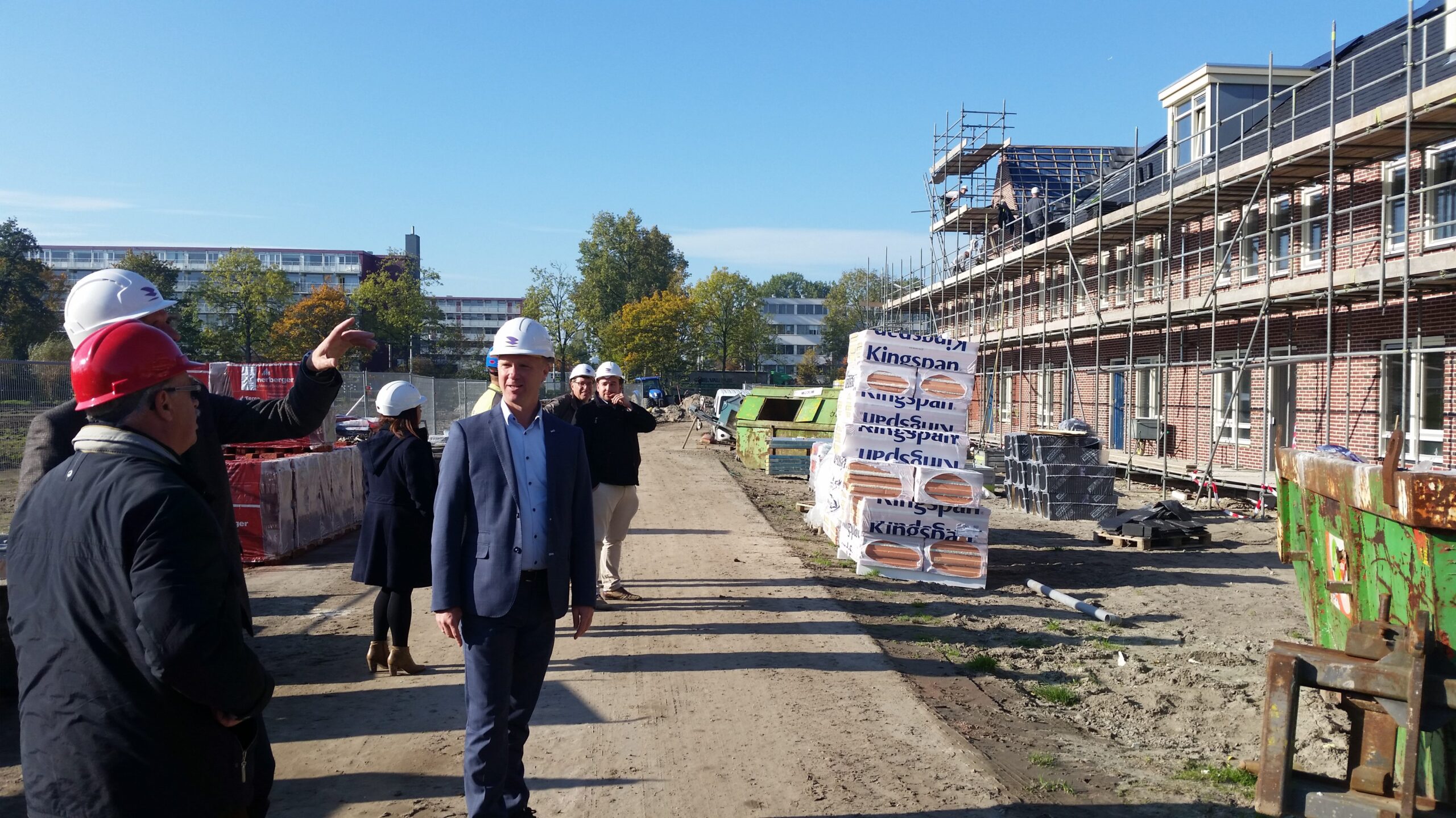 Een delegatie van Woningbouwvereniging Beter Wonen uit Goedereede kwam vanmorgen op werkbezoek in Leiden. Het bestuur van de corporatie nam een kijkje bij de nieuwe wijk die momenteel in ontwikkeling is tussen de Boshuizerkade en de Churchilllaan. Op zoek naar ‘nul-op-de-meter-woningen’ lieten ze zich inspireren en voorlichten over de conceptwoningen die ERA Contour daar bouwt in opdracht van Amvest.