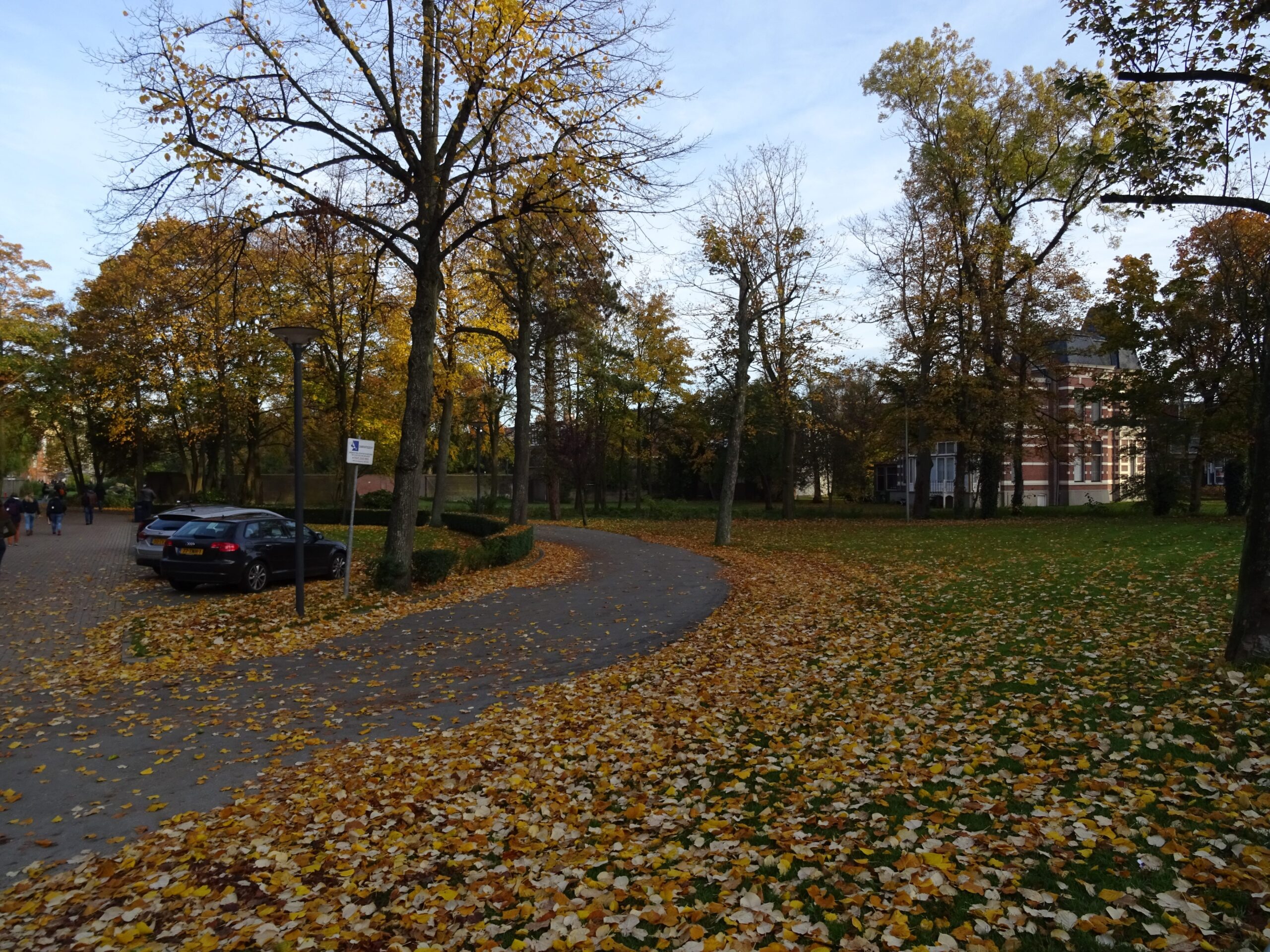 Een blik vanaf perron 8 op de plek waar het nieuwe busstation moet komen. Links het Poortgebouw van het LUMC.