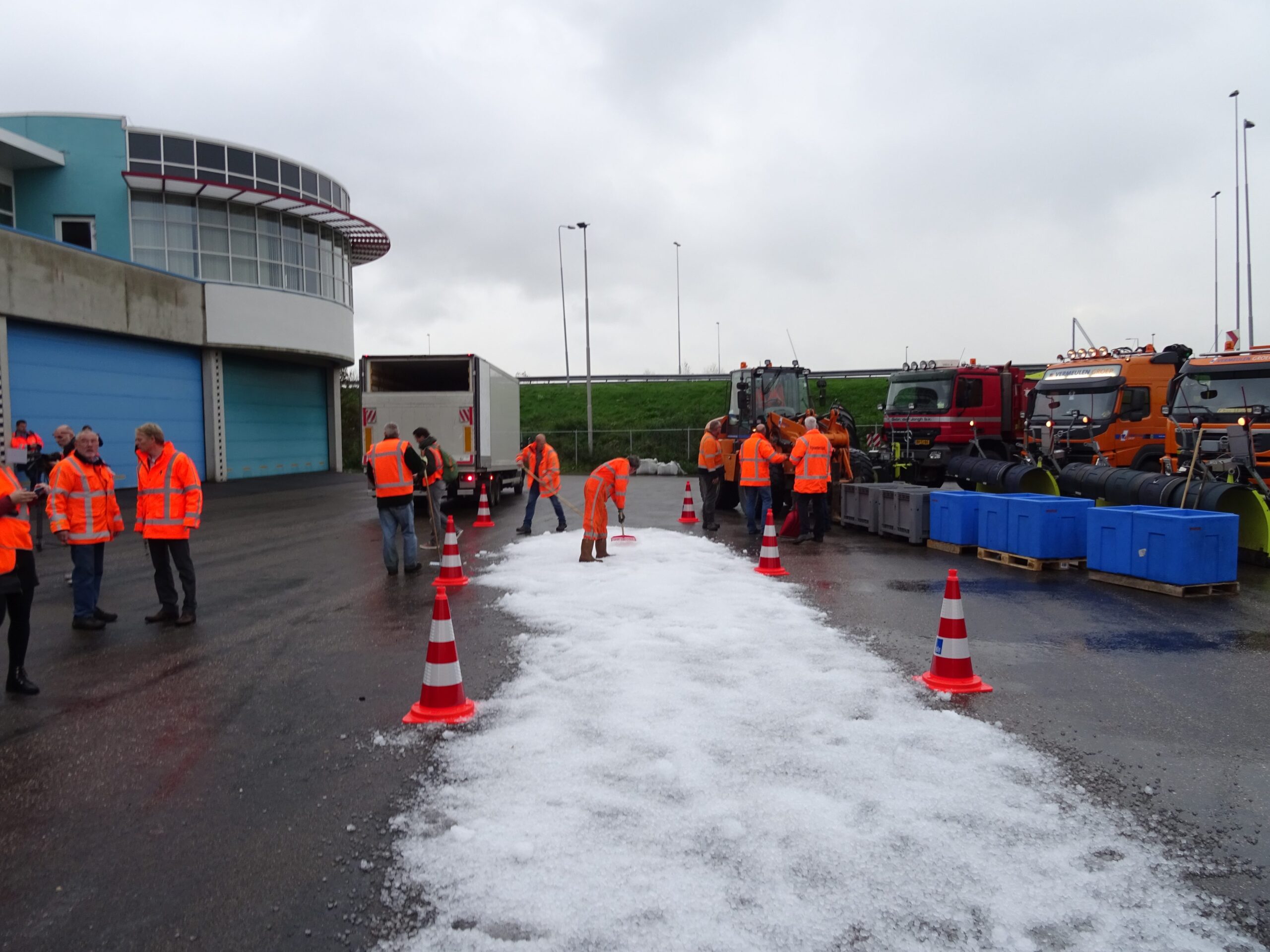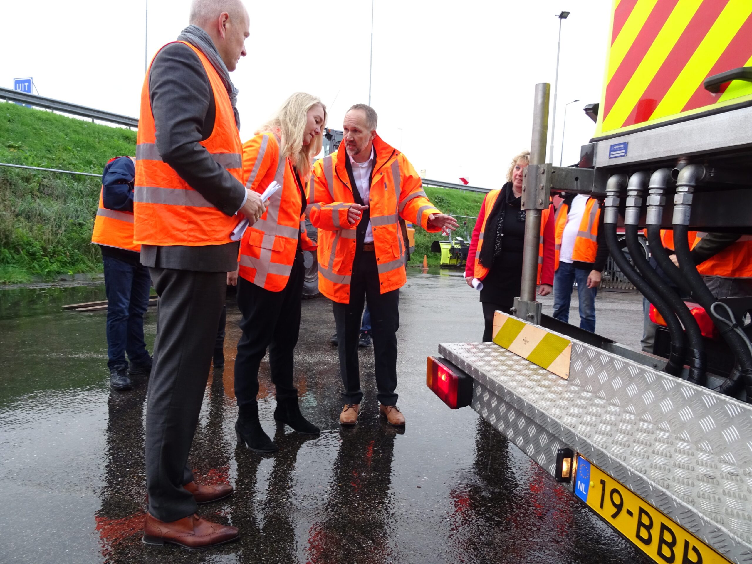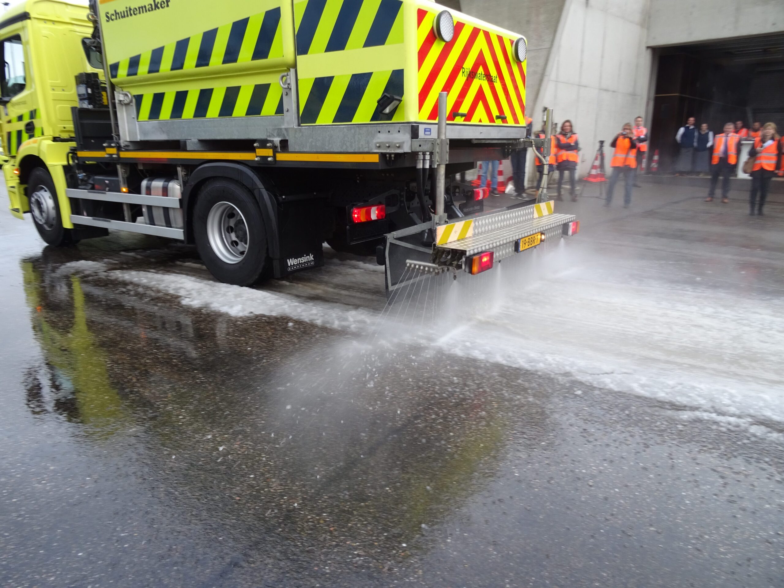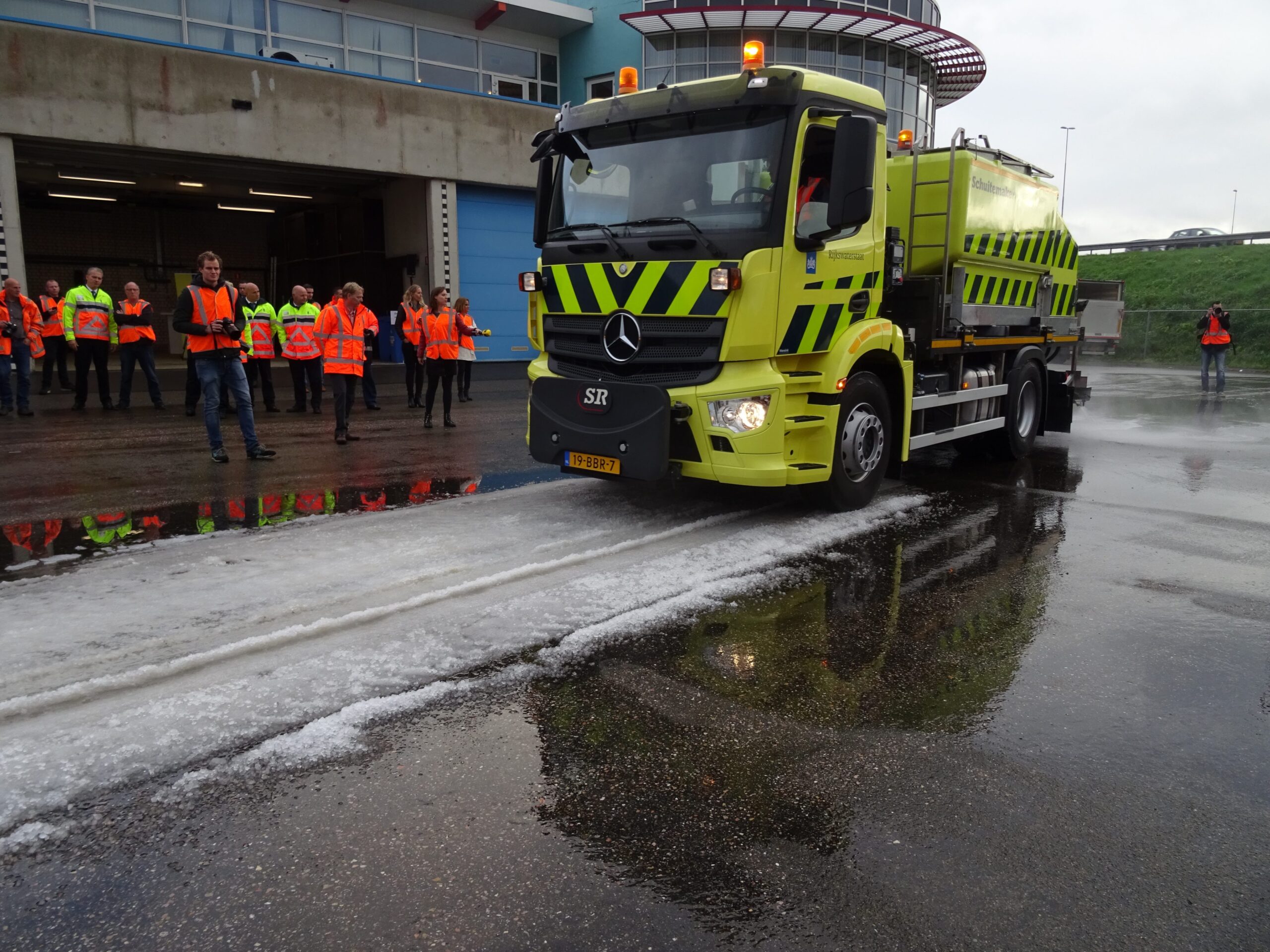 Vanmorgen heeft minister Melanie Schultz (VVD, Infractructuur en Milieu) op het terrein van Rijkswaterstaat bij de N11 twee nieuwe ‘calamiteitenmachines’ van Rijkswaterstaat geïntroduceerd. Met de Firestorm en de Filesproeier wordt de gladheid de komende winter op twee nieuwe manieren bestreden. De Firestorm sproeit warm pekelwater op de gladde wegen, de filesproeier kan twee rijbanen breed onder auto’s door sproeien. Bijvoorbeeld vanaf de vluchtstrook bij files.