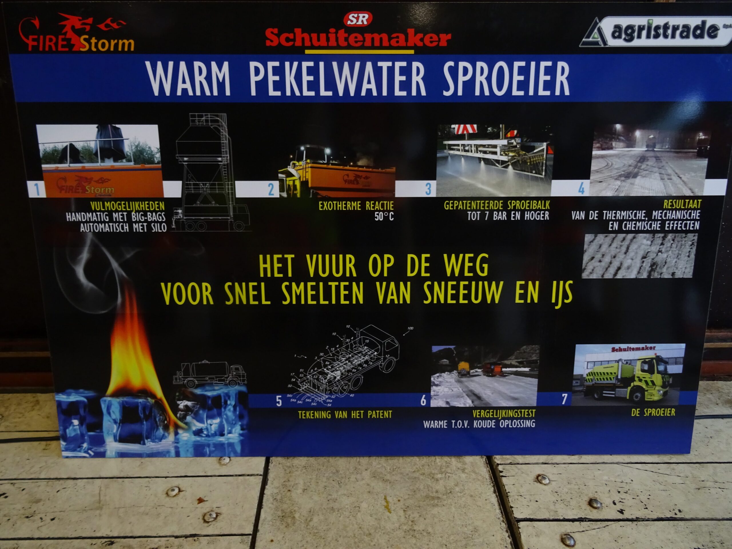 Bij de filesproeier gaat het om een prototype dat de komende wintermaanden in praktijk getest gaat worden. De Firestorm is een machines die in Italië en Oostenrijk al in gebruik is. In die alpenlanden zijn de snelwegen echter vaak van beton, in ons land van ZOAB (zeer open asfalt beton). Het was nog even de vraag of het warme pekelwater niet te snel in het wegdek zou zakken, maar proeven wijzen uit dat dat niet het geval is.