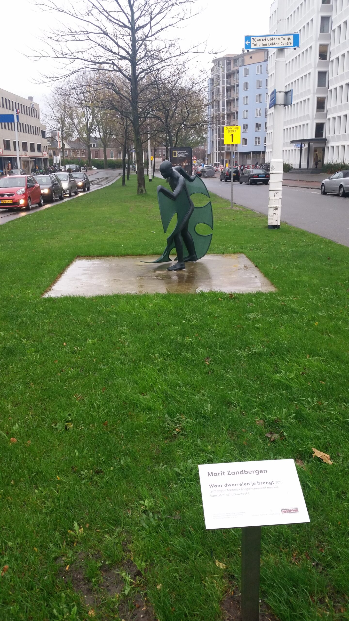 Het beeld ‘Waar dwarrelen je brengt’ is onthuld op het Schuttersveld. Het kunstwerk stond eerst op de Hooglandse Kerkgracht, in verband met de openluchttentoonstelling ‘Beelden in Leiden’. Businessplatform Schipholweg, de ondernemersvereniging van de Schipholweg, heeft het beeld gekocht van Zwolse kunstenares Marit Zandbergen.