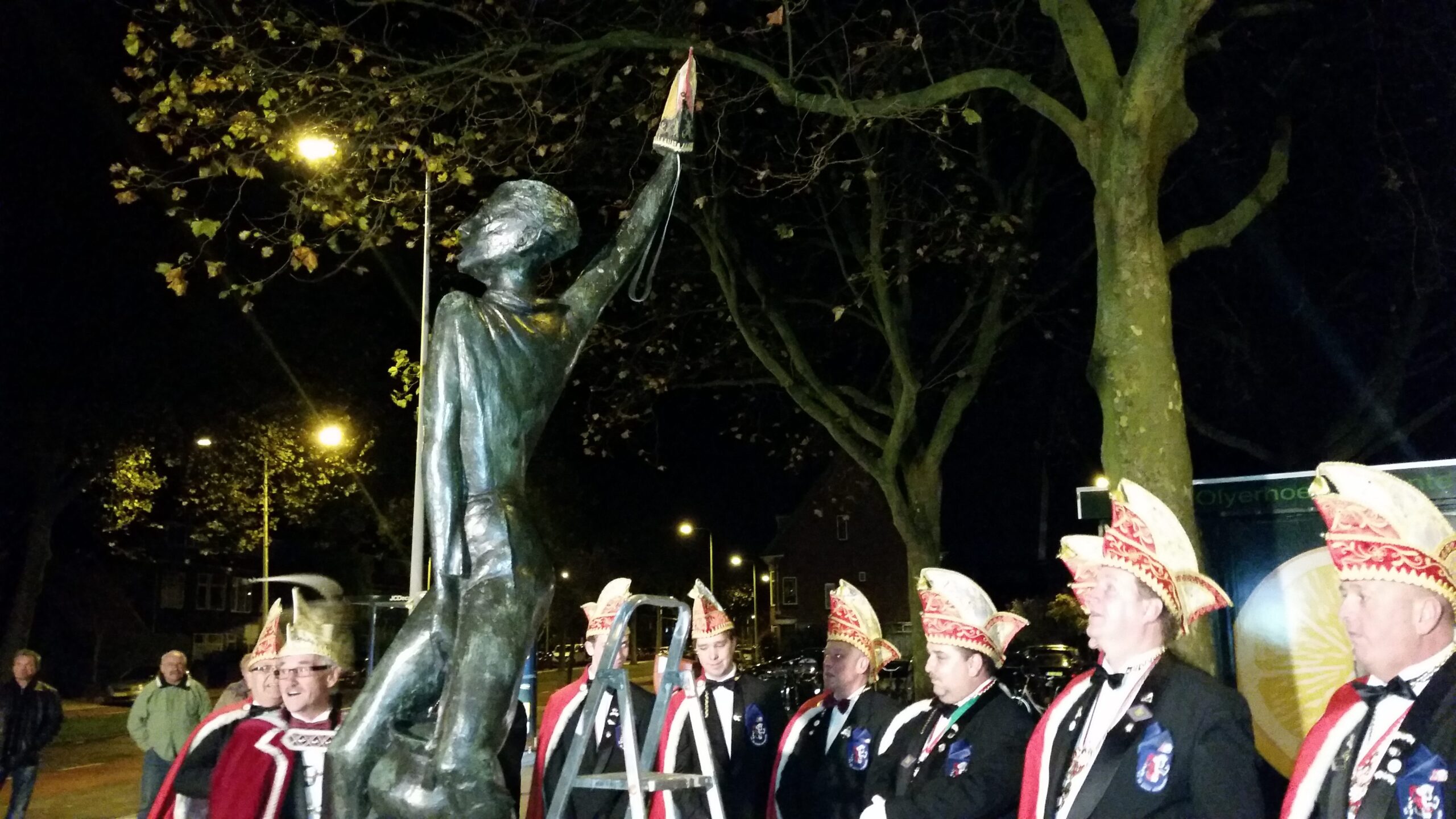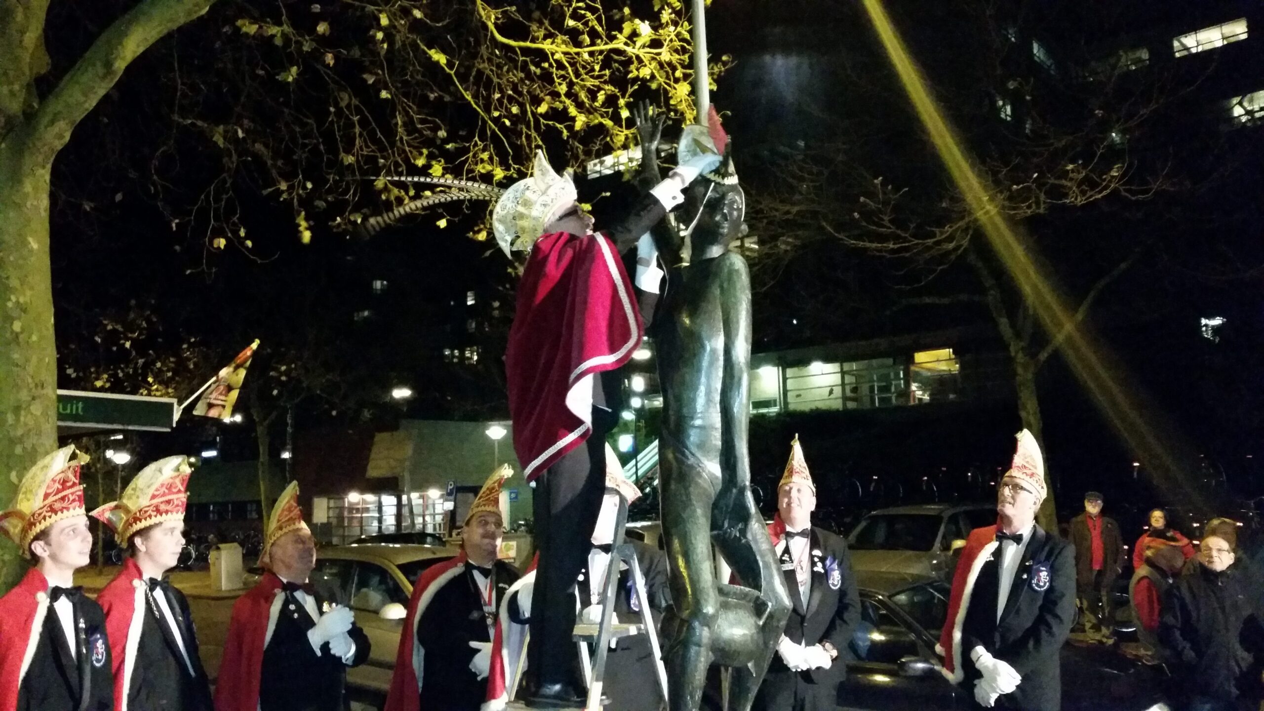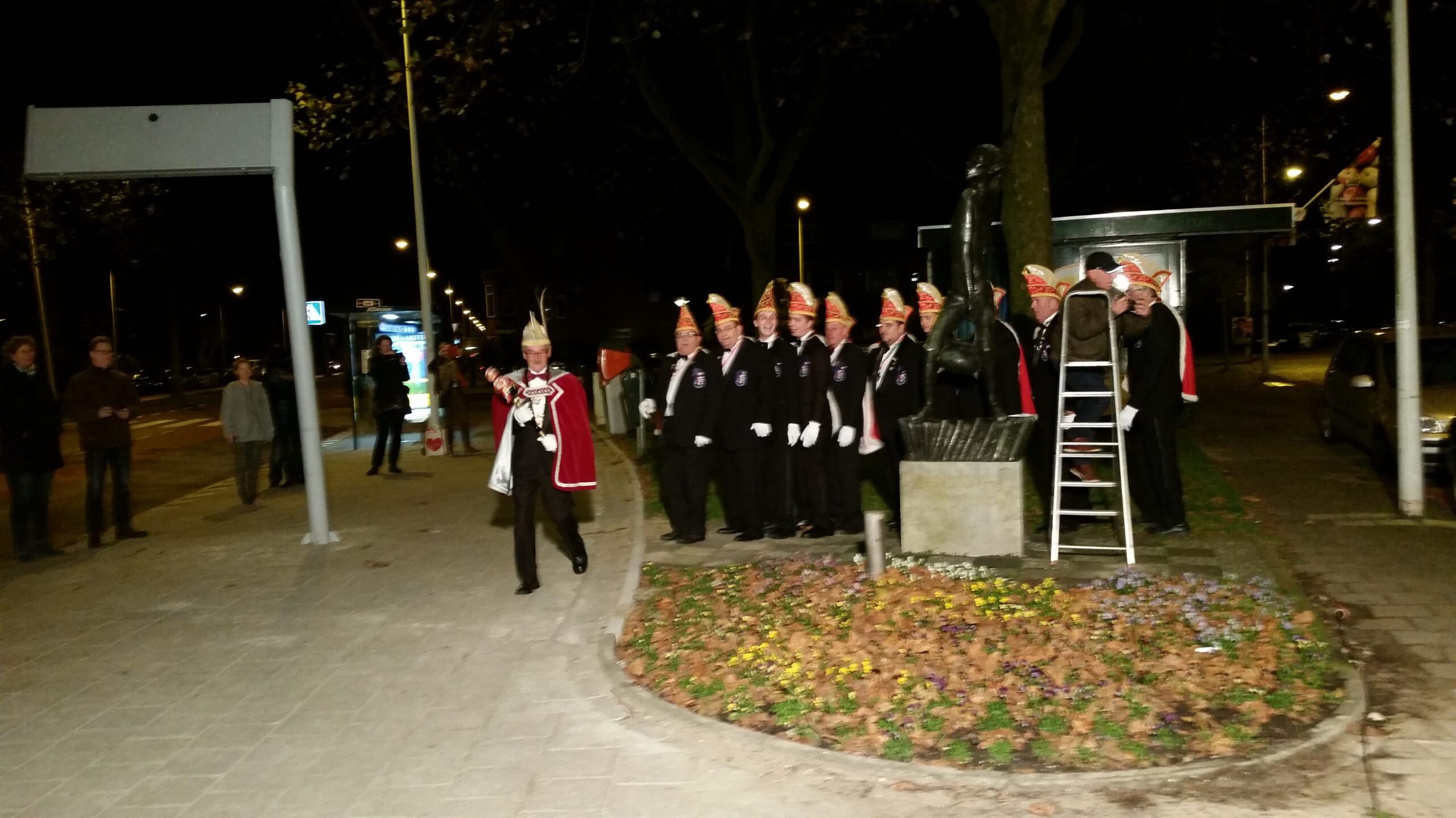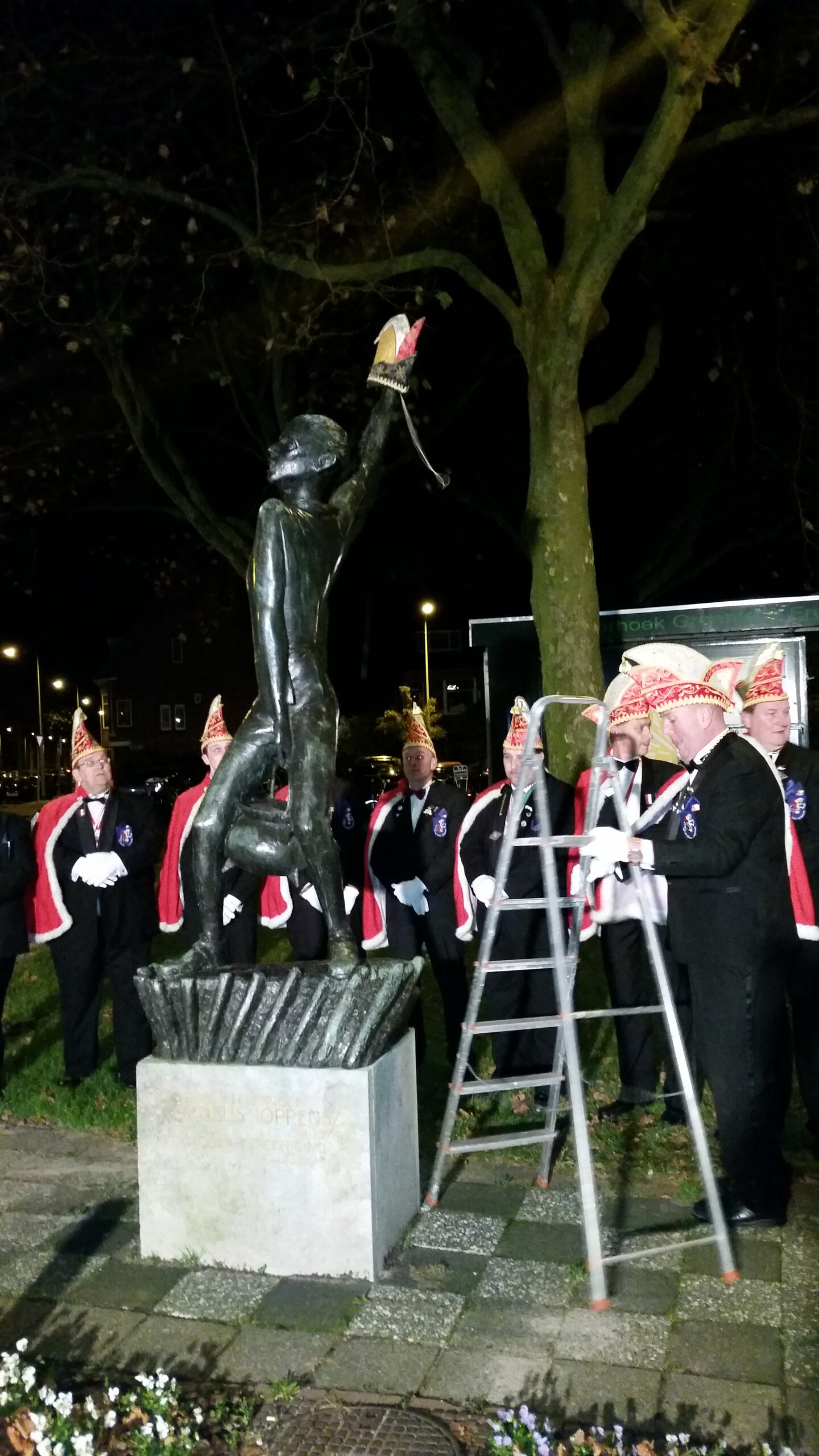 De Leidse carnavalsvereniging De Hutspotten heeft gisteravond om elf over elf het carnavalsseizoen 2015/2016 geopend bij het beeldje van Cornelis Joppensz dat voor station Leiden Lammenschans staat. Het was voor de 43e keer dat Joppensz een steek op het hoofd kreeg gezet. Althans, dat was de bedoeling. Omdat het elastiekje knapte, werd de steek om de hand van Joppensz gehangen. De sfeer was er niet minder om.