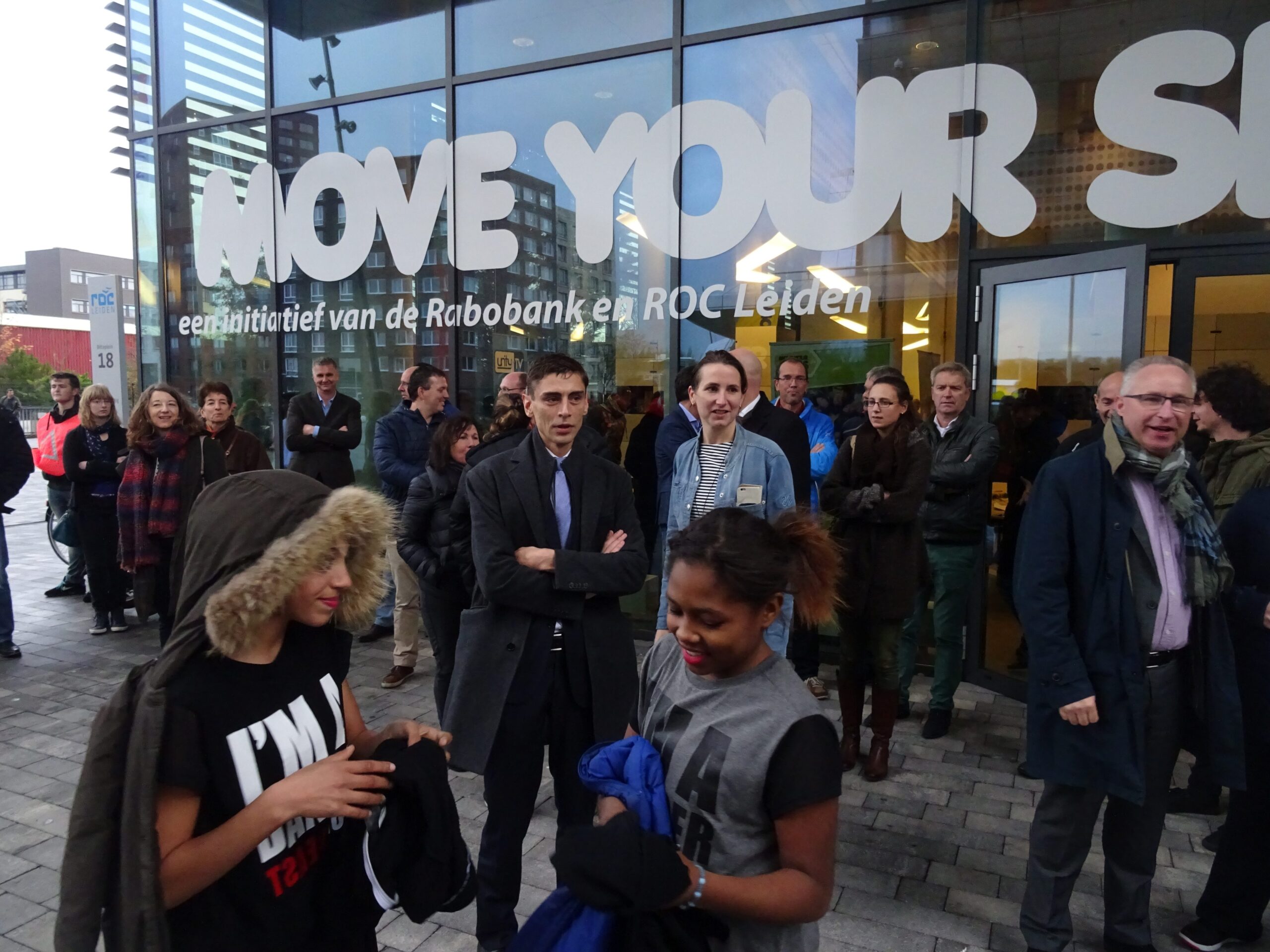 Het plein werd geopend met een dansdemonstratie door leerlingen van het Da Vinci College. Daarna volgde een openingswoord van Laudy en de directeuren van het ROC en het Da Vinci College. Ook de leerlingen van het ROC Leiden zaten niet stil. Zij namen de catering voor hun rekening.
