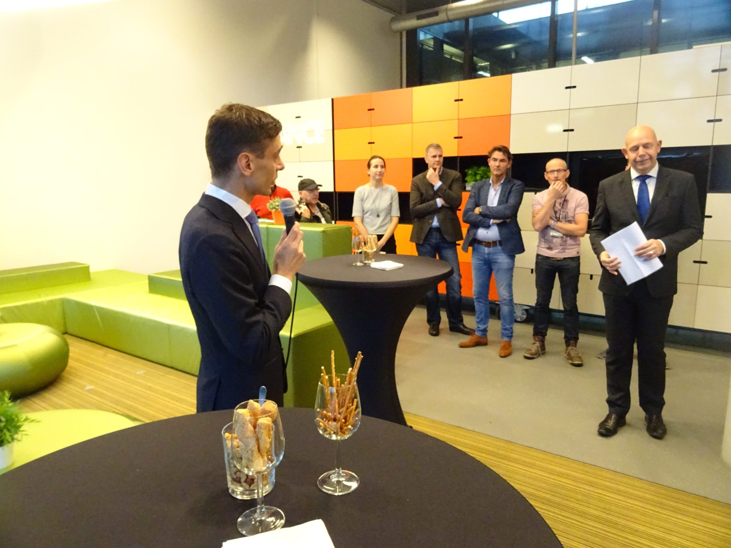 Chris de Waard was bij de opening van de eerste fase van het Bètaplein. Hij sprak er met wethouder Paul Laudy over.