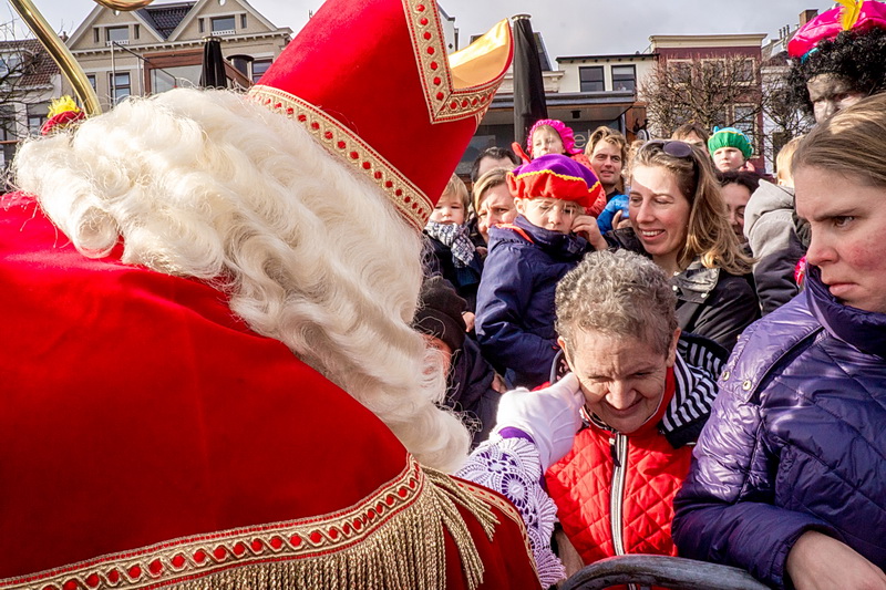 Het was mooi weer (pas later ging het regenen). Er werd gezongen, gedanst, meegedeind. Het was een feest. Dat vonden de politieagenten ook: “wat wel anders is, is dat de kinderen nu vooral aandacht hebben voor de pieten, terwijl ze meestal ons en ons uniform leuk vinden. Dat is wennen”. Dat er iets minder mensen waren dan andere jaren kwam misschien wel doordat ouders dachten dat het héél slecht weer zou zijn. Dat viel dus mee. En eerlijk gezegd leek ook Sinterklaas dat te hebben gedaan. Toen hij op het Stadhuisplein de trap af kwam, liep hij onder een paraplu aan een heel lange steel. Maar het was droog!