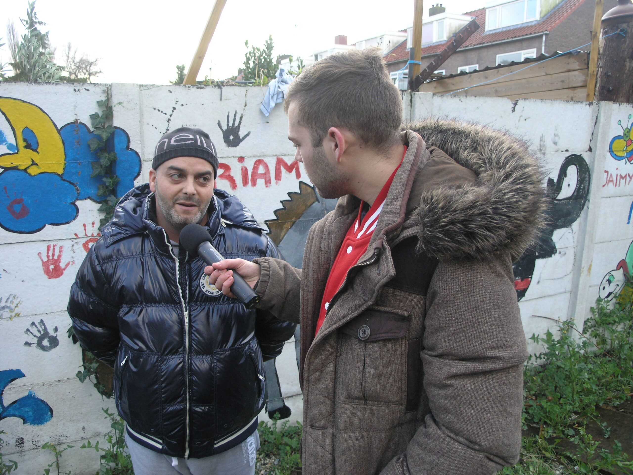 Siem van der Salm ging in gesprek over de speelplaats met wethouder Marleen Damen en een buurtbewoner.