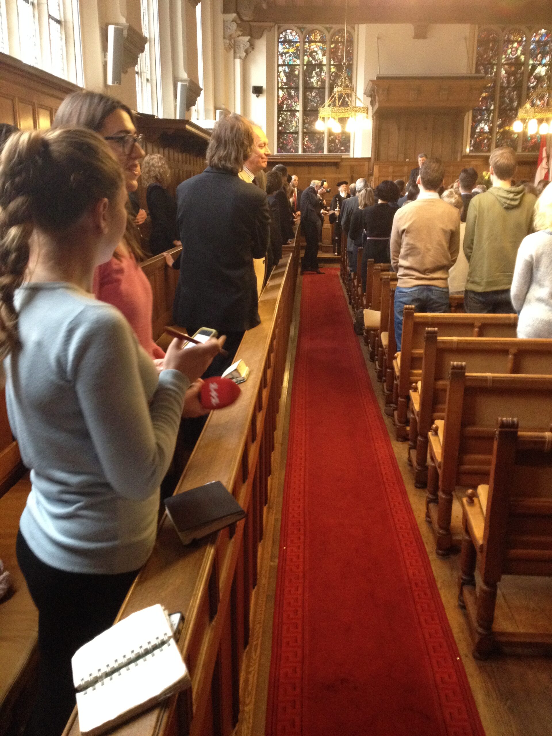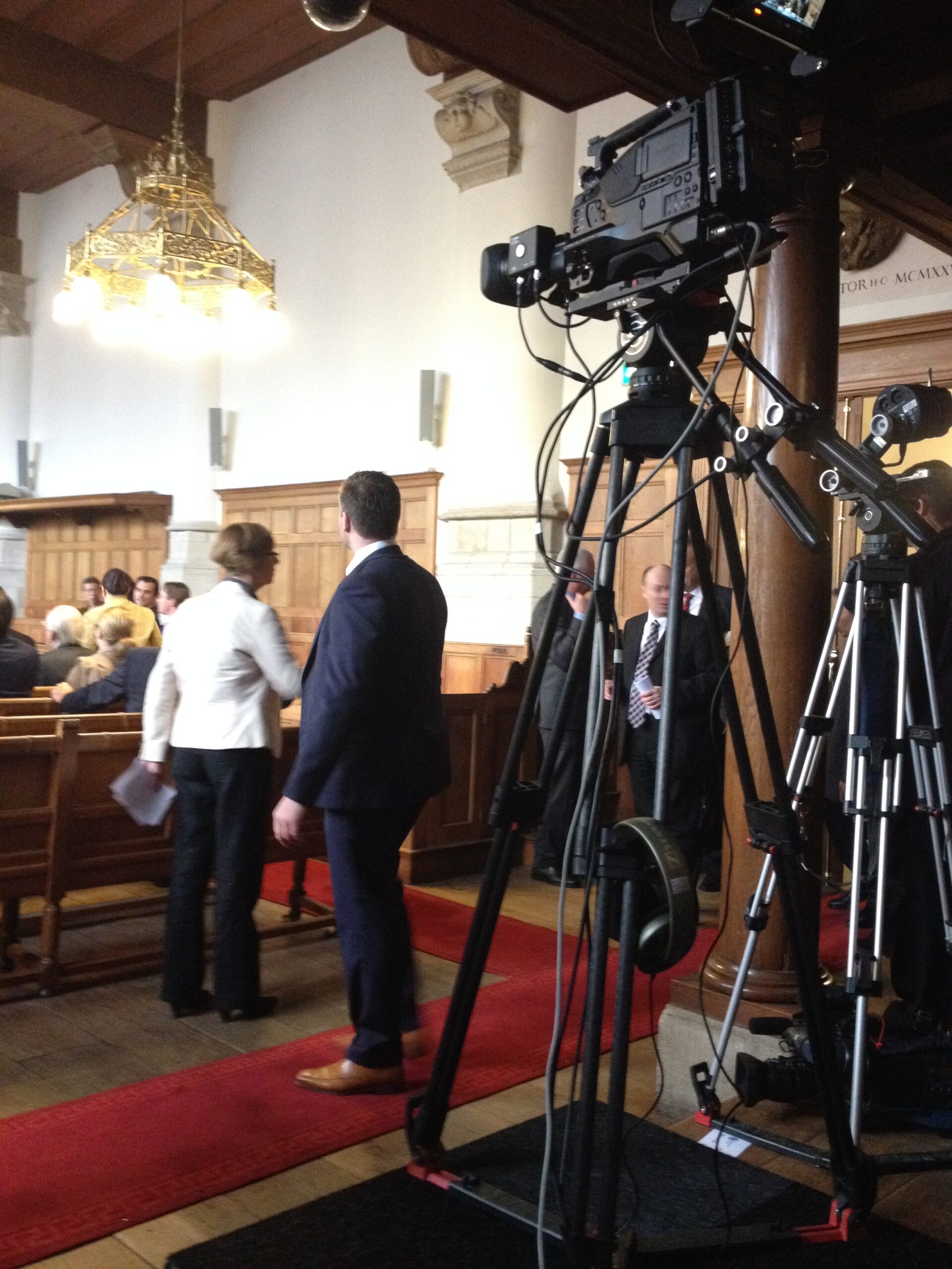 De aandacht voor de woorden van Poroshenko was groot: niet alleen een geheel ‘uitverkocht’ Groot Auditorium, maar ook veel media-aandacht; zeker ook uit Oekraïne zelf. Oekraïense media die overigens niet veel nieuws hoorden: “Onze president probeert de situatie aan Europa duidelijk te maken”. Na afloop probeerden die media de rector van de Katholieke Universiteit van Oekraïne met Baudet in gesprek te laten gaan. Maar het solidariteits-argument leek op dorre grond te vallen. In een publiek bekeken debat lijkt de combinatie Roos-Baudet zich minder gemakkelijk te voelen. De door de universiteit ingeschakelde NFGD streamde de toespraak via het Internet naar zo’n 5.000 (inter)nationale mee-kijkers.
