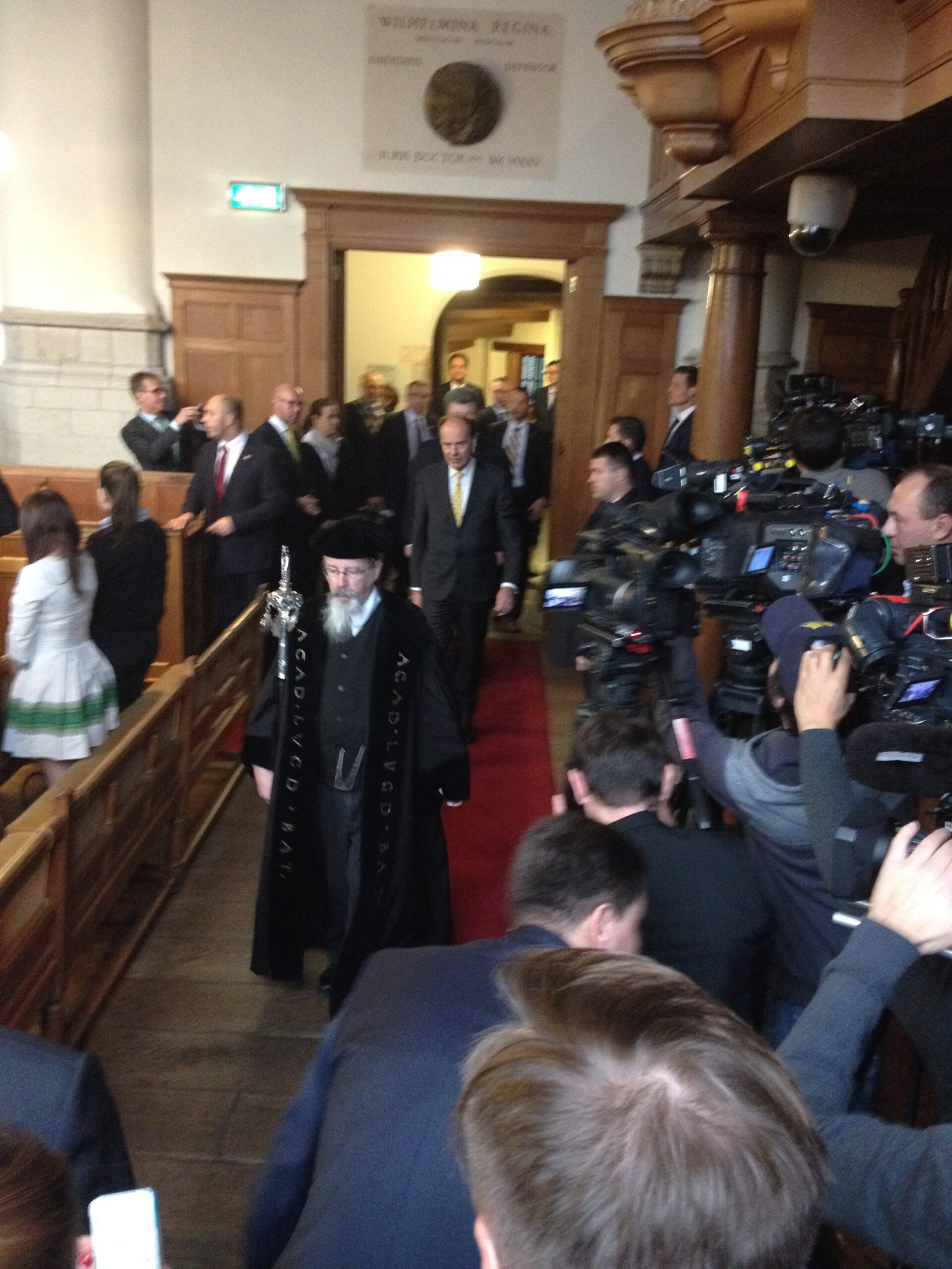 Alhoewel omgeven door veel politie en veiligheidsmensen en -maatregelen waren er geen extra veiligheidsmaatregelen getroffen, anders dan die bij een bezoek van dit kaliber – een staatshoofd – past: detectiepoortjes, strikte instructies – die de Oekraïense pers overigens gladjes negeerde. Hoofd Beveiliging van de universiteit, de heer Morsman, kan tevreden terug kijken. “De politie heeft de eindverantwoordelijkheid”, maar toch.