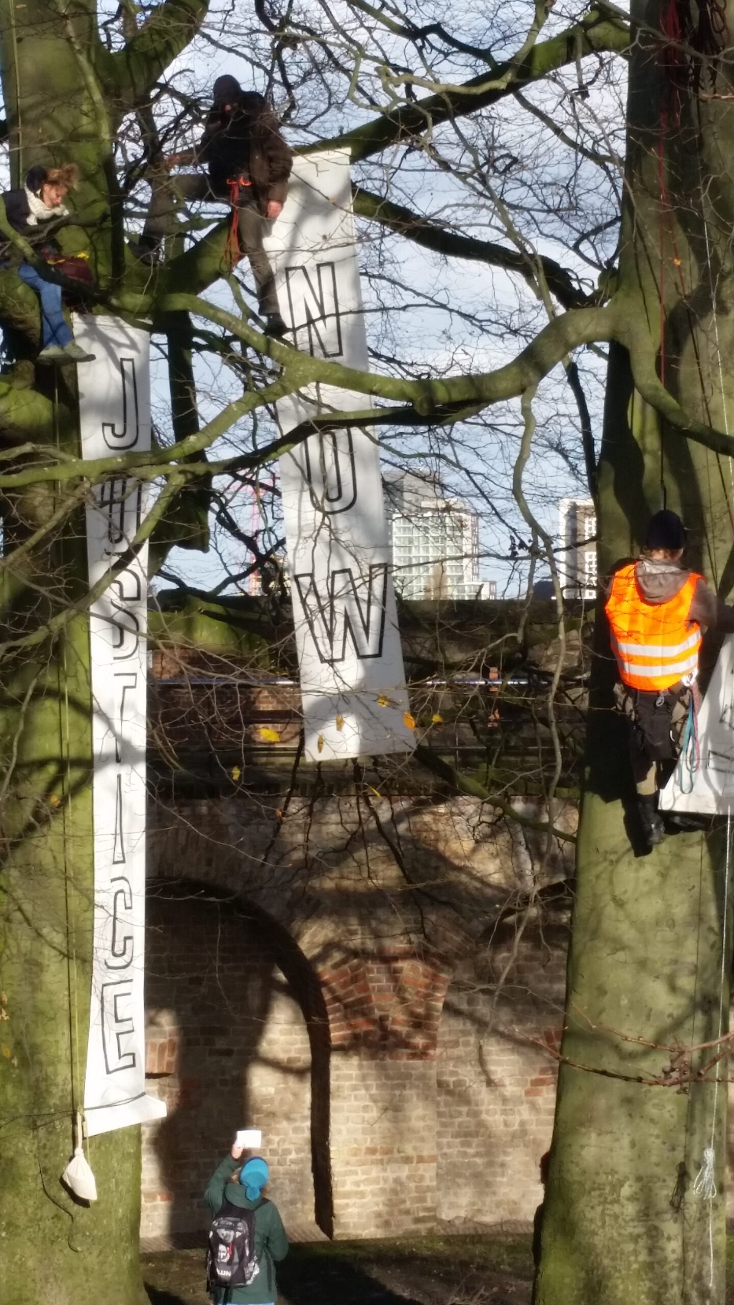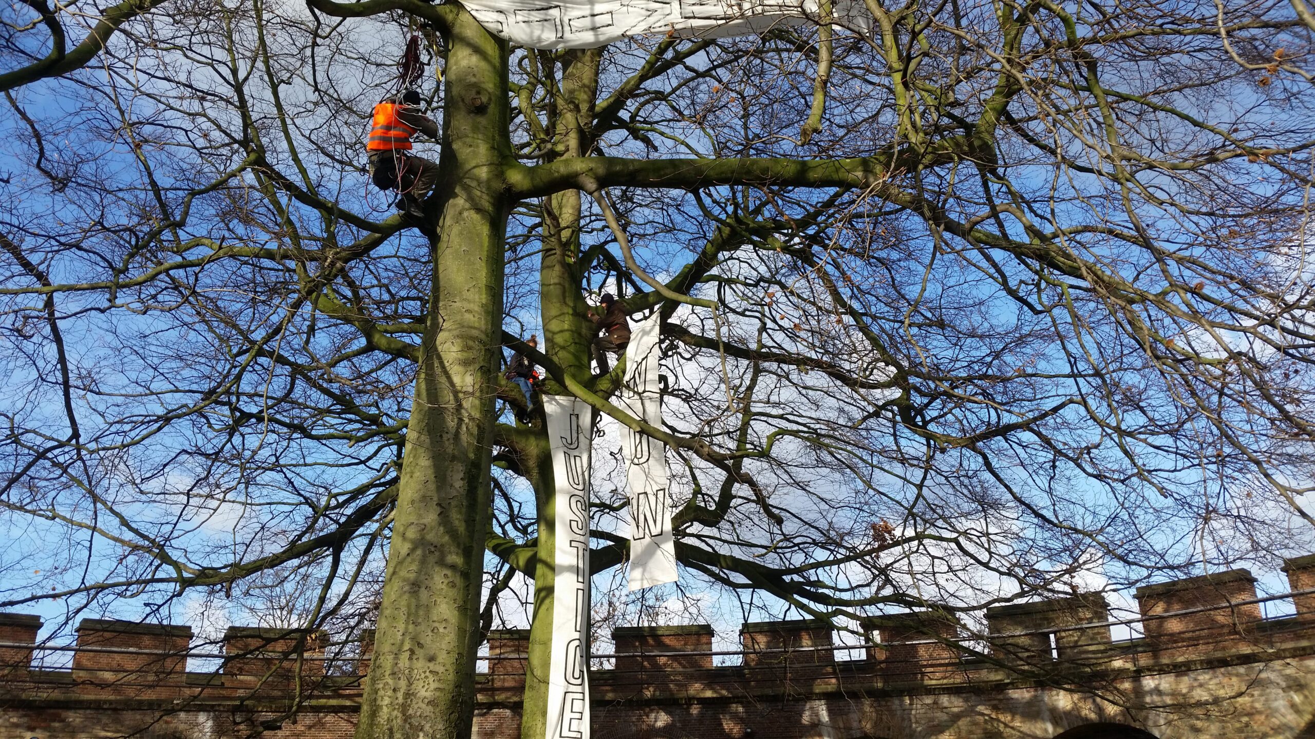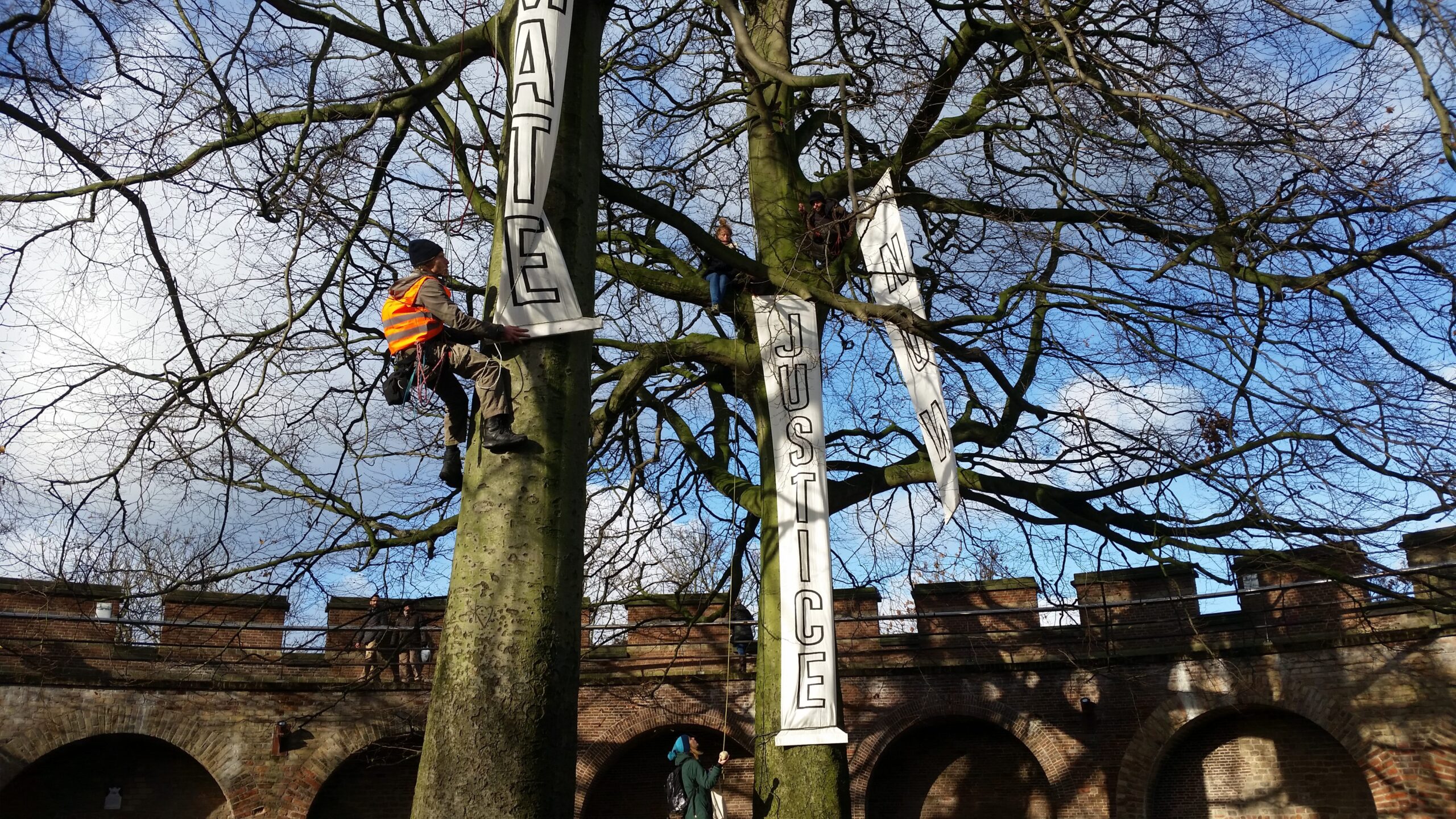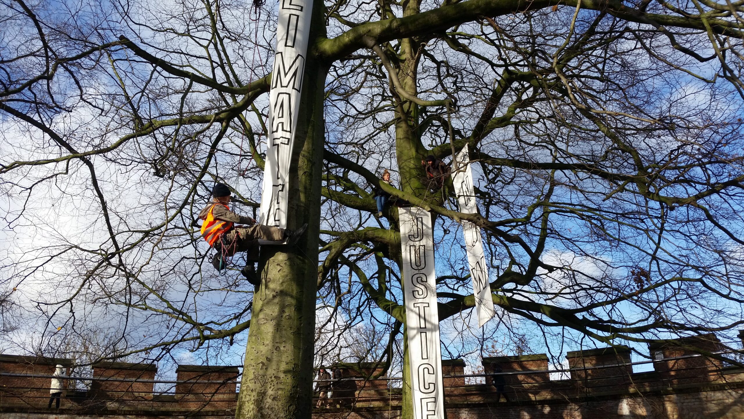Leidse klimaatactivisten hebben aan het eind van de ochtend de Burcht symbolisch als vluchtheuvel in gebruik genomen. In de bomen bij de Burcht zitten drie klimmers met spandoeken waarop staat ‘Climate Justice Now’. Met de actie vragen zij aandacht voor de klimaatproblematiek. De activisten roepen iedereen op om op de Burcht te komen kijken, zich aan de uitgedeelde soep te warmen en een klimaatwens in de boom te hangen. De actie duurt van 12.00 uur tot 16.00 uur.