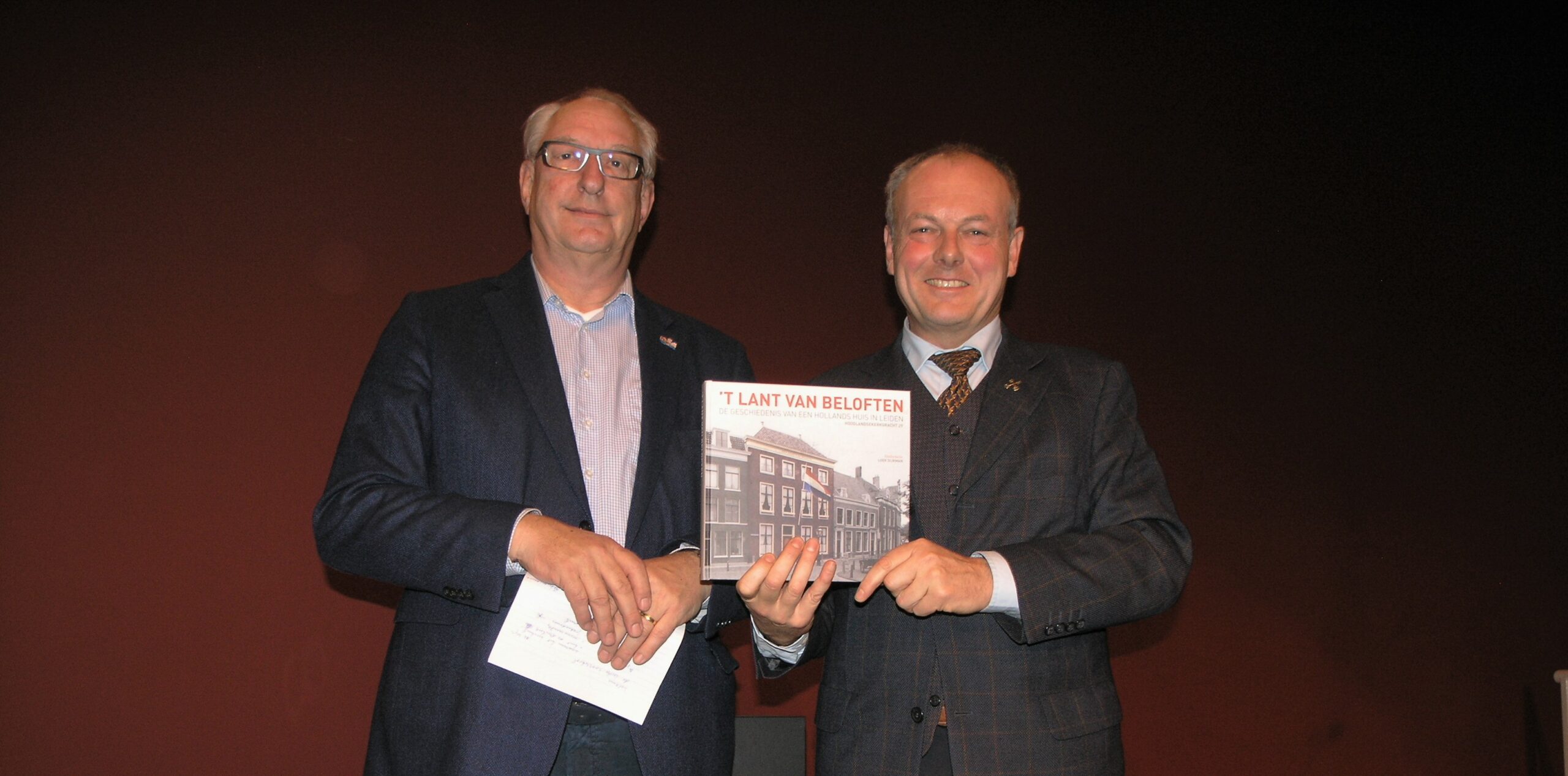 Het eerste exemplaar van ’t Lant van Beloften: de geschiedenis van een Hollands huis in Leiden is afgelopen vrijdagavond in het Kinderrechtenhuis overhandigd aan burgemeester Henri Lenferink. Voor het boek werd onderzoek gedaan naar de geschiedenis en de bewoners van het historische pand aan de Hooglandse Kerkgracht 29. “Dit gebouw heeft een groot deel van de vaderlandse geschiedenis meegemaakt”, aldus Loek Dijkman, eindredacteur van het boek.