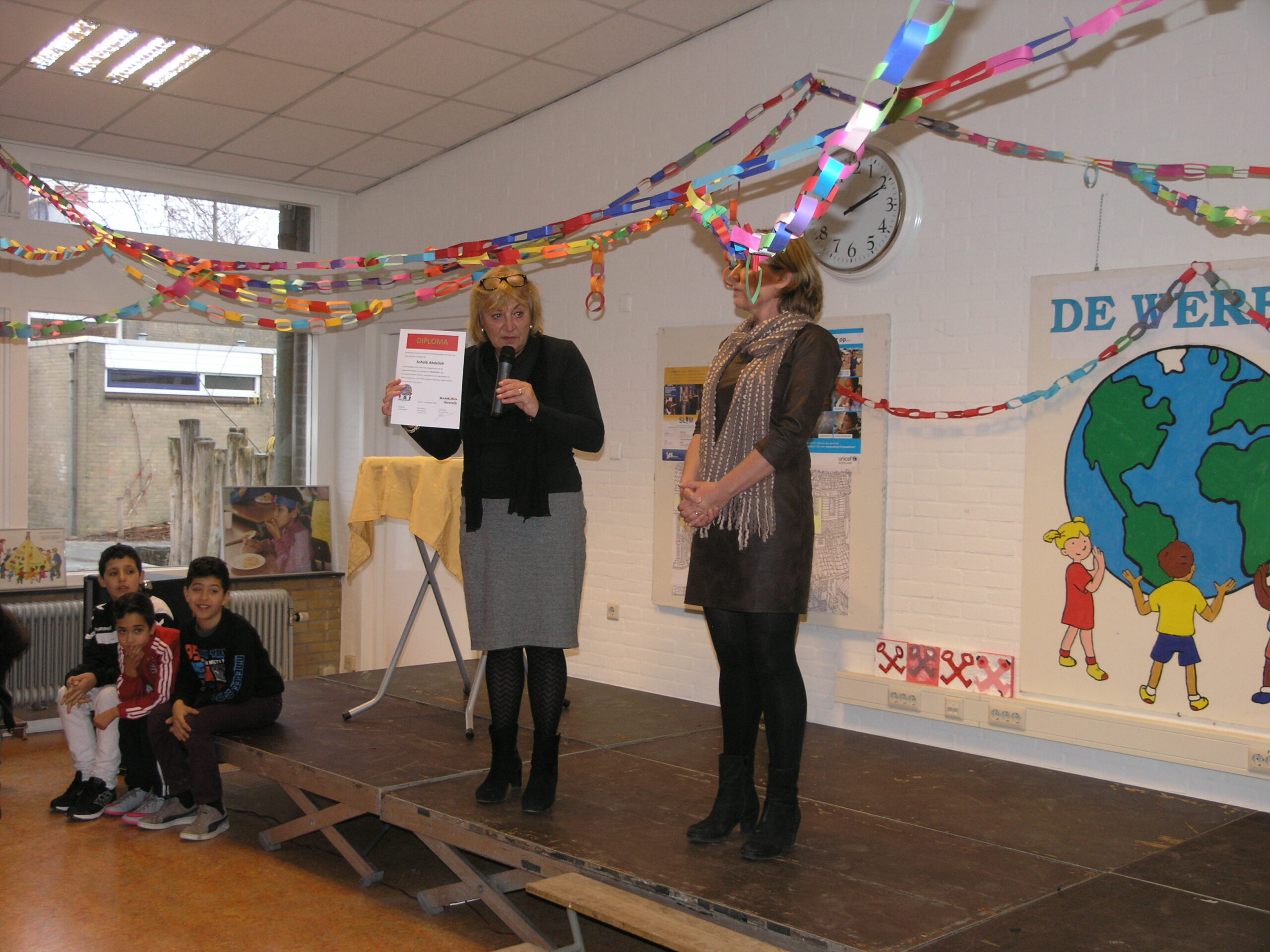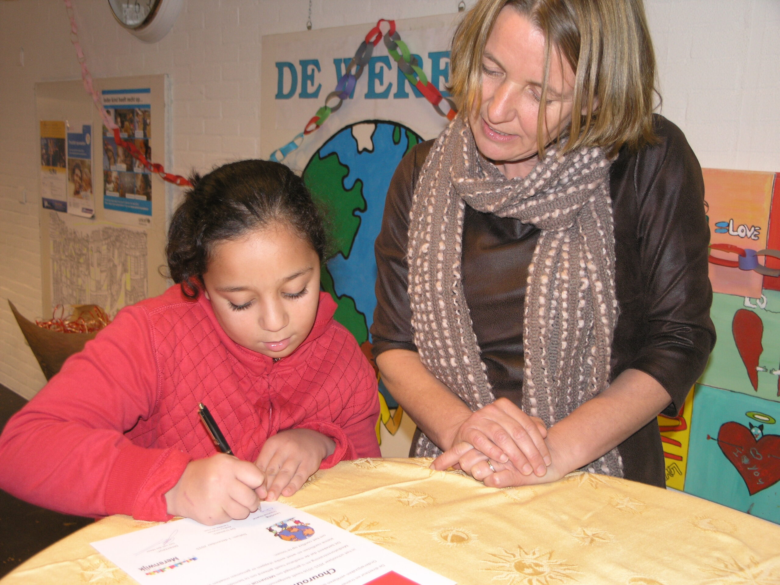 Ze zijn 9 of 10 jaar, zitten in groep 6 of 7, en ze bemiddelen bij twisten. Voor een gemiddelde volwassene is dat een hele opgave, want hoe pak je dat aan als je niet weet ‘wie begon’? Op de Bredeschool Merenwijk ligt dat anders. Daar hebben ze een heleboel mediators, bemiddelaars. Dinsdag ontvingen er weer negentien hun diploma. Peer mediators; ze bemiddelen tussen leerlingen onderling. Of zoals Hassan zei “de mediator kan de problemen oplossen en kan veel dingen dóen”.