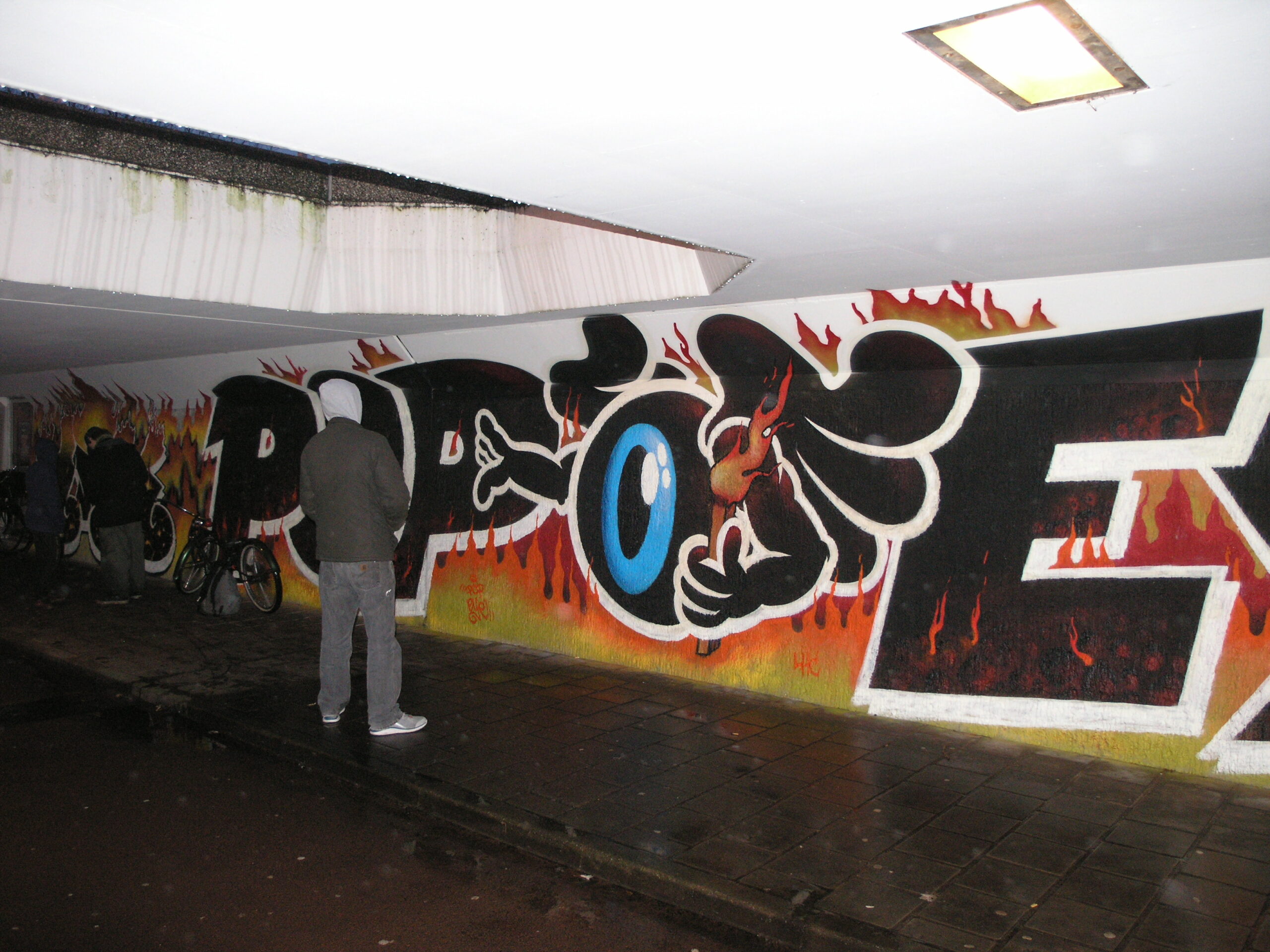 Leiden heeft twee nieuwe plaatsen waar legaal graffiti gespoten mag worden. In de Pesthuistunnel en de Damtunnel kunnen straatkunstenaars nu ongestoord hun gang gaan. Leidse graffiti-veteraan ‘Popeye’ (dat is zijn artiestennaam, verder wil hij anoniem blijven) heeft het eerste verfwerk gedaan in de Pesthuistunnel. “Je moet het als een levende muurschildering zien. Nu staat er dit, maar over een maandje staat er wat anders”, aldus Popeye.