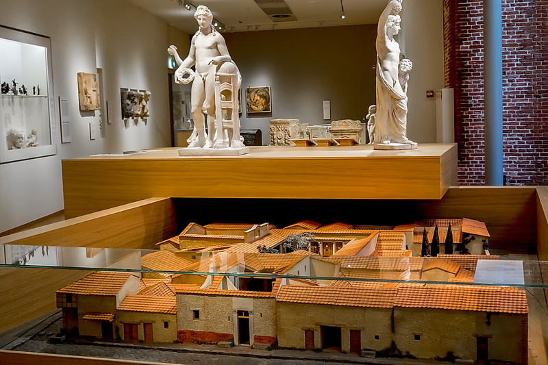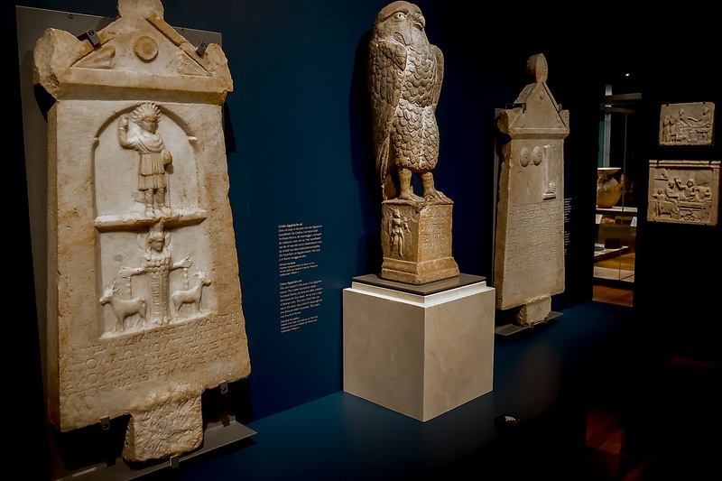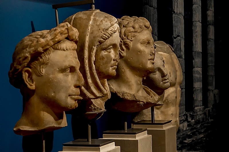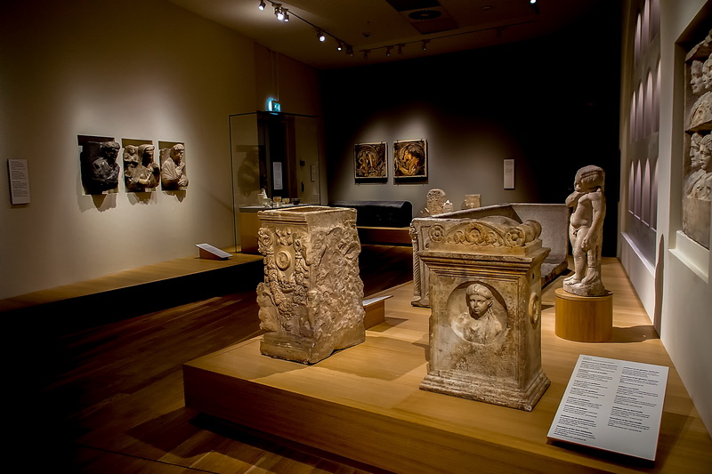 Tijdens perspresentaties lopen er altijd curatoren mee. Hun uitleg voegt vaak veel toe. Voor €2 huurt de bezoeker nu een ‘virtuele curator’: een audiotour-apparaatje, gelukkig zonder koptelefoon. En er is een versie voor kinderen en eentje voor volwassenen, in eigen tempo te beluisteren. Net dat beetje extra als je ronddwaalt. Askisten waarin vroeger nog het as van de overledene is gevonden. Stil staan bij het mopsneusje van Socrates, of de meer aristocratische van Euripides. De grafstenen van rijken, maar ook enkele van slaven, christenen en gladiatoren. Een albasten vaas, die geen echte vaas is, die in bruikleen is van de Oranjes. Marmeren beelden met sporen van kleuren – goed zoeken! – die in hun maaktijd dus veel kleurrijker waren dan wij nu zien. Voor de liefhebber – en de enige replica – een bronzen lever als hulpje voor de ‘lever lezer’, die kon aangeven welke god vertoornd was en je met een kwaal trof.