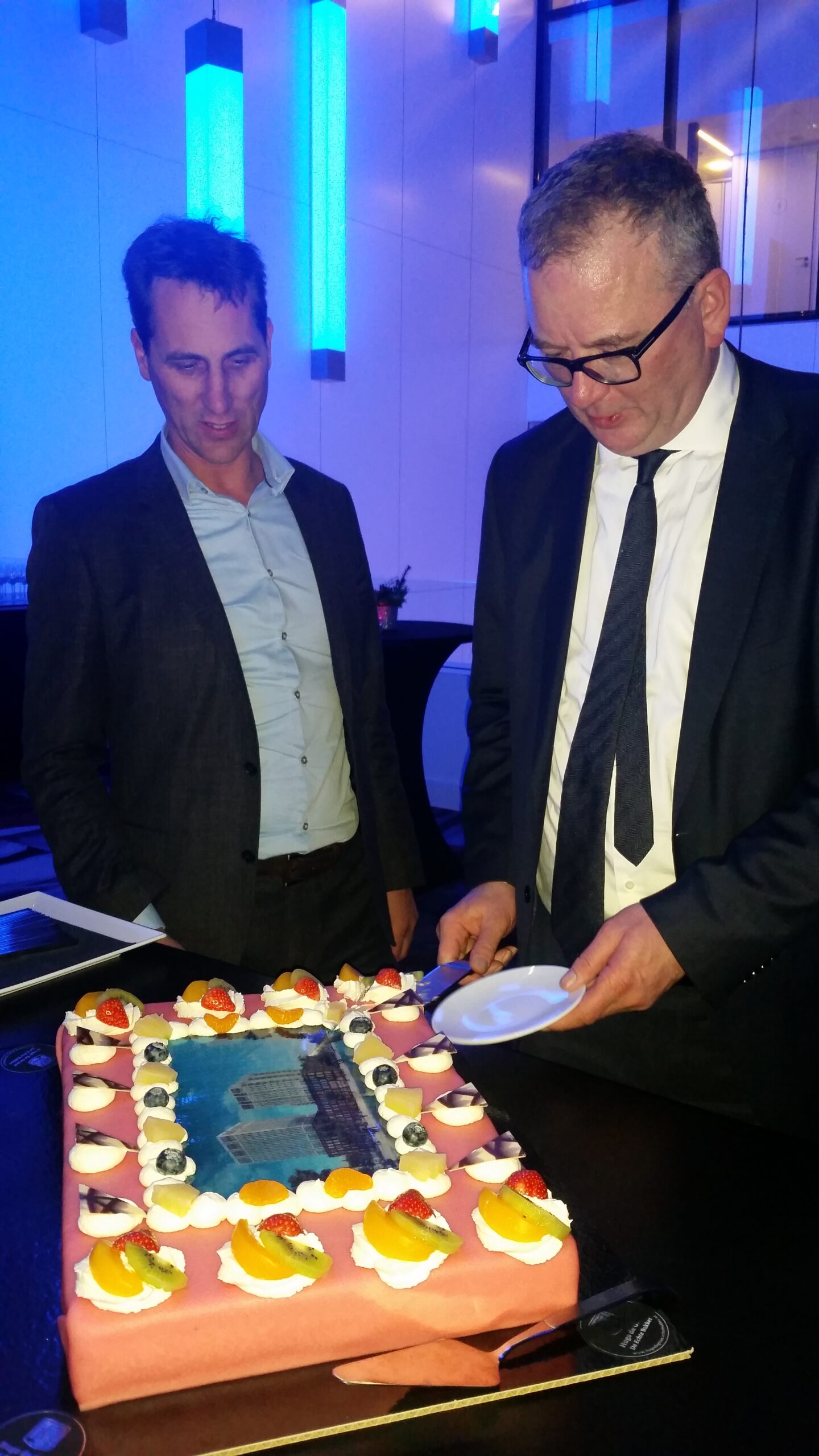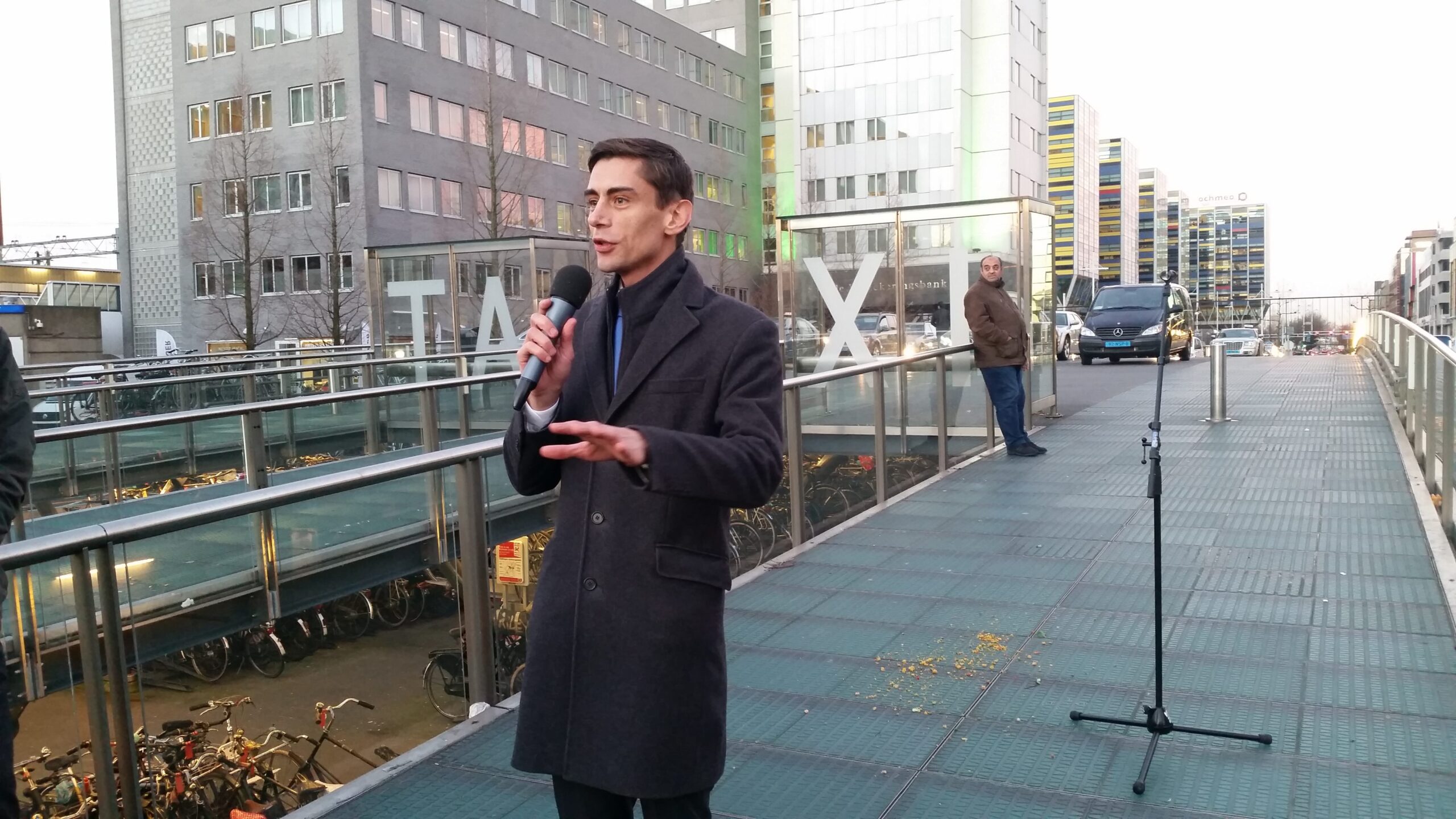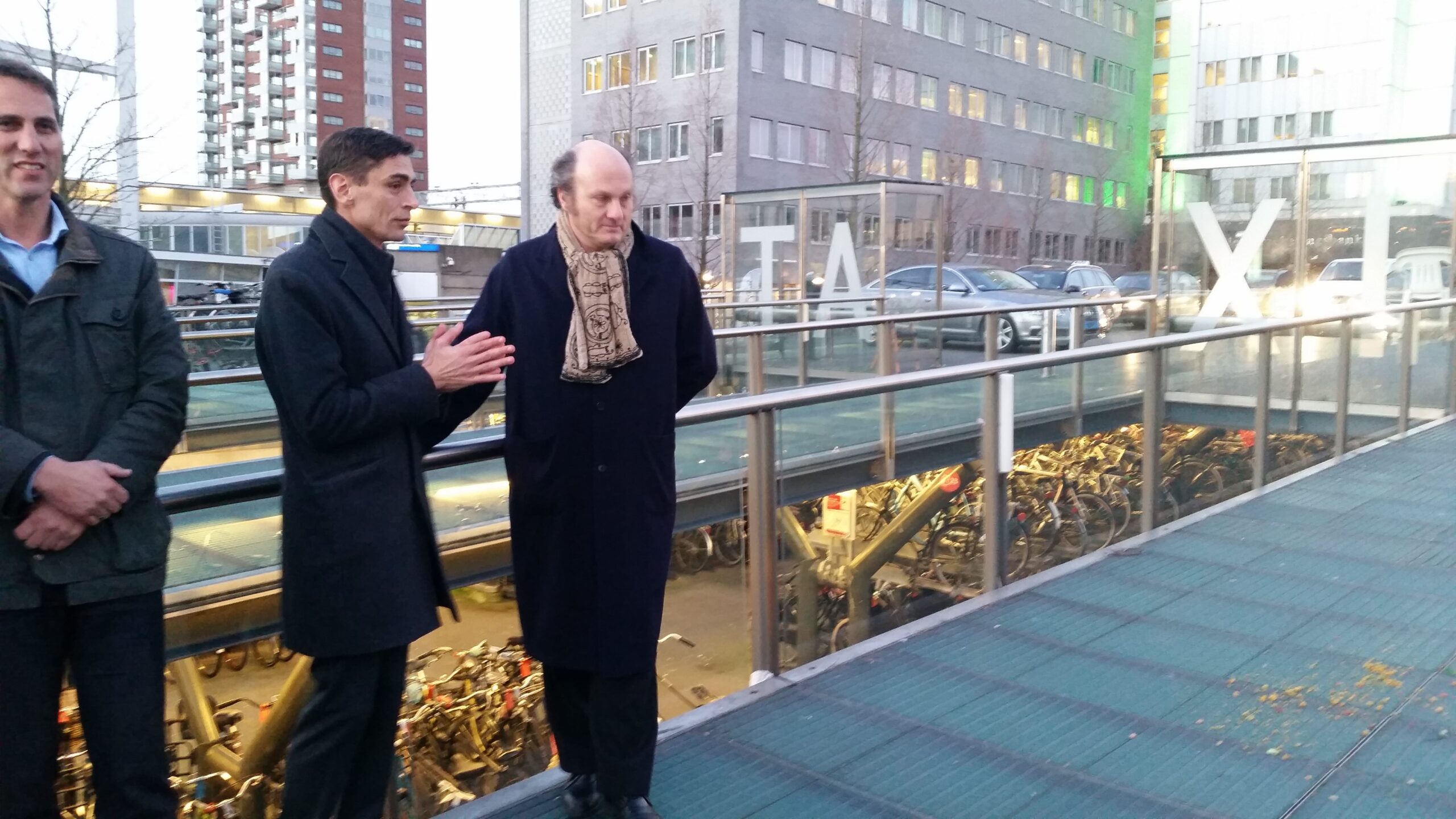Nadat het bouwbord was onthuld sprak Chris de Waard met wethouder Laudy (bouwen) en met architect Willem Jan Neutelings die het gebouw heeft ontworpen.