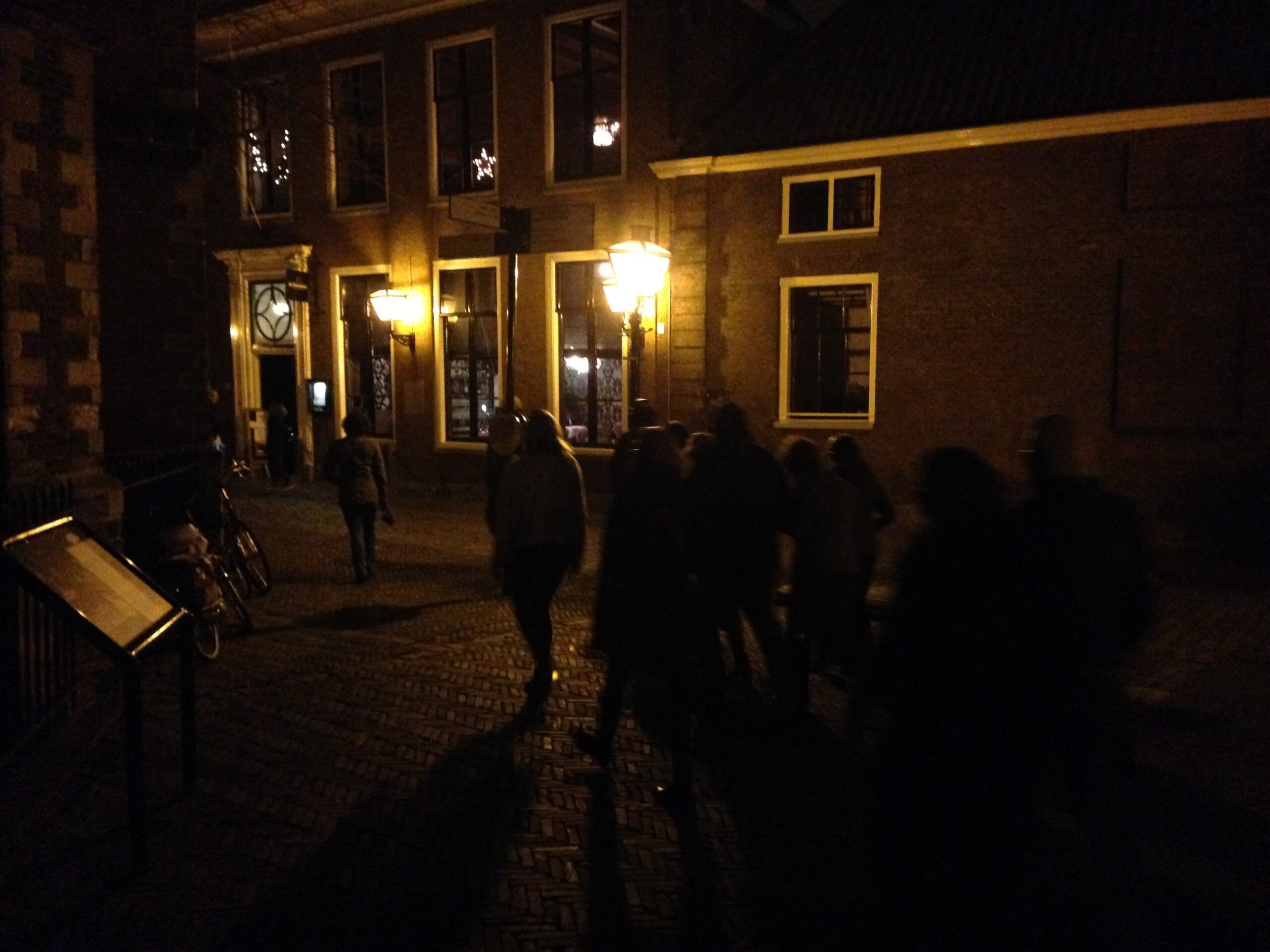 De eerste van tien voorstellingen voerde maandag zo’n dertig mensen mee van de Raamsteeg via de Vliet en Rapenburg over het Gerecht naar het Pieterskerkplein en het Van der Werfpark terug naar de Raamsteeg. Het verhaal is een luchtige, soms licht komische, maar doordachte kijk op de behoefte aan geborgenheid. Nestelaar stelt zich de vraag: wat maakt een huis nou een thuis?